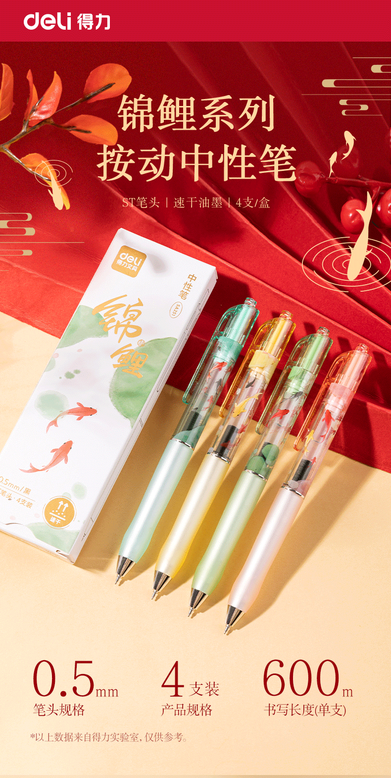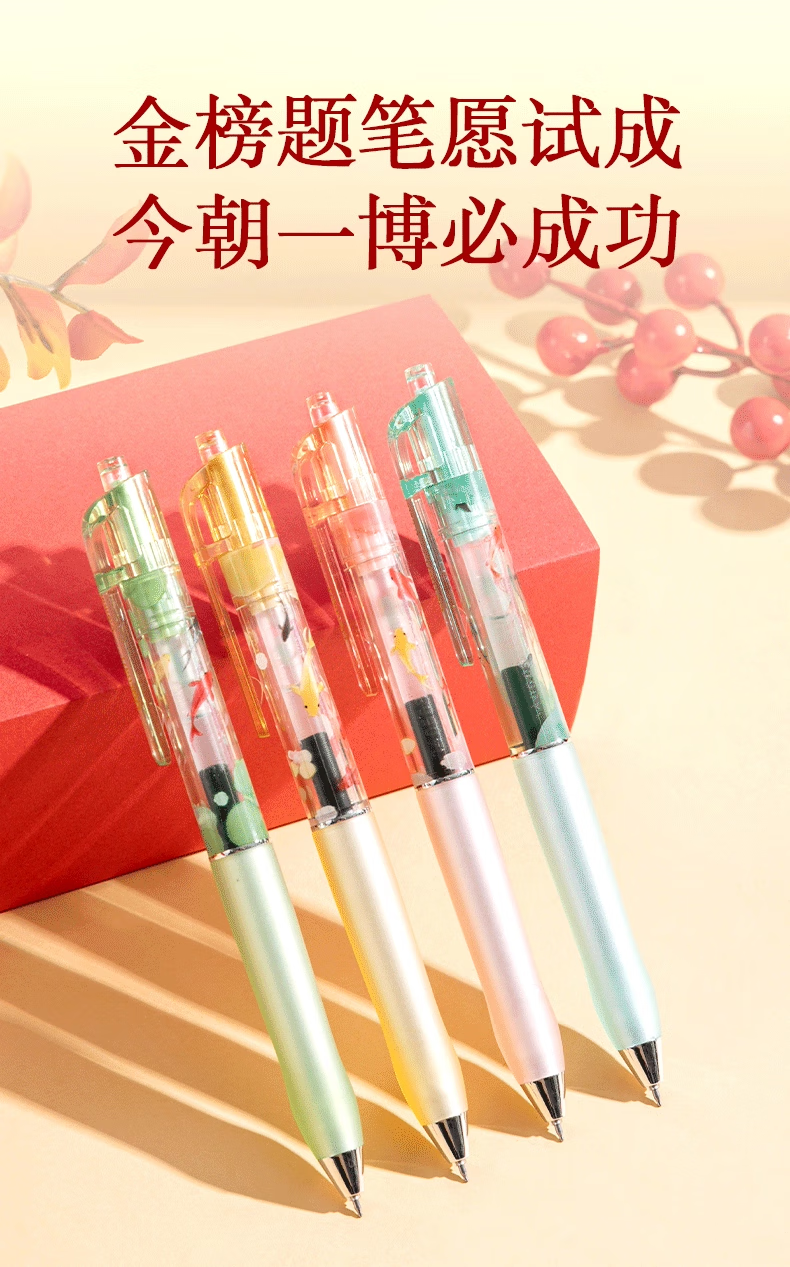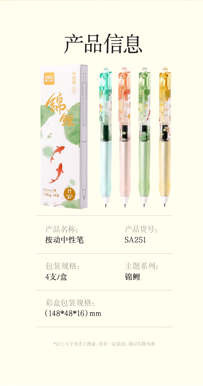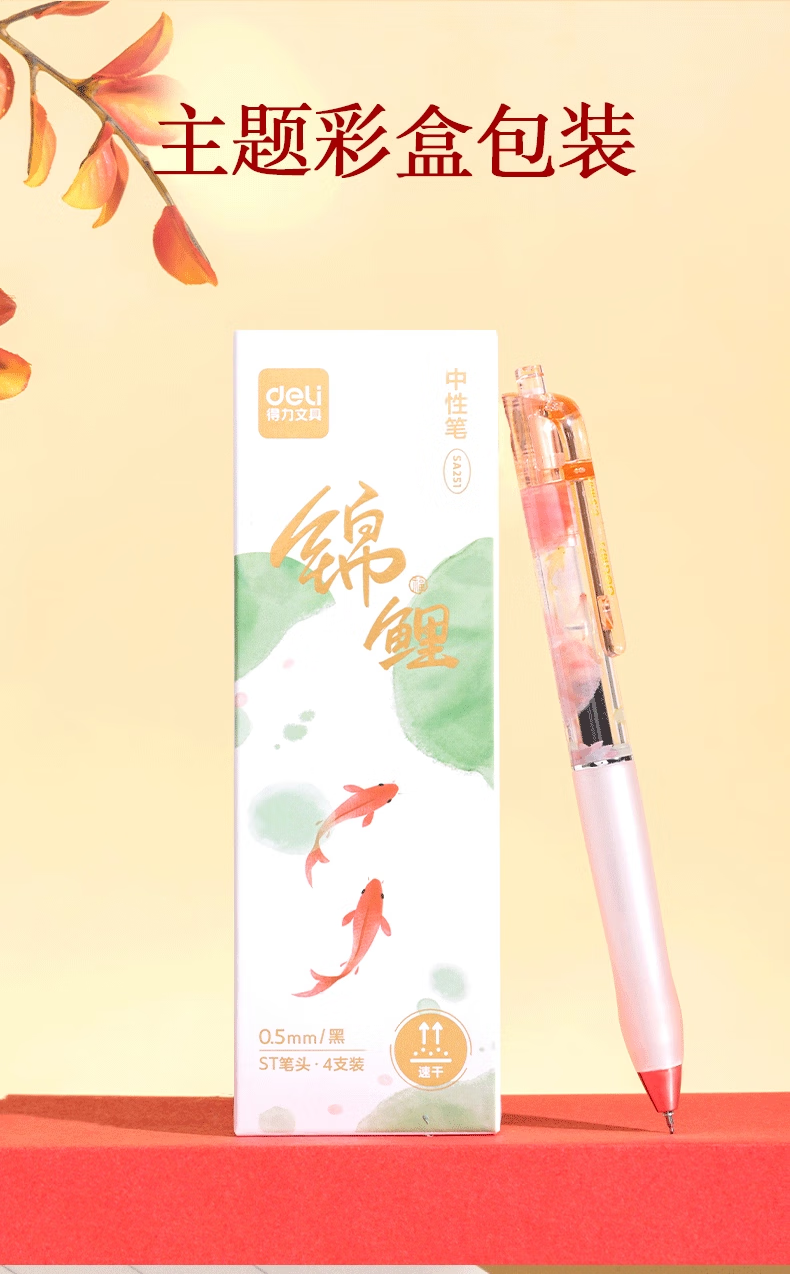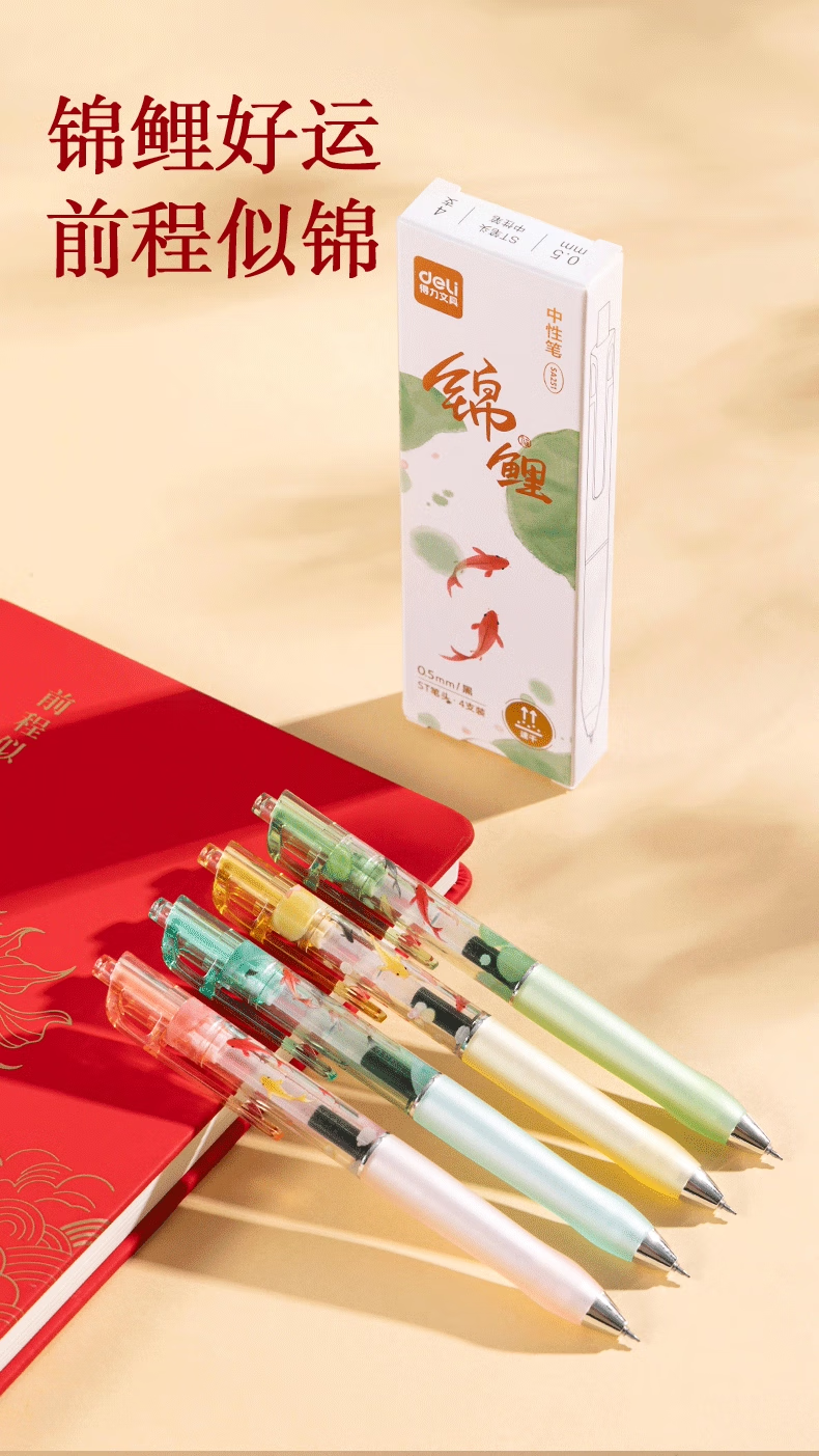 得力好运锦鲤中性笔初中生专用中性笔高颜值ins风黑笔2025年超火笔学生考试专用笔刷题笔0.5ST速干 【卡皮巴拉】4支装