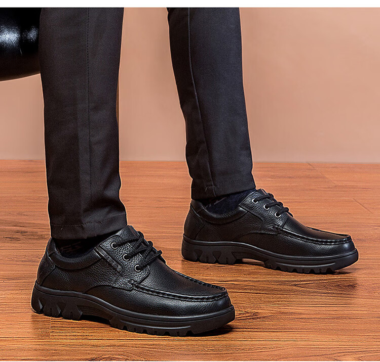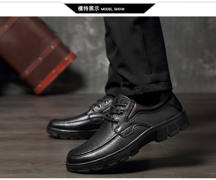 骆驼(CAMEL)牛皮软底舒适通勤休闲轻商务运动皮鞋男士 G15A220076 黑色 42