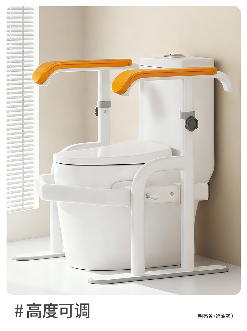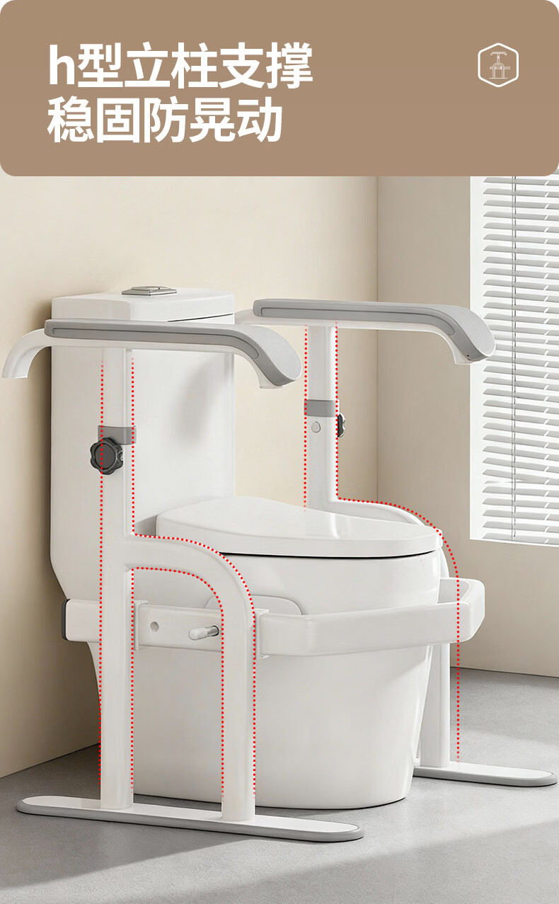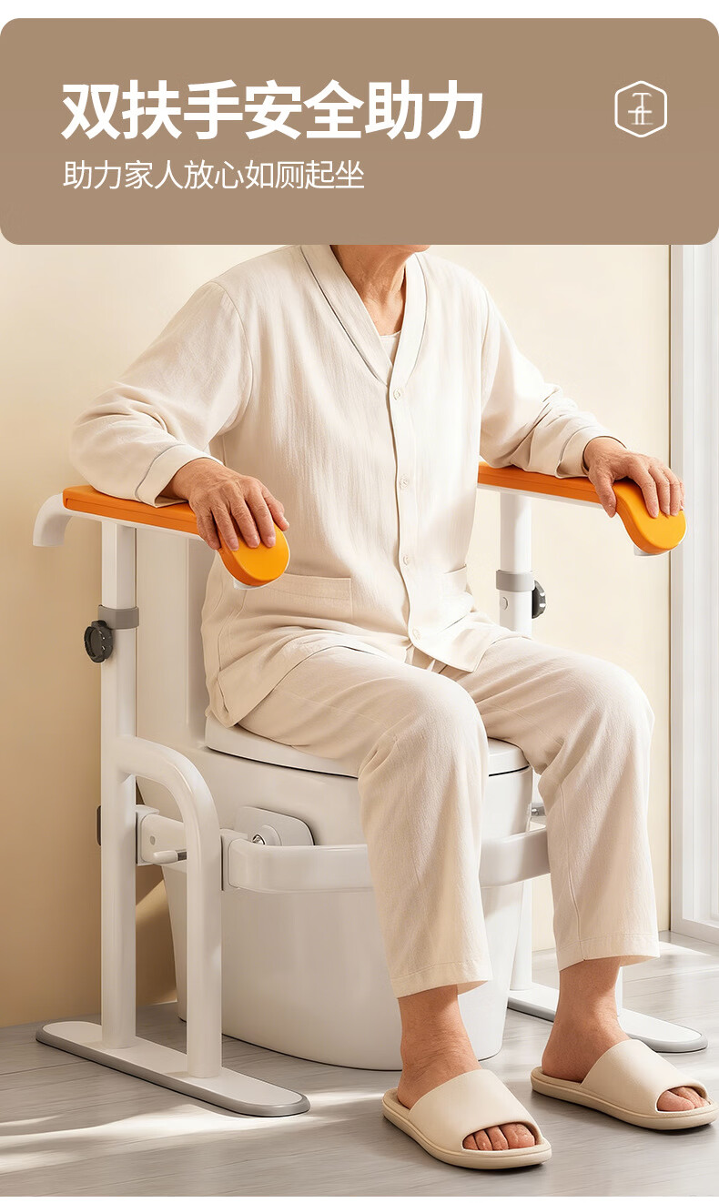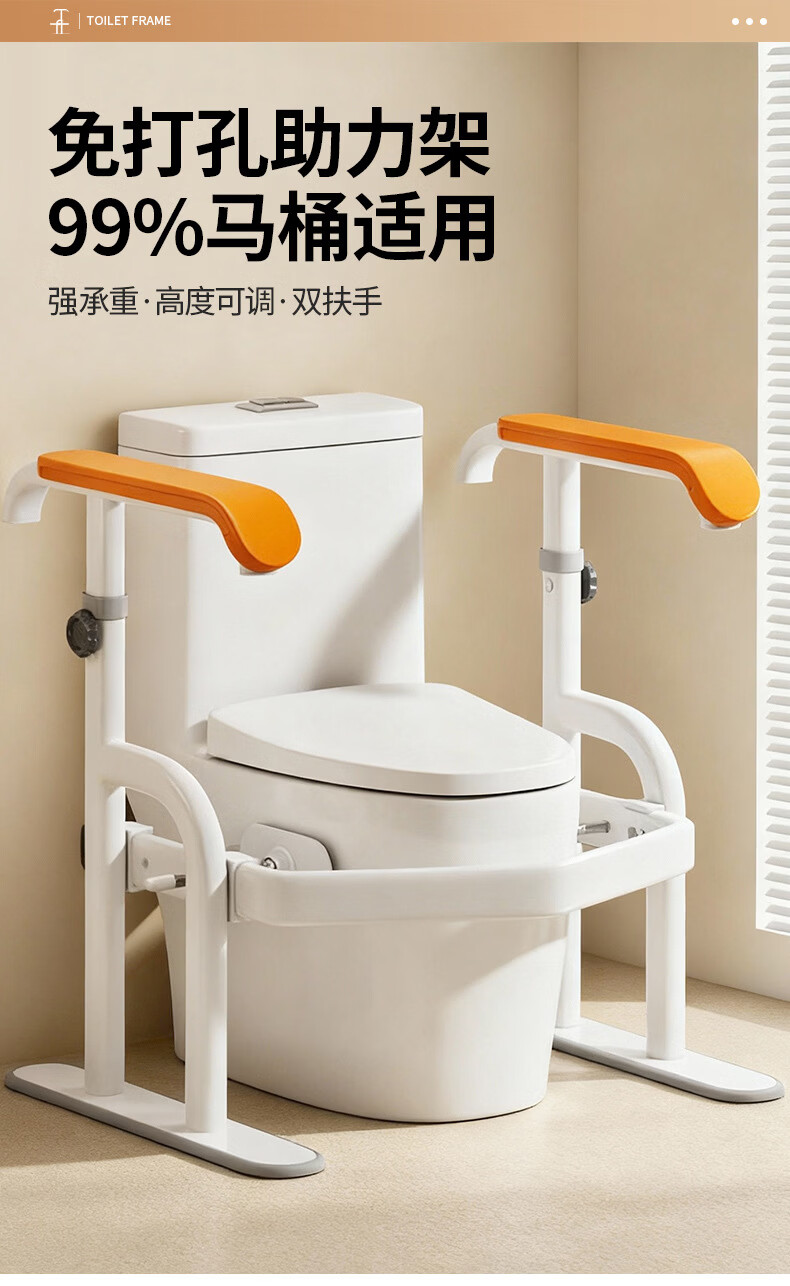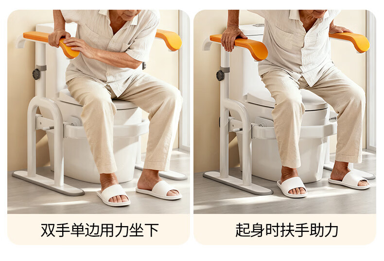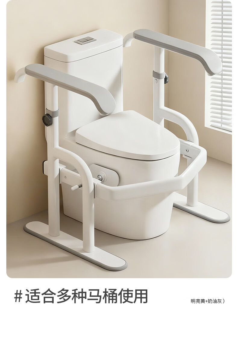 家文化(JIAWENHUA)马桶扶手架卫生间扶手老人防滑助力免打孔安全栏杆浴室厕所坐便器 双腿起身助理架奶油灰--免打孔