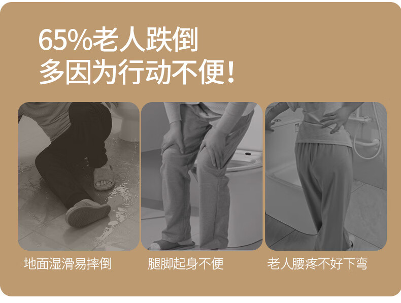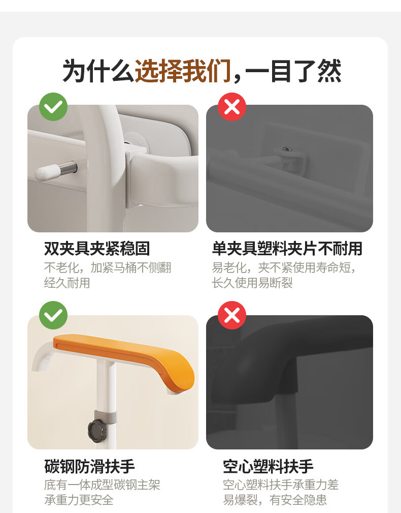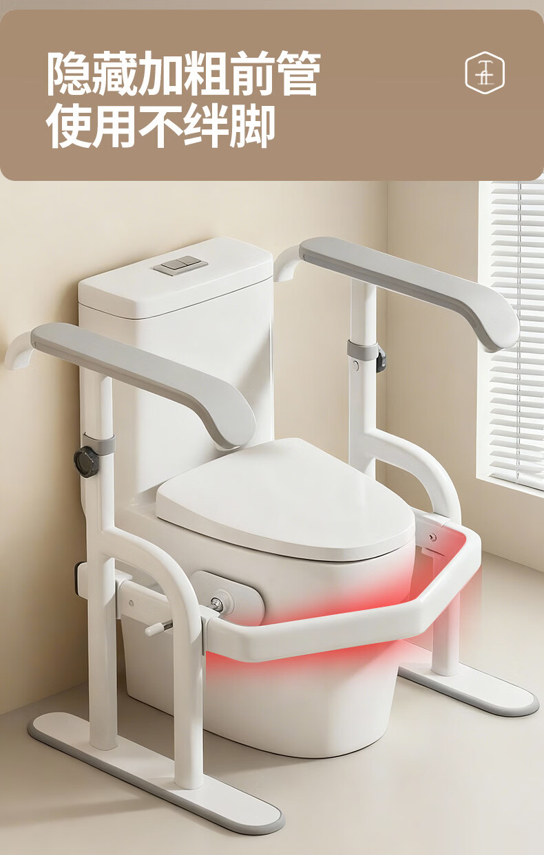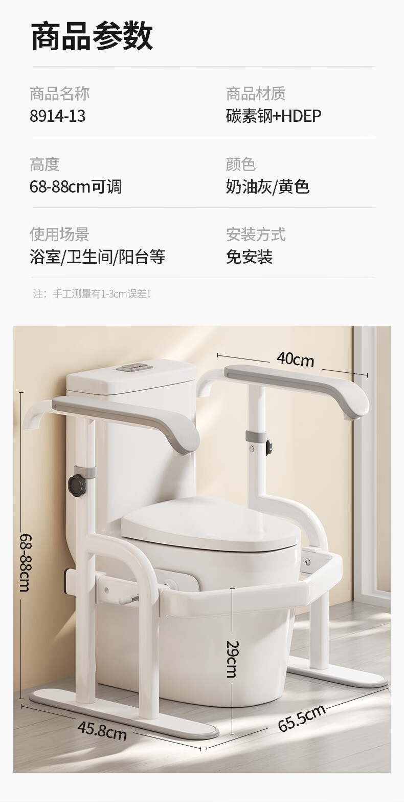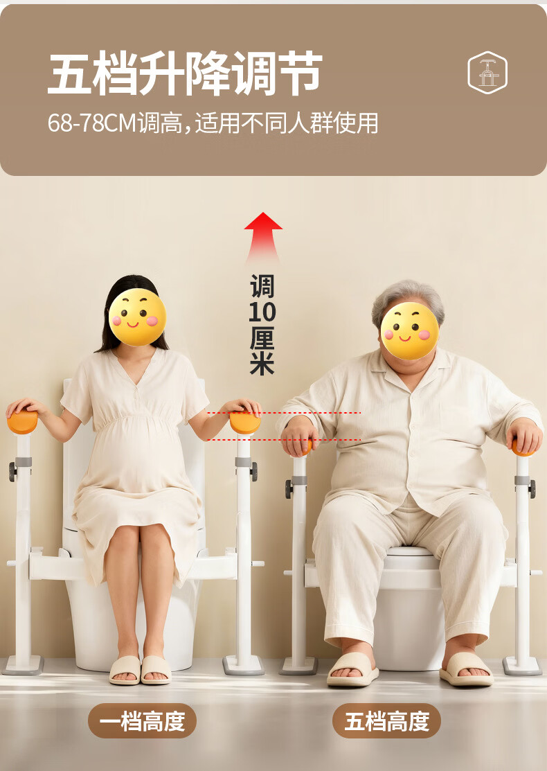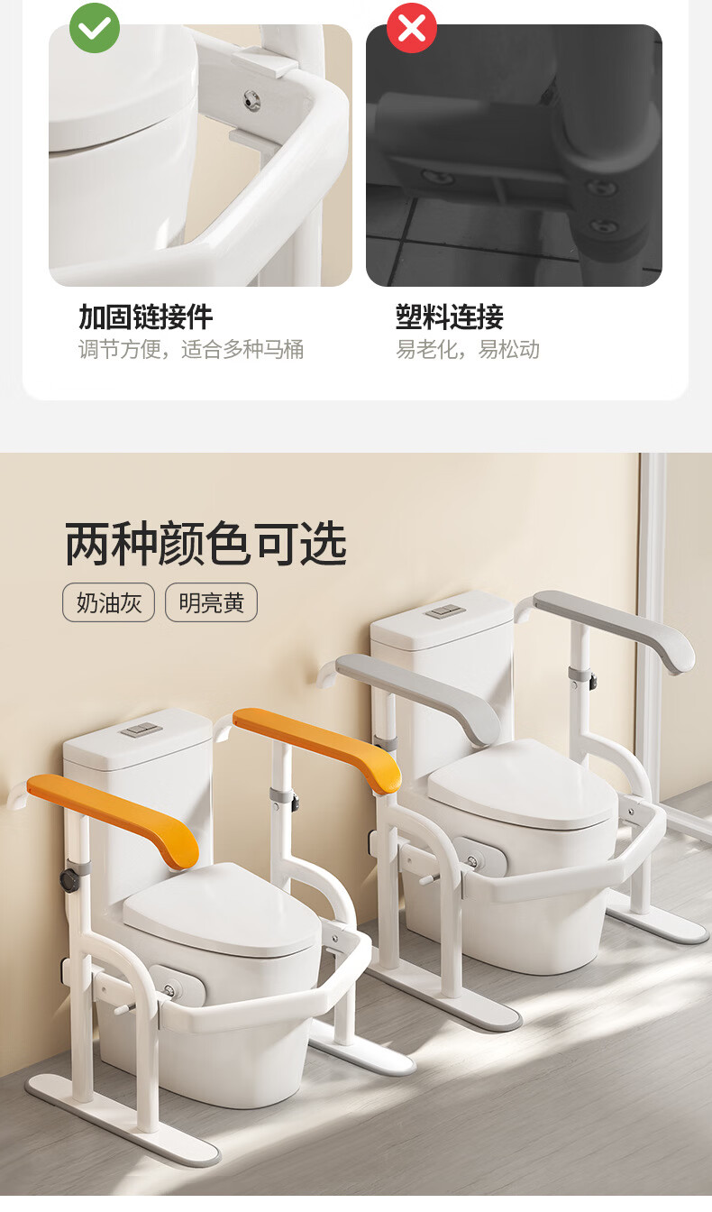 家文化(JIAWENHUA)马桶扶手架卫生间扶手老人防滑助力免打孔安全栏杆浴室厕所坐便器 双腿起身助理架奶油灰--免打孔