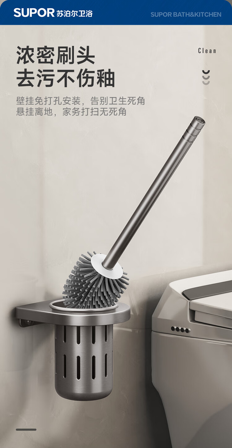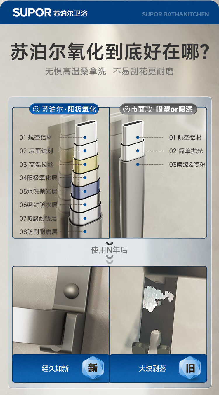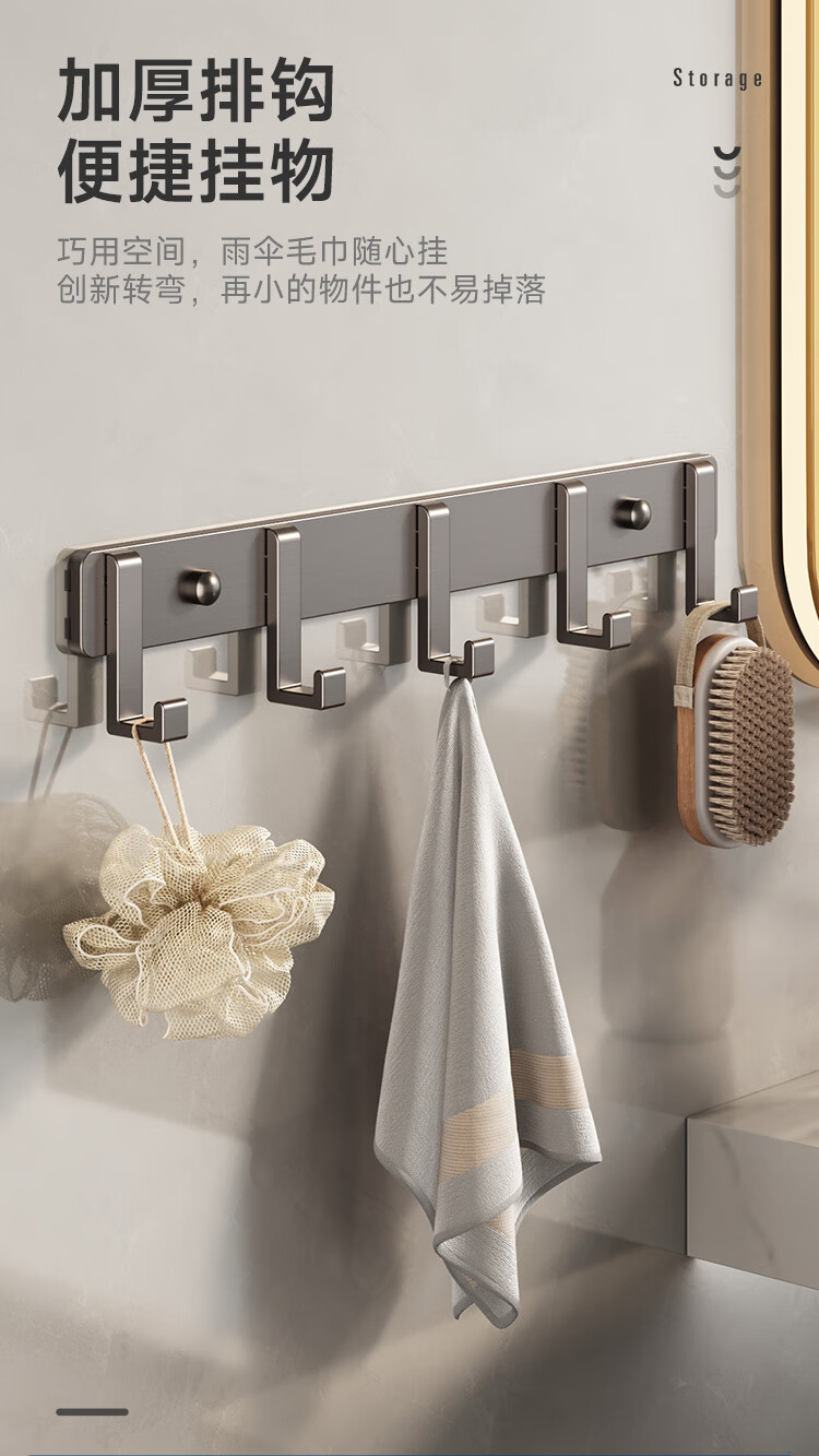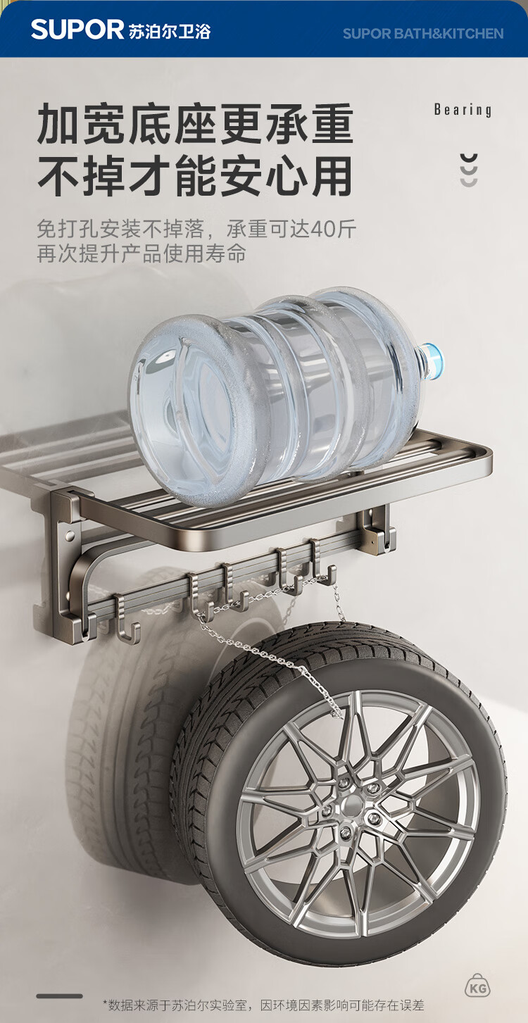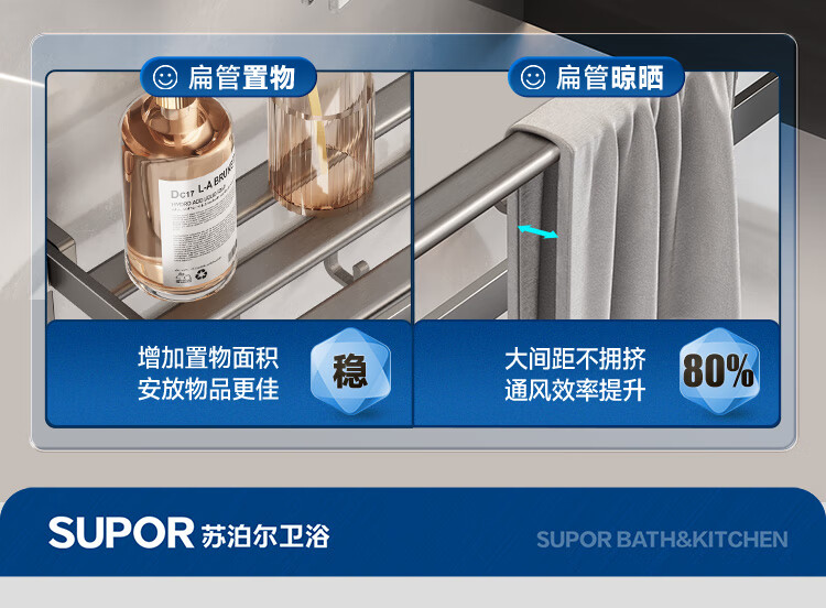 苏泊尔枪灰太空铝毛巾架浴室壁挂式免打孔卫生间置物架厕所洗手间浴巾架 枪灰双折叠三件套