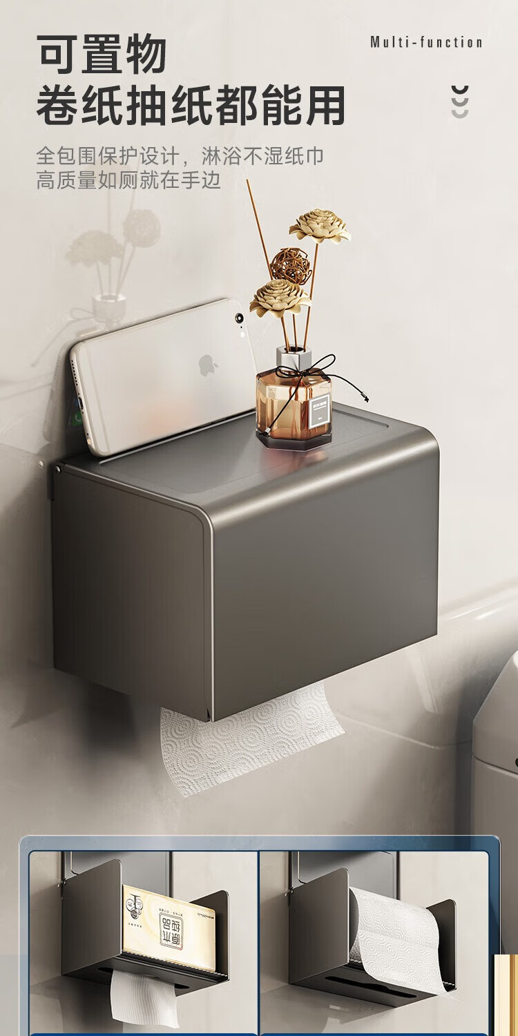 摩恩(MOEN)卫生间不锈钢浴巾架浴室毛巾架置物架卫浴挂件套装1901A 带盖纸巾架((免钉))