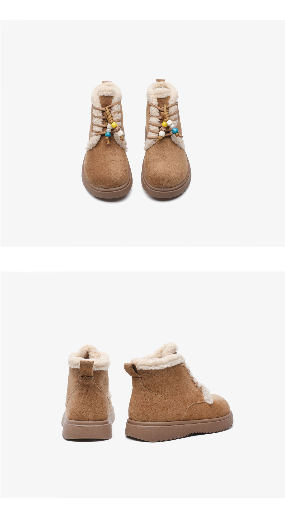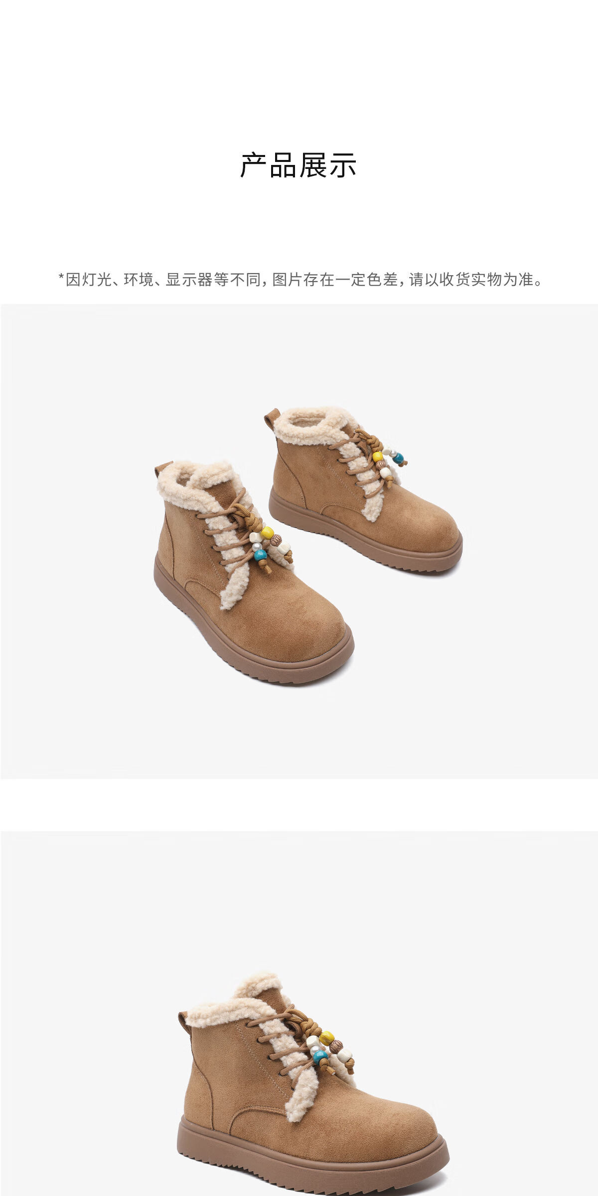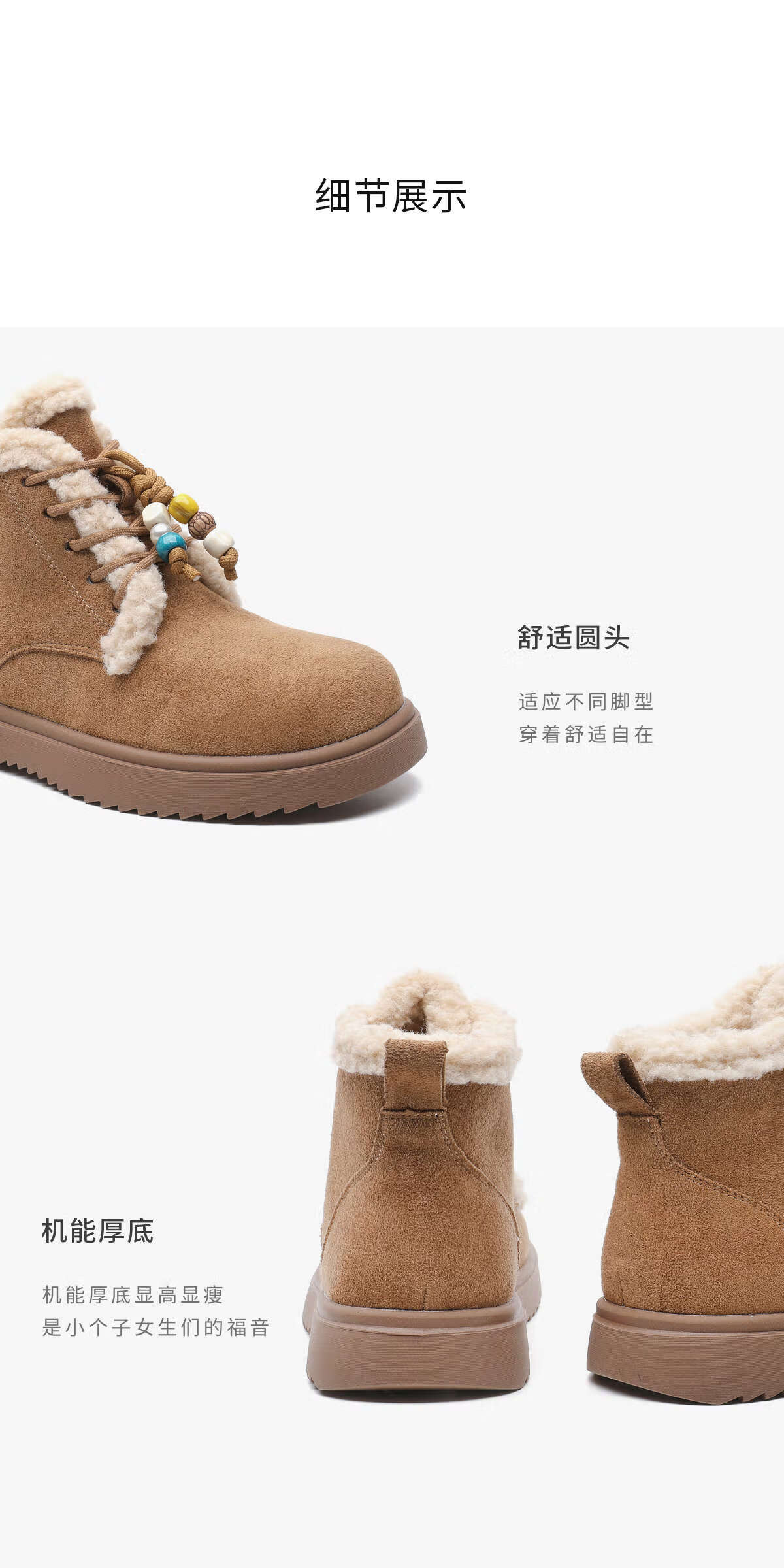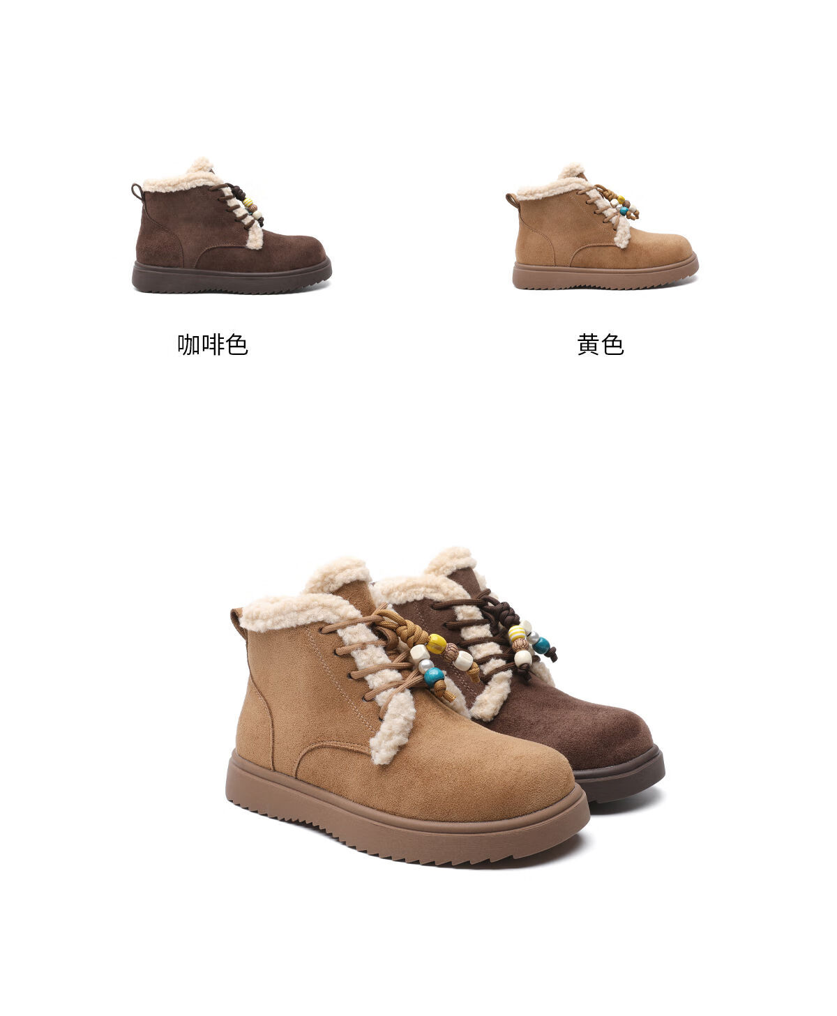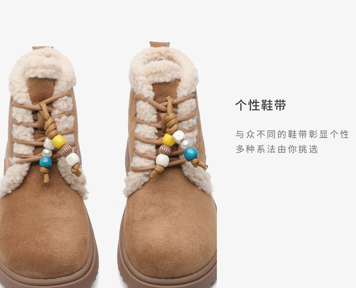 月芽儿雪地靴女2025新款冬季保暖系带毛毛短靴加绒加厚织物鞋子 绒里黄色04T 34
