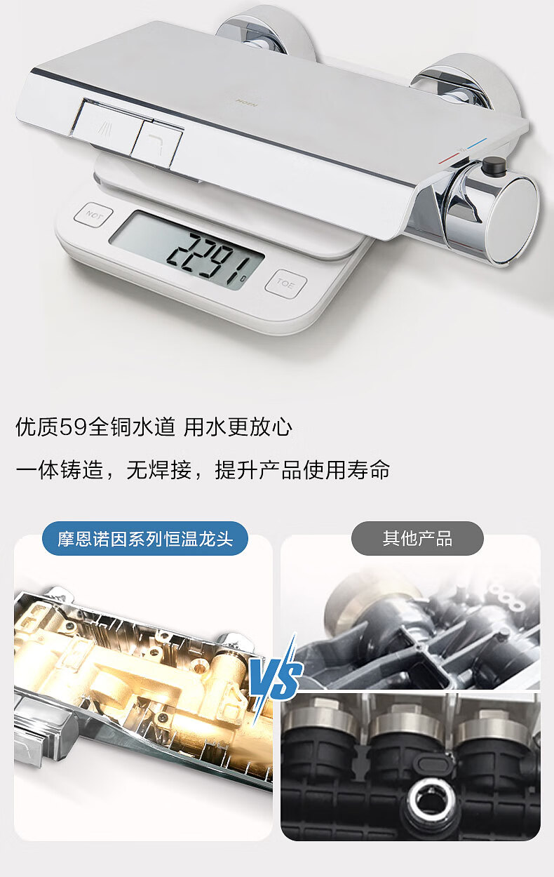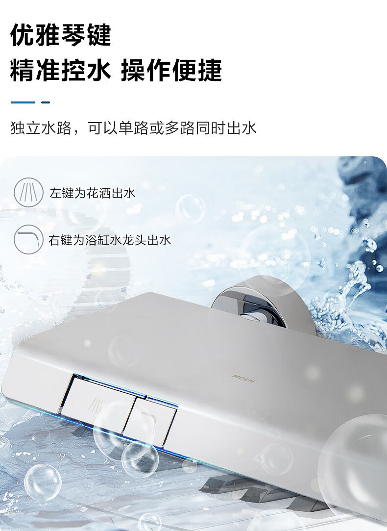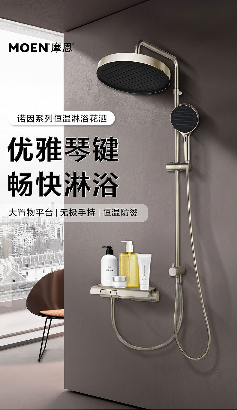 摩恩(MOEN)诺因系列钢琴按键智能恒温花洒套装淋浴无极花洒大平台置物51432 诺因 钢琴键两功能恒温龙头软连接