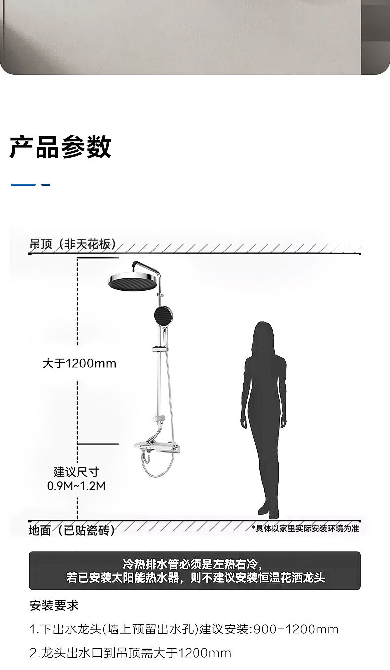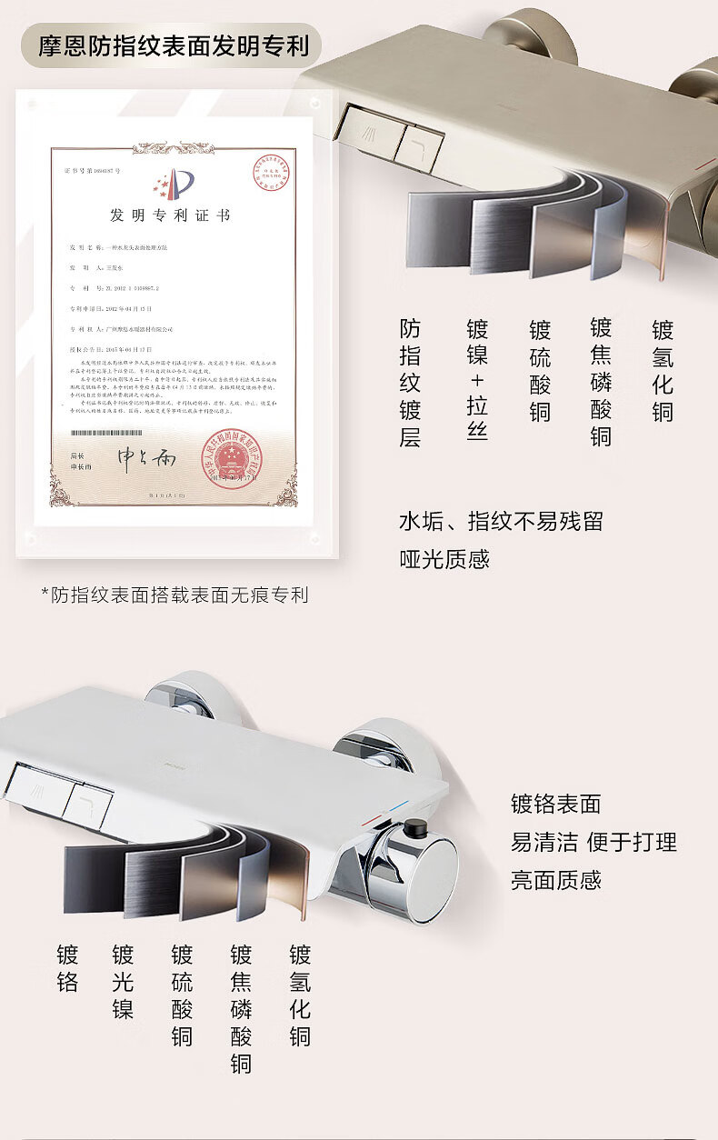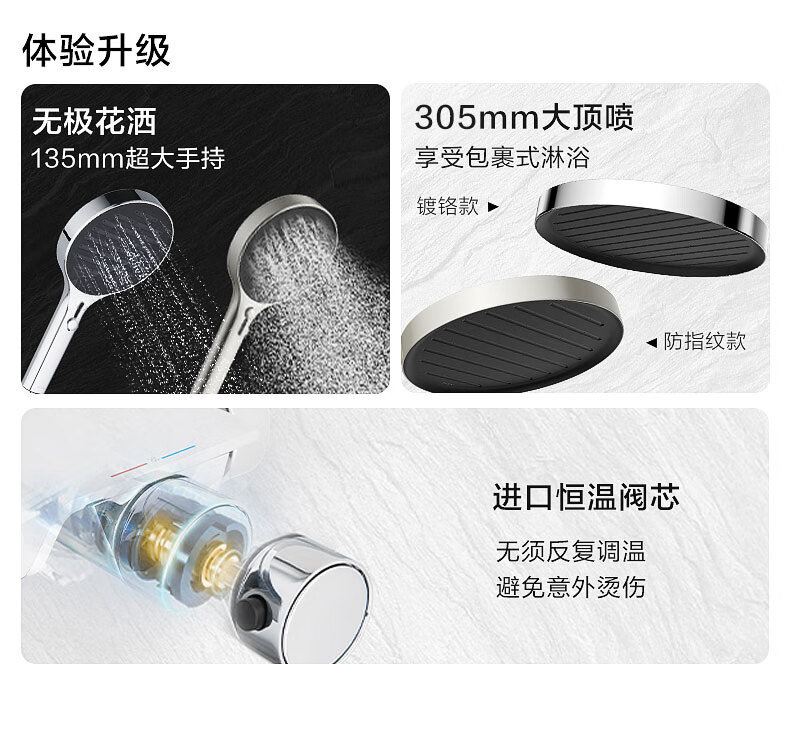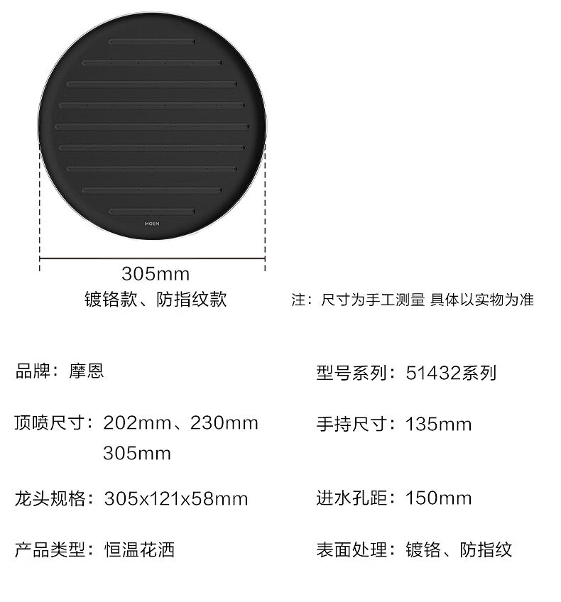 摩恩(MOEN)诺因系列钢琴按键智能恒温花洒套装淋浴无极花洒大平台置物51432 诺因 钢琴键两功能恒温龙头软连接