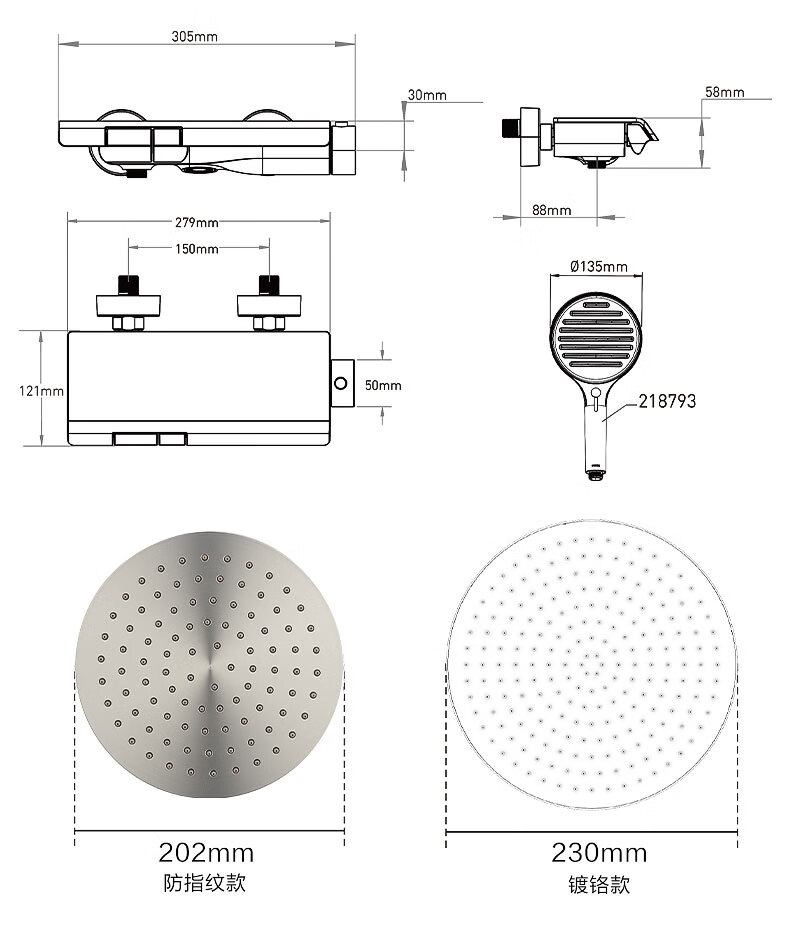 汉斯格雅(Hansgrohe)汉斯格雅飞雨入墙式恒温花洒套装暗装花洒套装嵌入式顶喷
