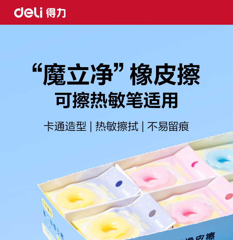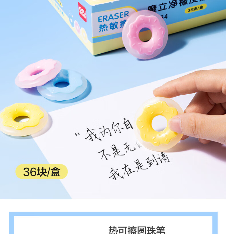 得力热可擦橡皮甜甜圈热敏橡皮摩易擦橡皮擦热可魔磨力可擦中性笔专用橡胶擦可擦橡皮 【甜甜圈】热敏橡皮【3块装】颜色随机 无规格