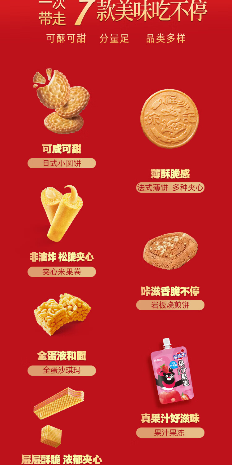 徐福记年货零食 饼干蛋糕休闲零食糕点礼包儿童零食春节礼品 福气礼包718g*4