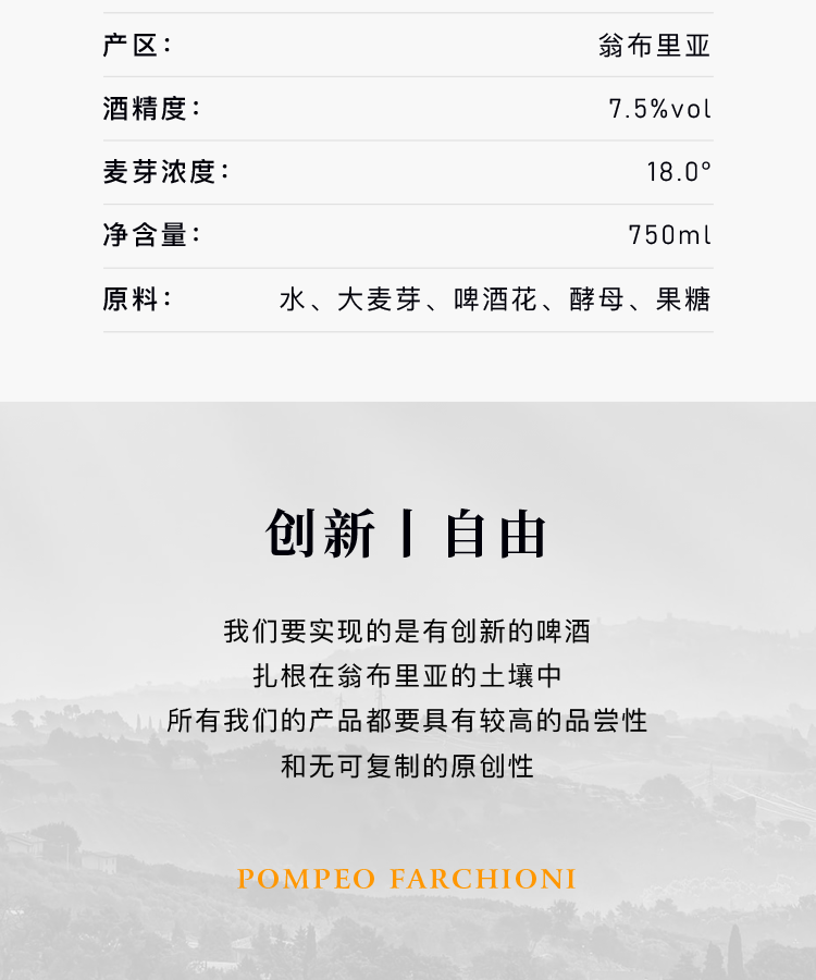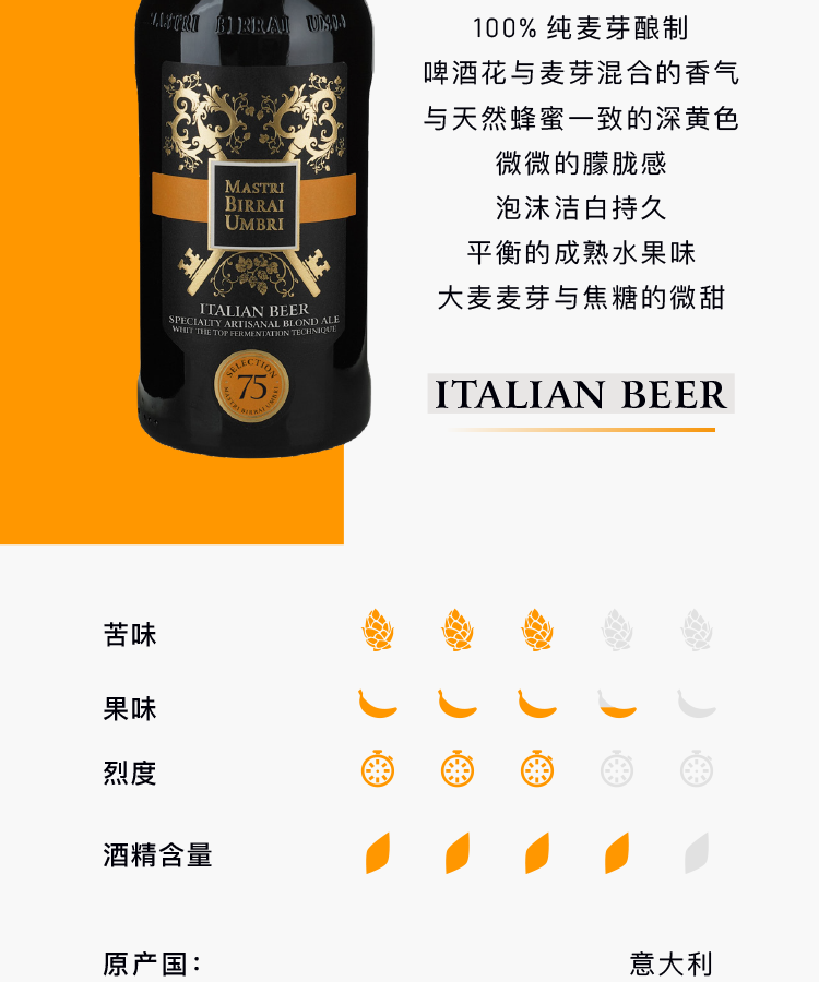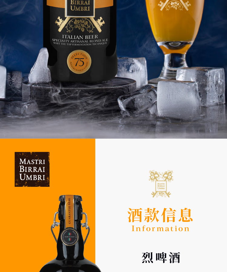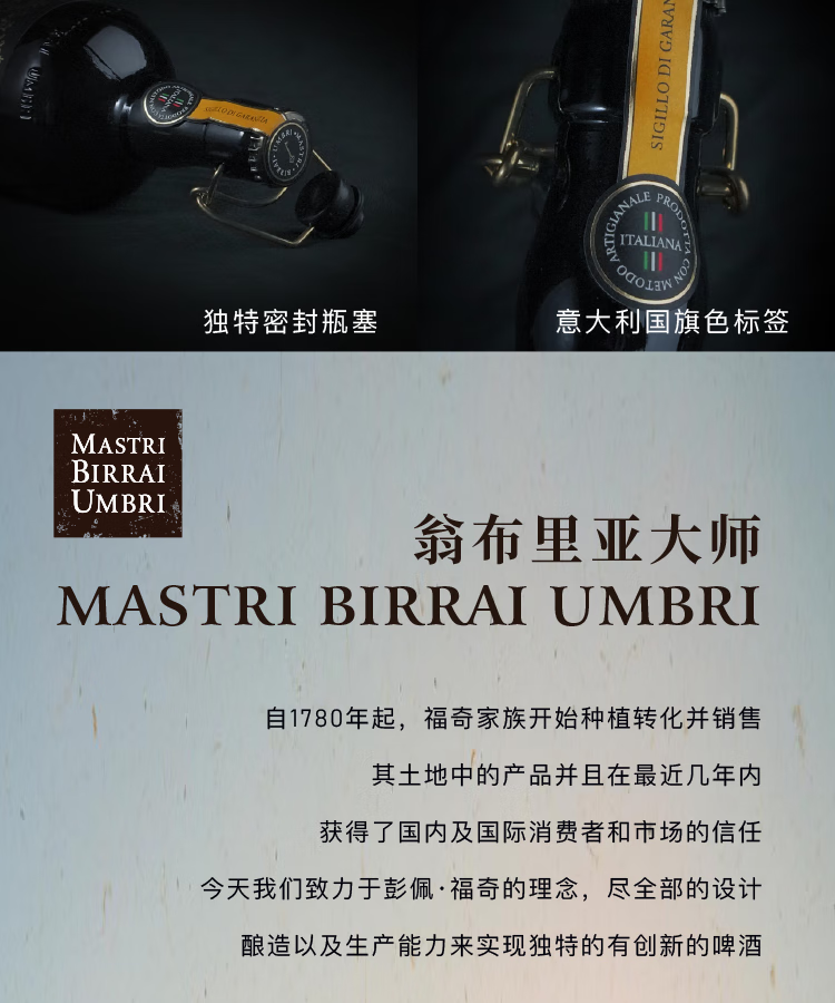 翁布里亚大师原浆烈啤 7.5度高酒精度 麦芽浓度18° 意大利高端手工精酿啤酒 麦芽浓度 18° 750mL 6瓶 整箱装