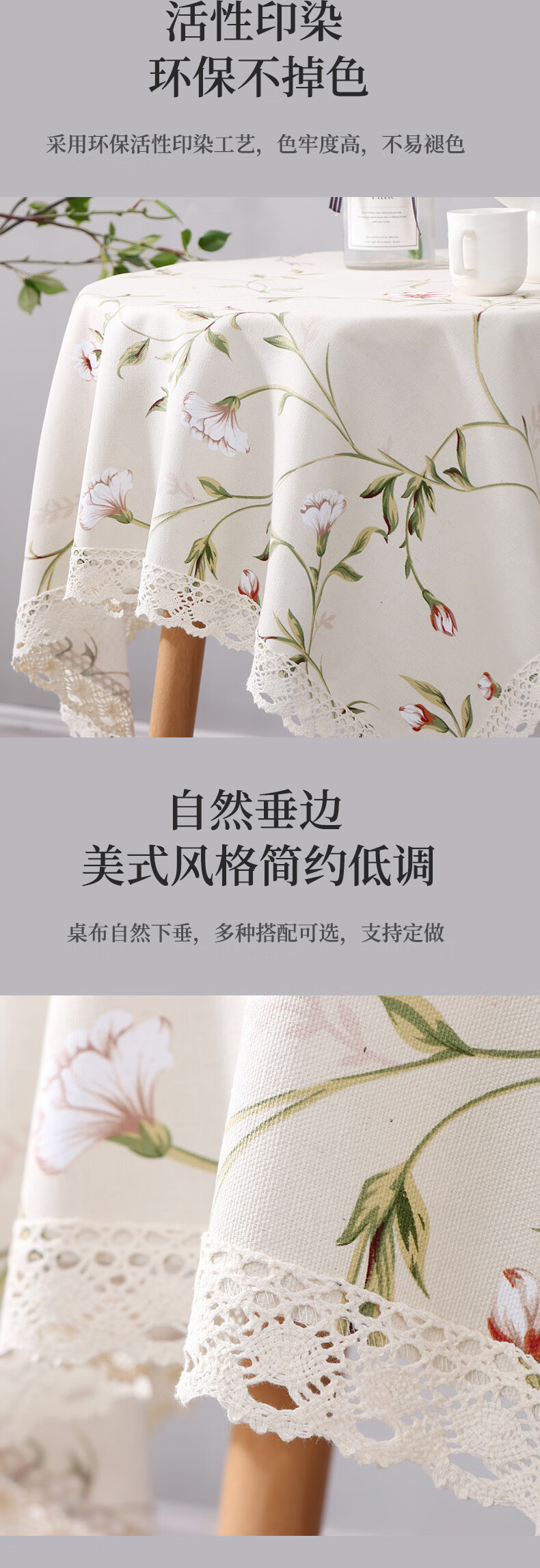 巧林儿圆桌布家用美式风小清新ins碎花餐桌防水茶几布咖啡桌布小圆桌布 春意悠然米色(TPU防水防油款) 110*110cm适用于60cm以内用