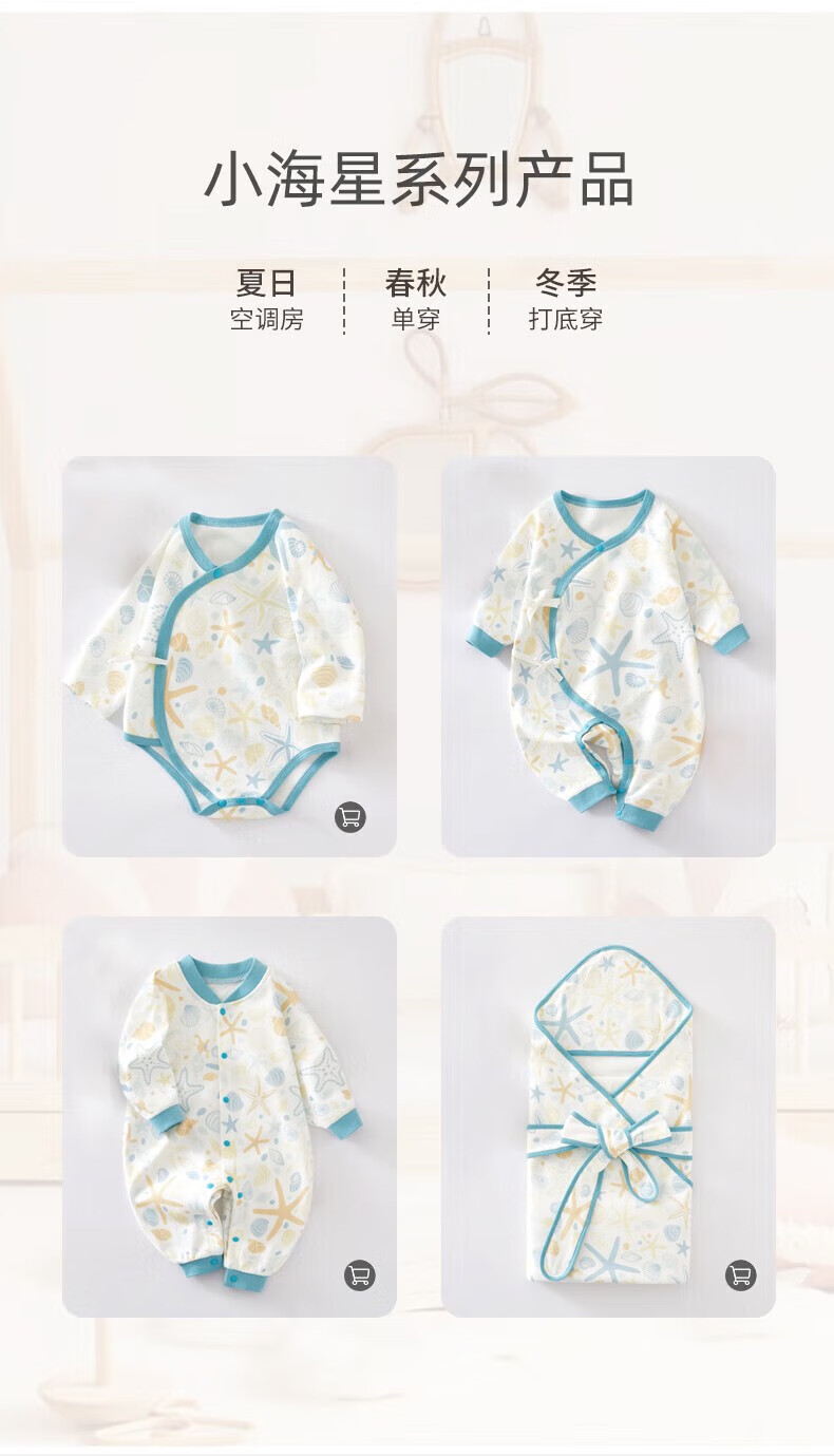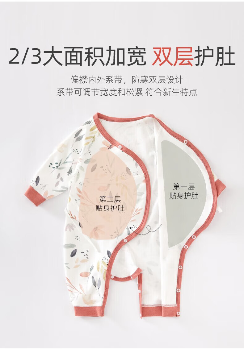 贝肽斯婴儿衣服春季纱布新生儿四季和尚服婴儿连体衣爬服精选 小柑橘-蝴蝶衣 52cm