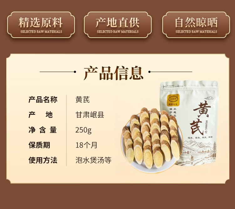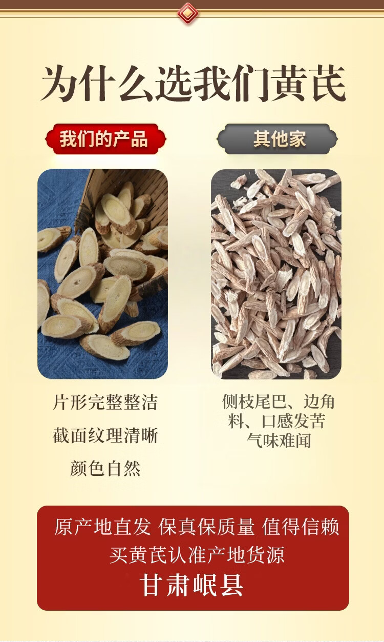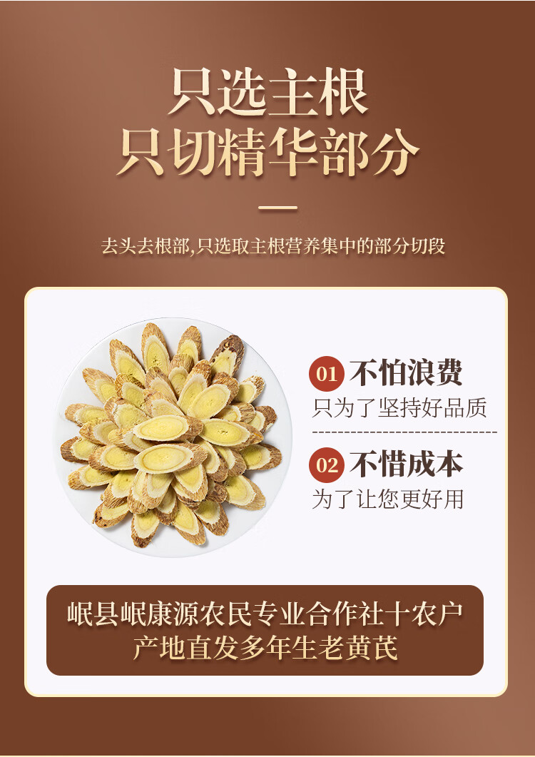 岷康源黄芪新货现切产地直销新货不熏硫豆味浓郁煲汤煮粥全家滋补食材 野外采挖现切 250g*1袋 真空包装2.0cm左右