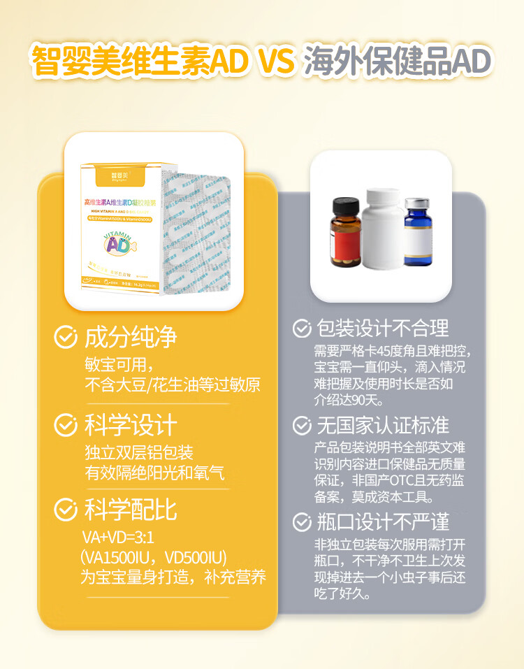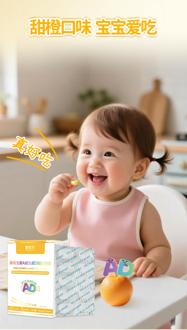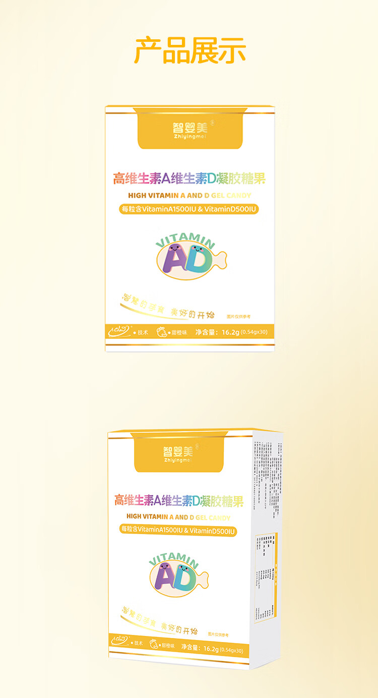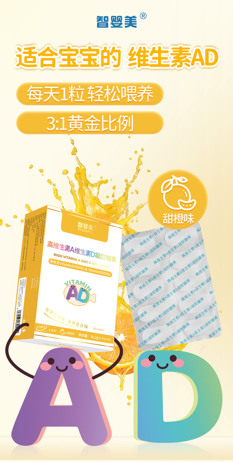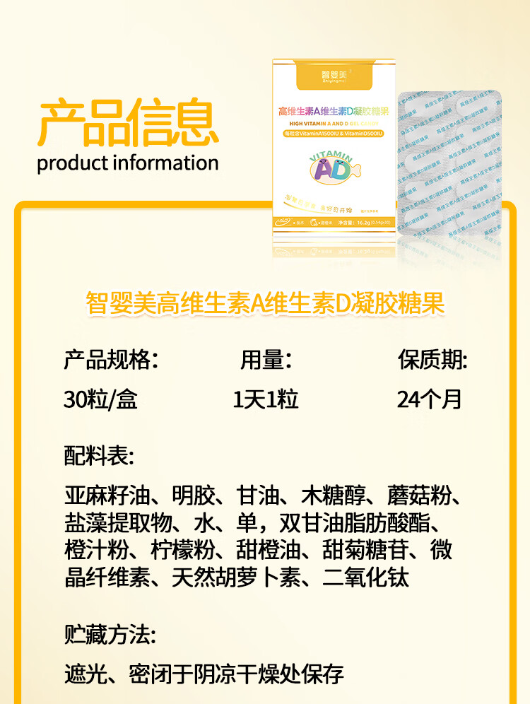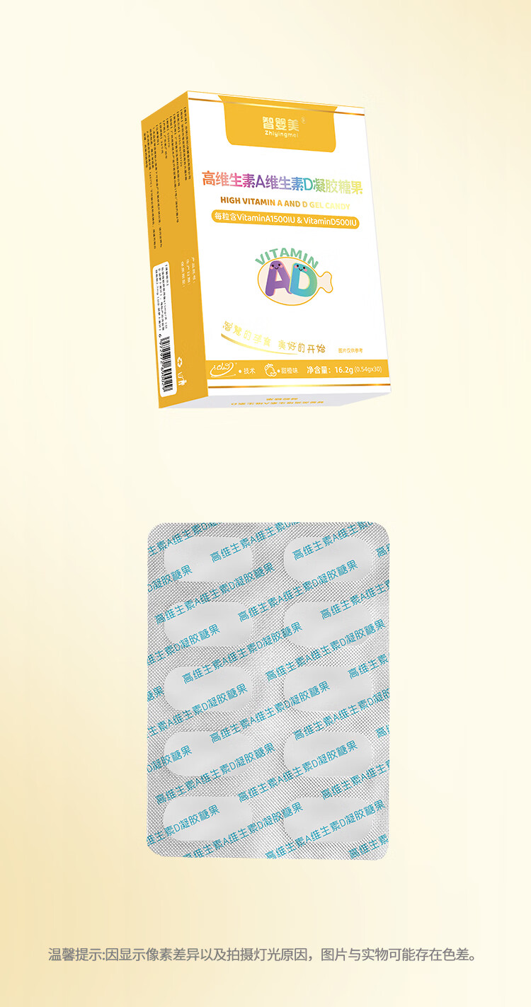 智婴美维生素A维生素D凝胶糖果30粒儿童 幼儿低敏维生素AD 维生素AD 30粒*1盒