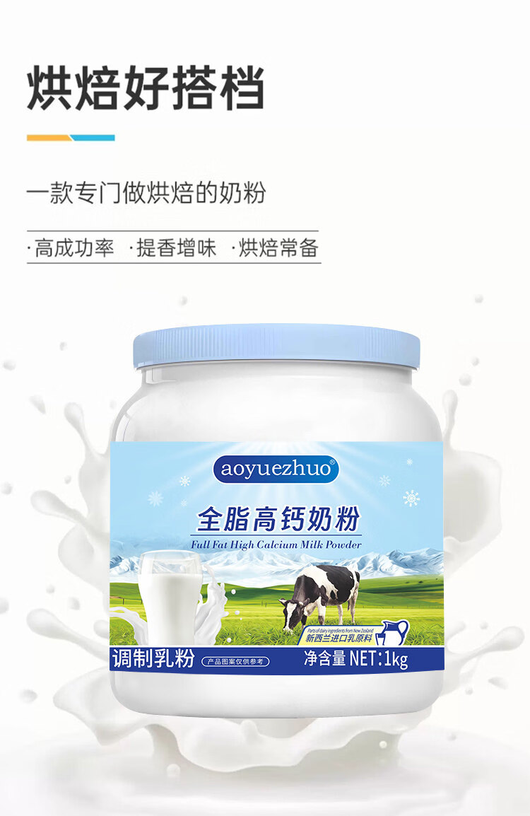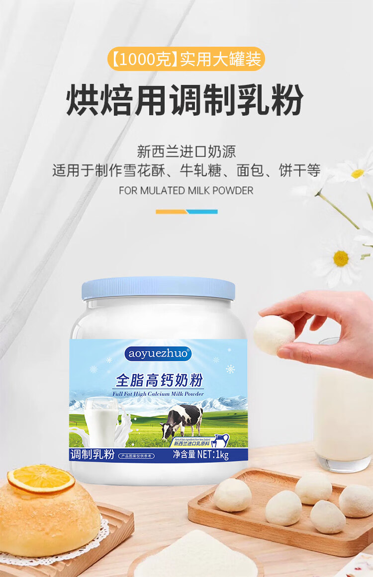 AOYUEZHUO全脂奶粉 新西兰进口奶源中老年营养补充高钙高蛋白0蔗糖烘焙奶粉 【可冲饮可烘培】全脂牛奶粉1kg*2罐+胖胖杯*1+礼袋*1