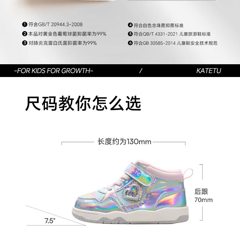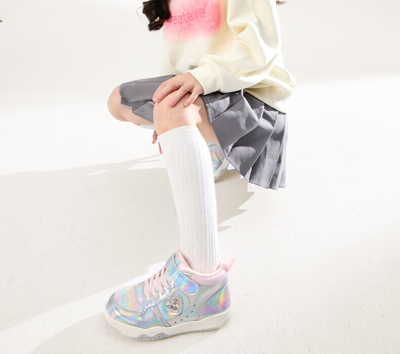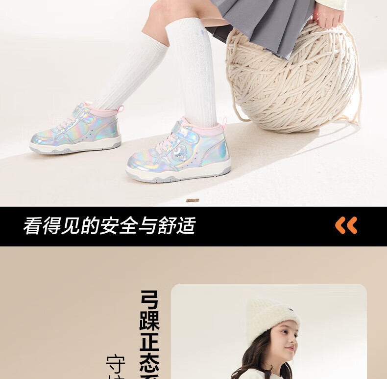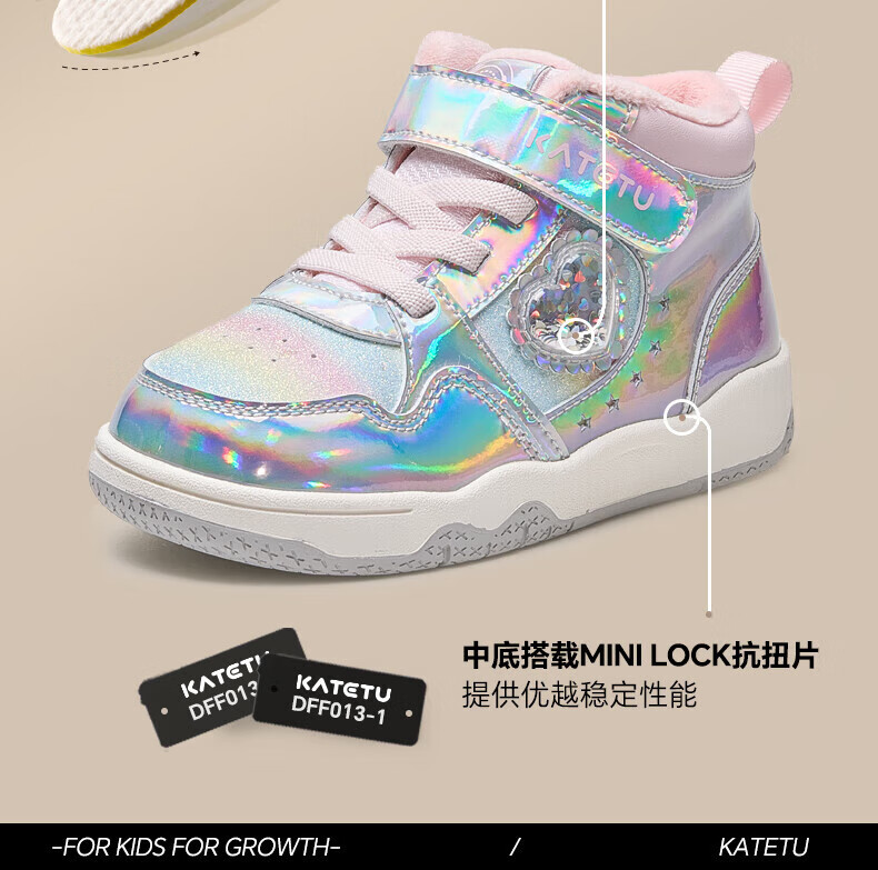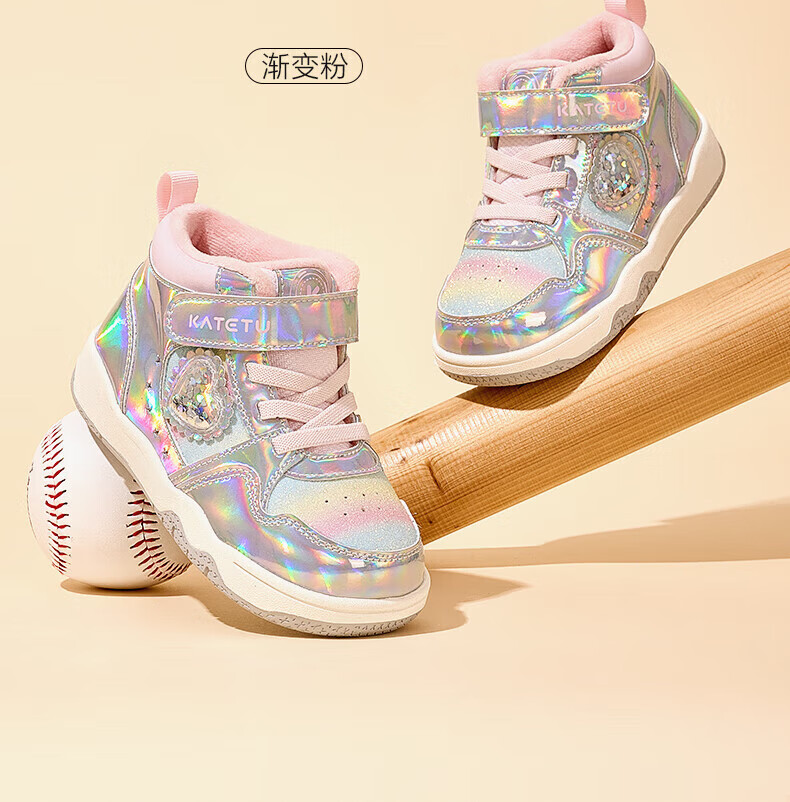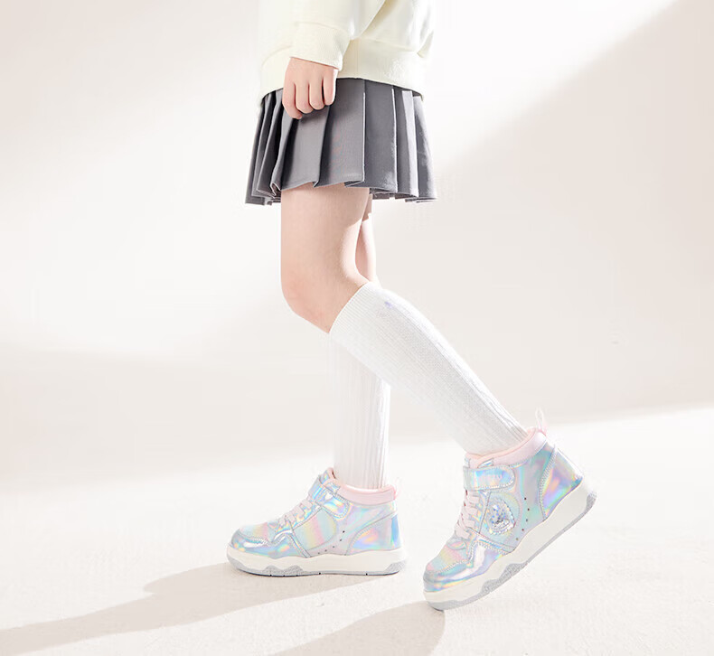 卡特兔女童板鞋高帮鞋2025秋冬新款软底防滑加绒保暖女宝二棉鞋 银粉 27 内长16.5cm 脚长15.7-16.2