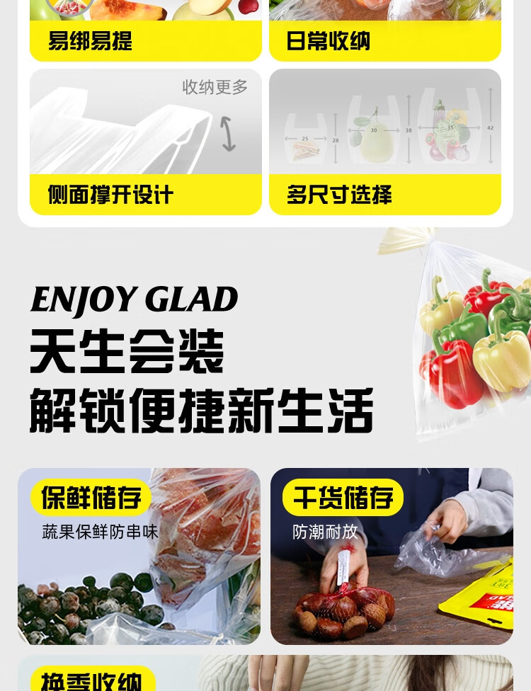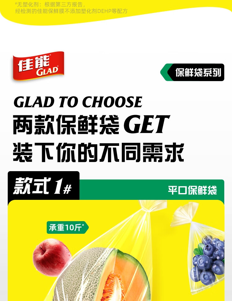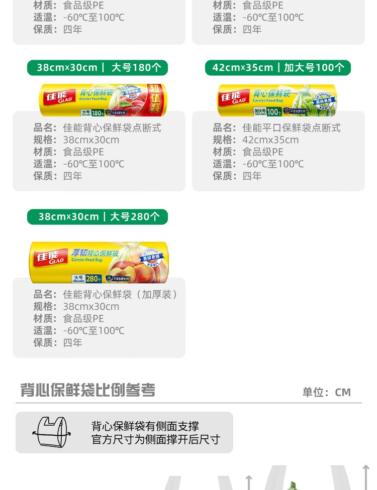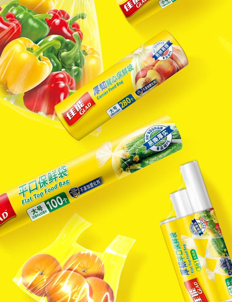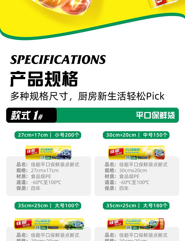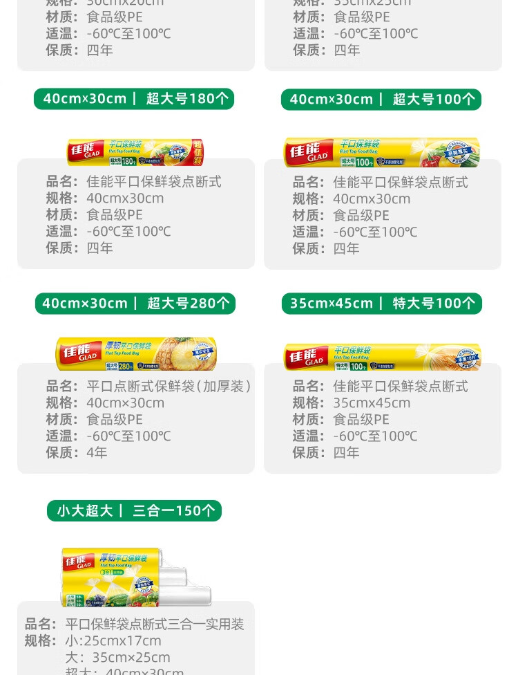 佳能(Glad)食品级保鲜袋组合装300只 平口点断式 塑料袋生鲜蔬果冷冻专用