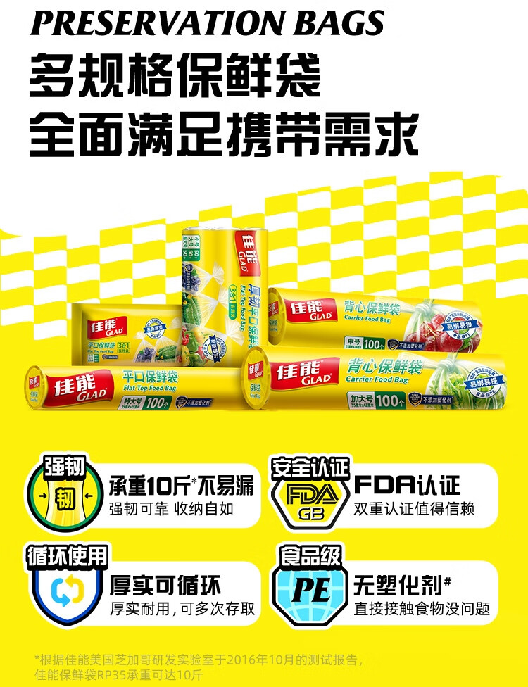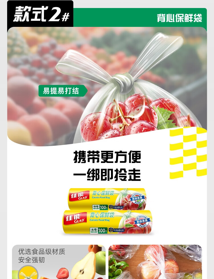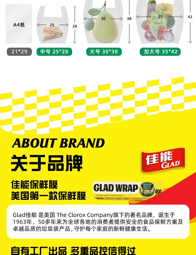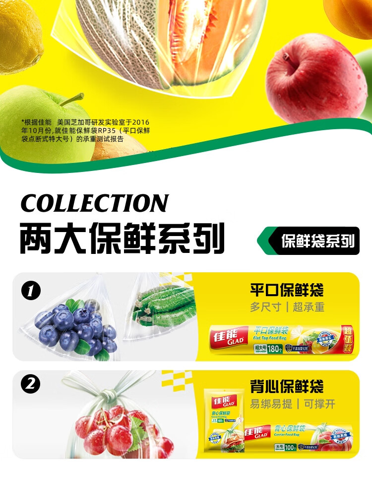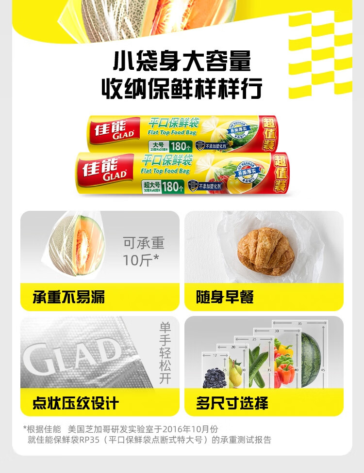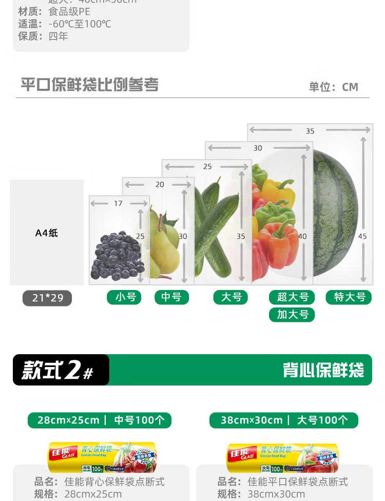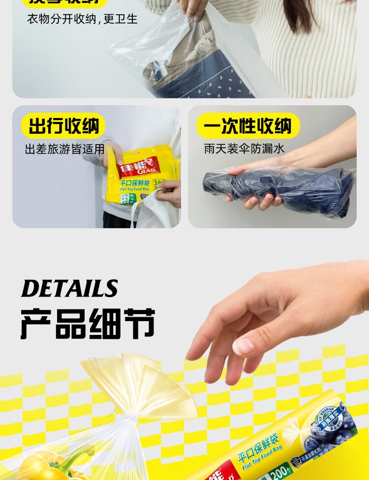 佳能(Glad)食品级保鲜袋组合装300只 平口点断式 塑料袋生鲜蔬果冷冻专用