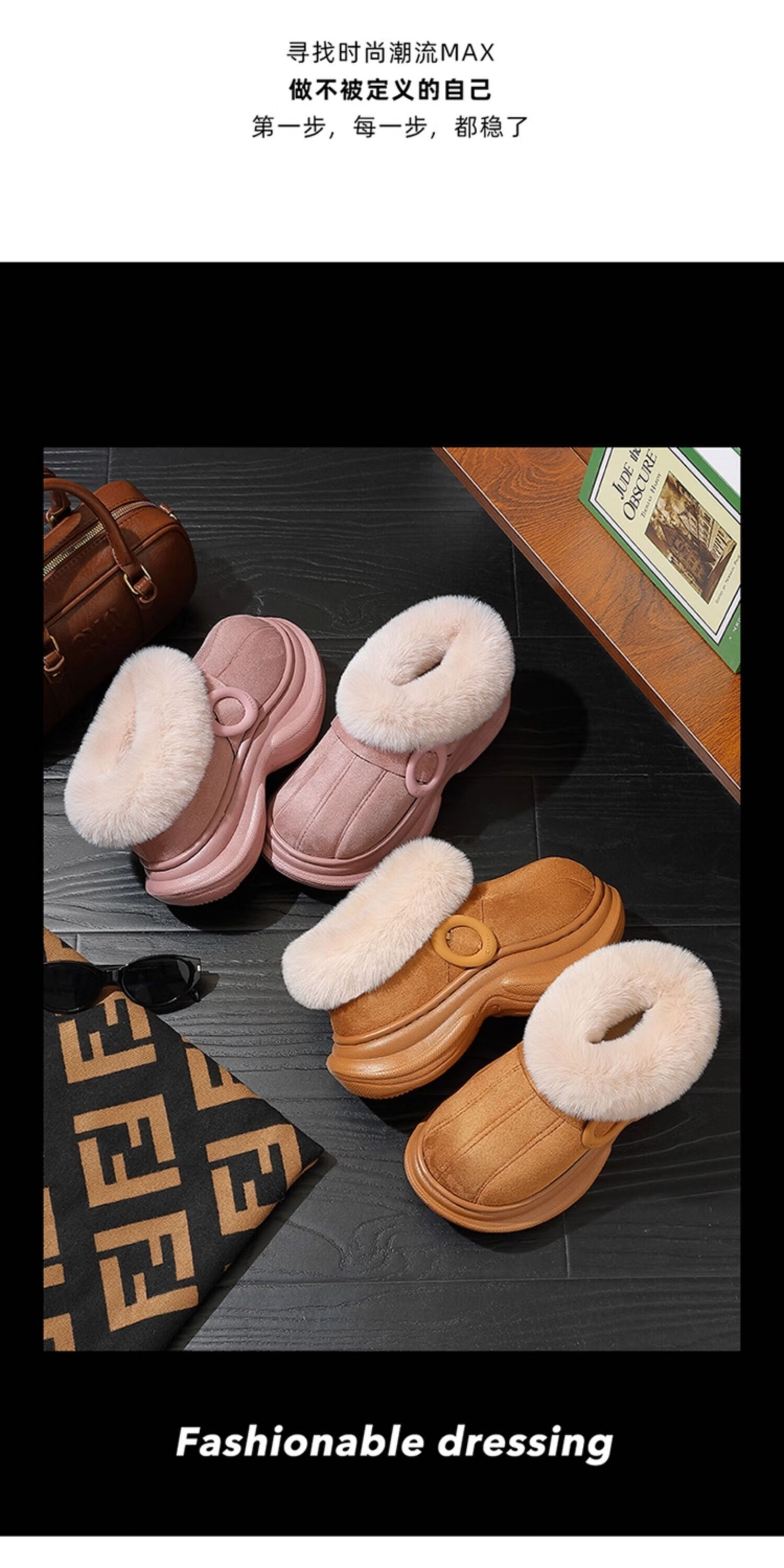 FZT厚底棉拖鞋女款2025新款包跟冬季居家室内保暖加绒防滑外穿女外穿 咖色 40 -41 【标准码】