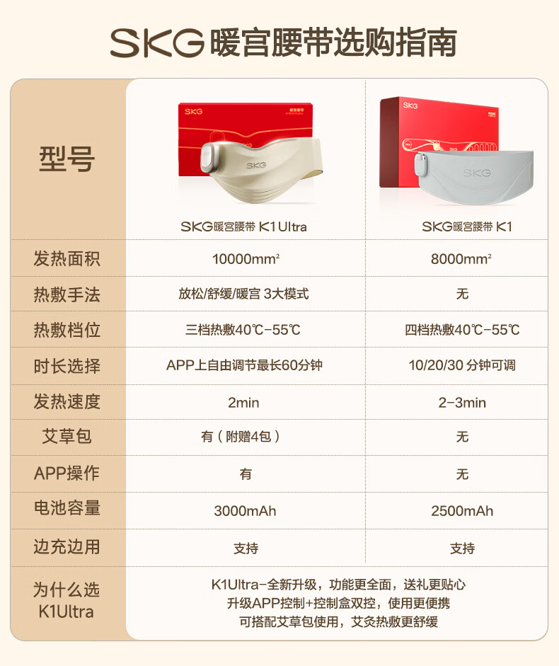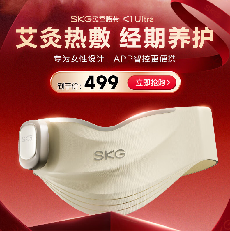 SKG暖宫腰带大姨妈神器腰部艾灸热敷暖宝宝暖腹痛经大姨妈期舒缓贴护腰带生日礼物实用送女友老婆闺蜜 【全新升级K1Ultra】艾灸热敷APP智控