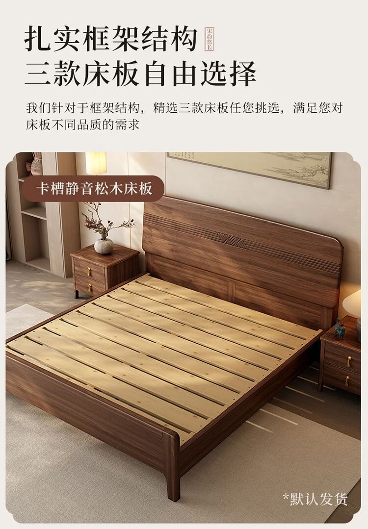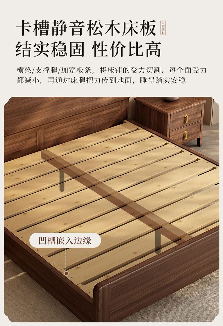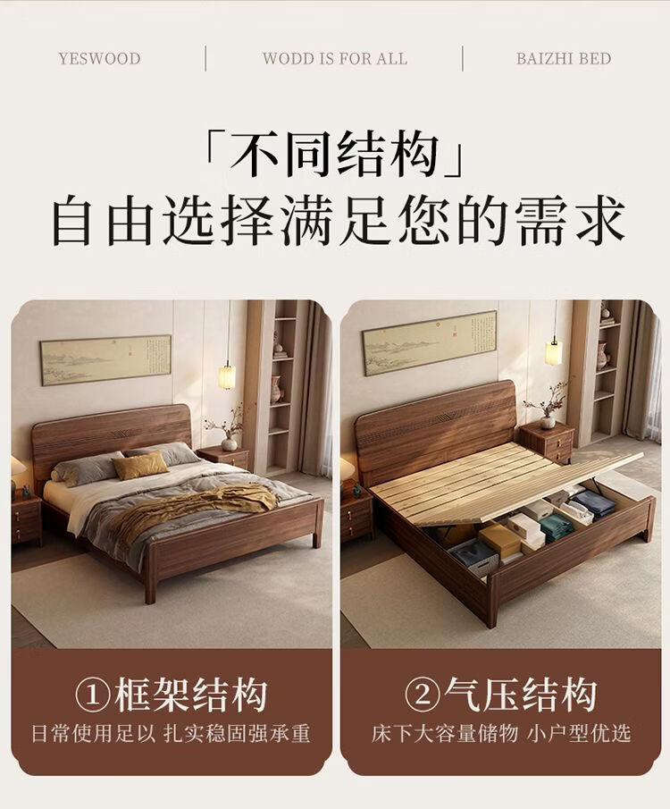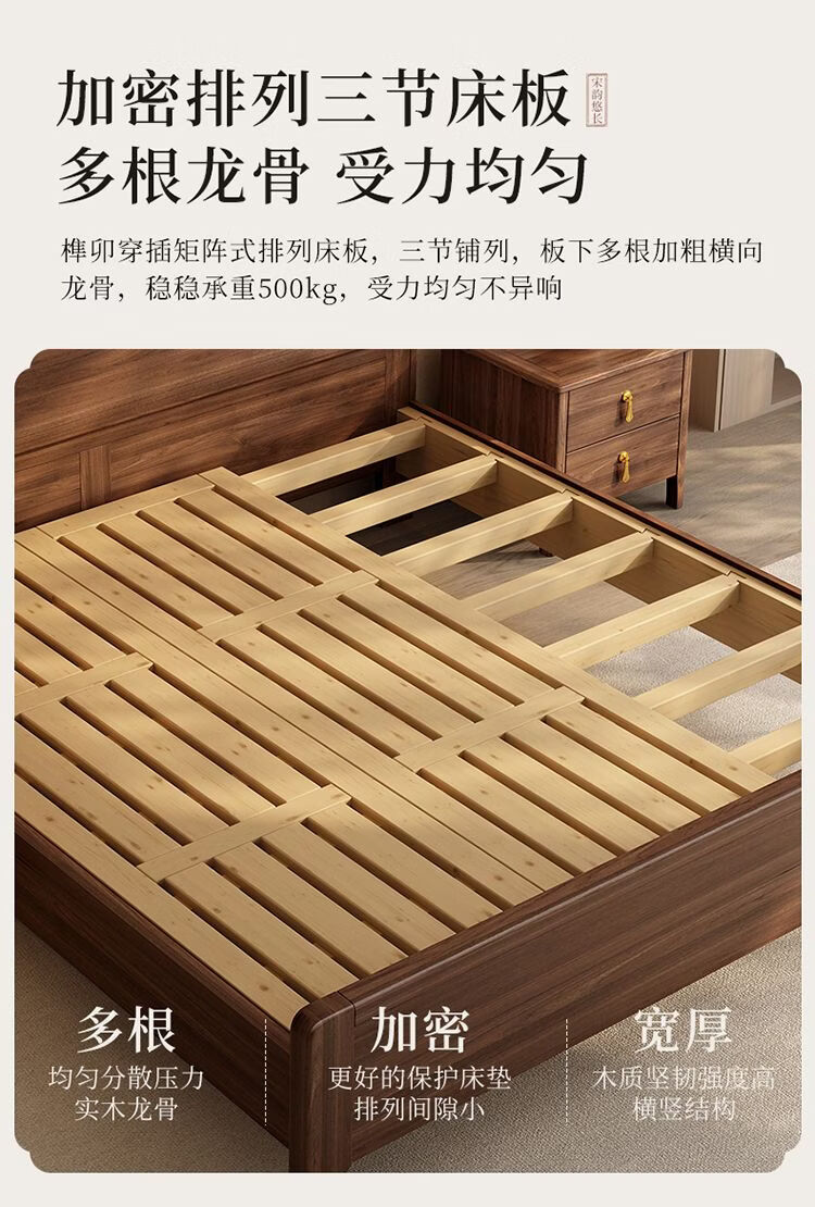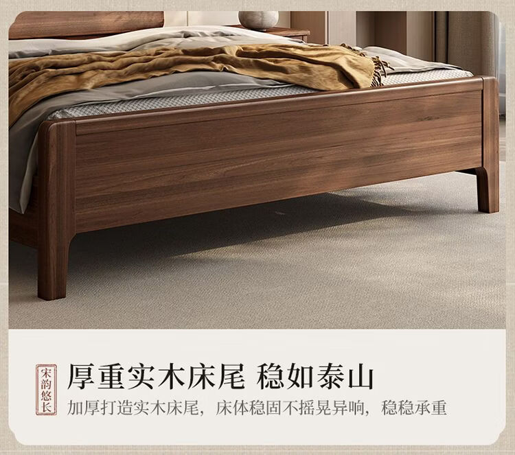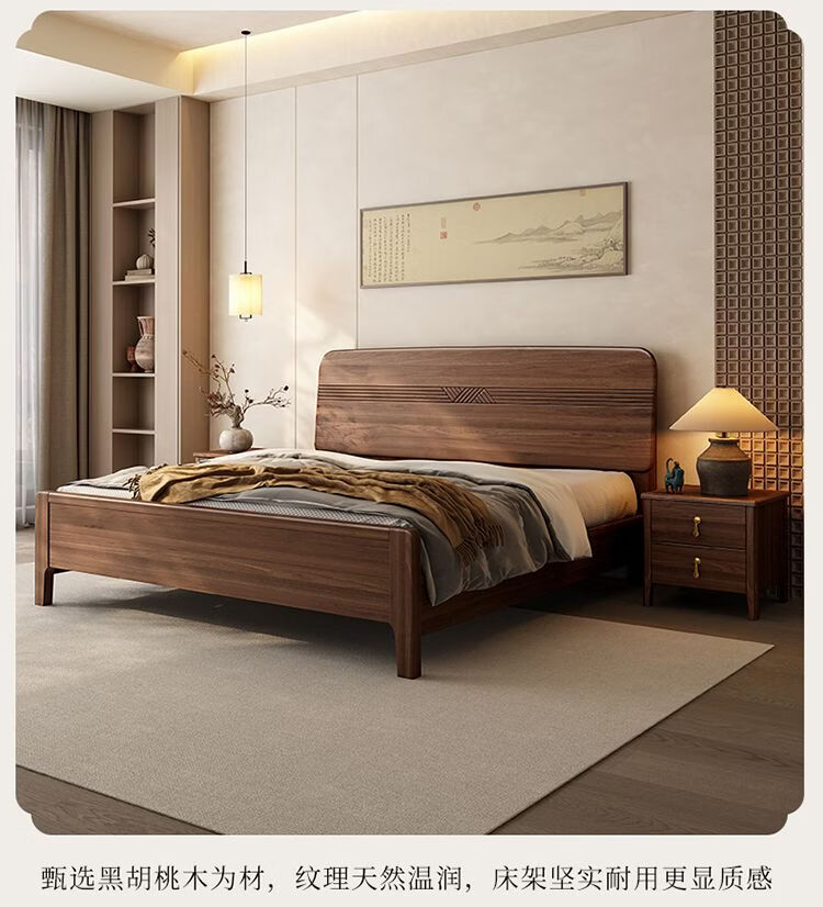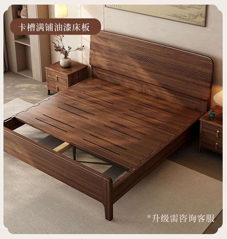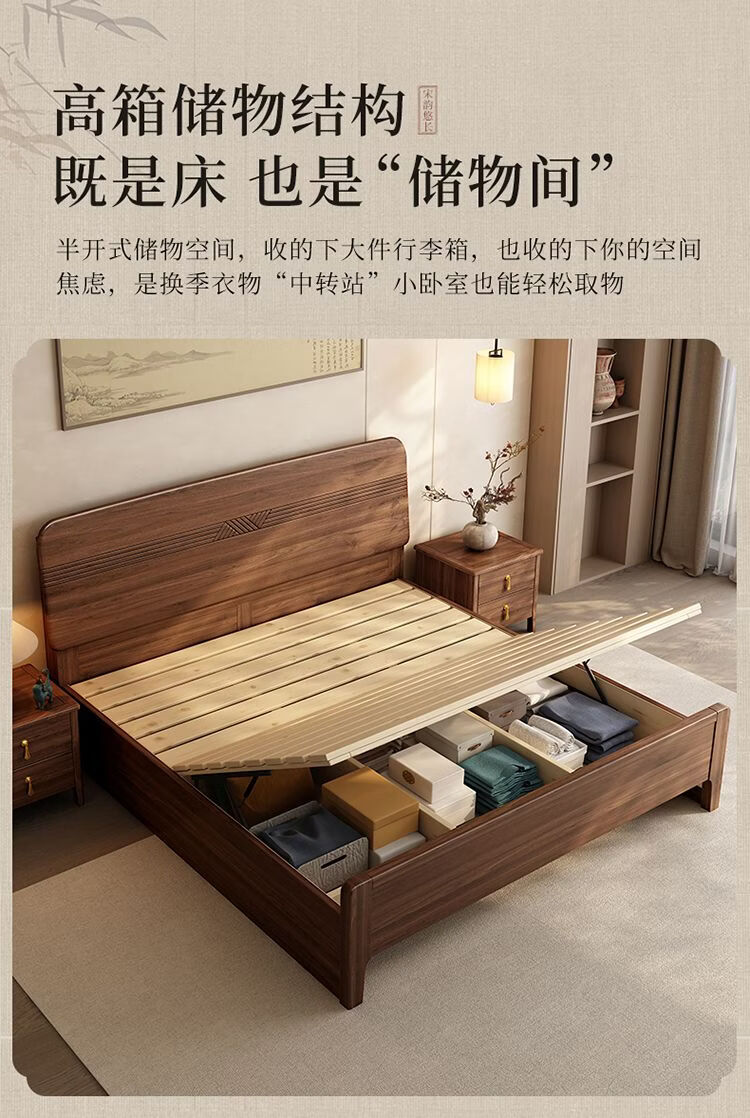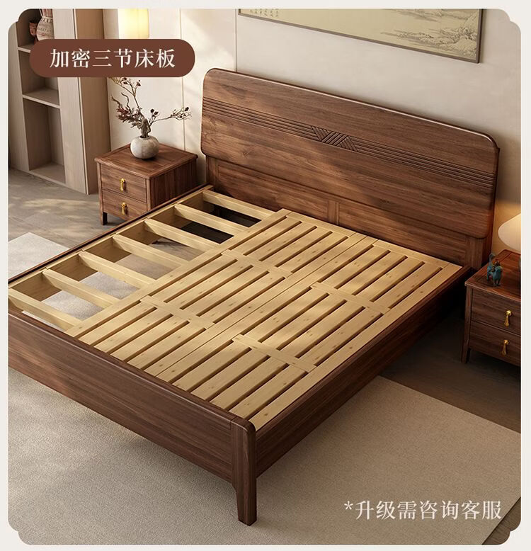 桓伊筝北美黑胡桃木实木床现代简约床1.8米双人床主卧家用储物婚床 实木床+2个床头柜+椰棕床垫20cm 1.5*2米 家具结构 满铺油漆实木高箱储物