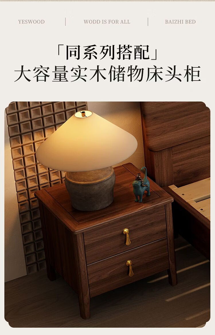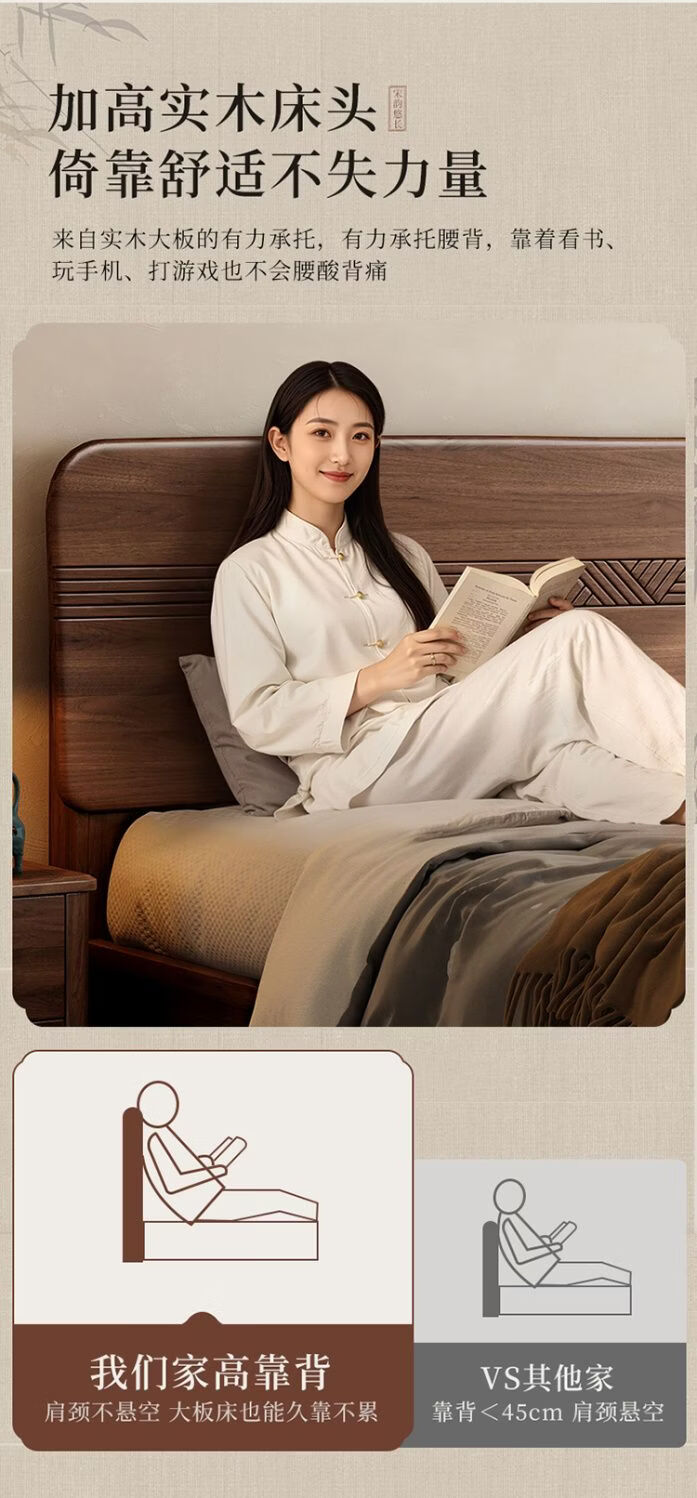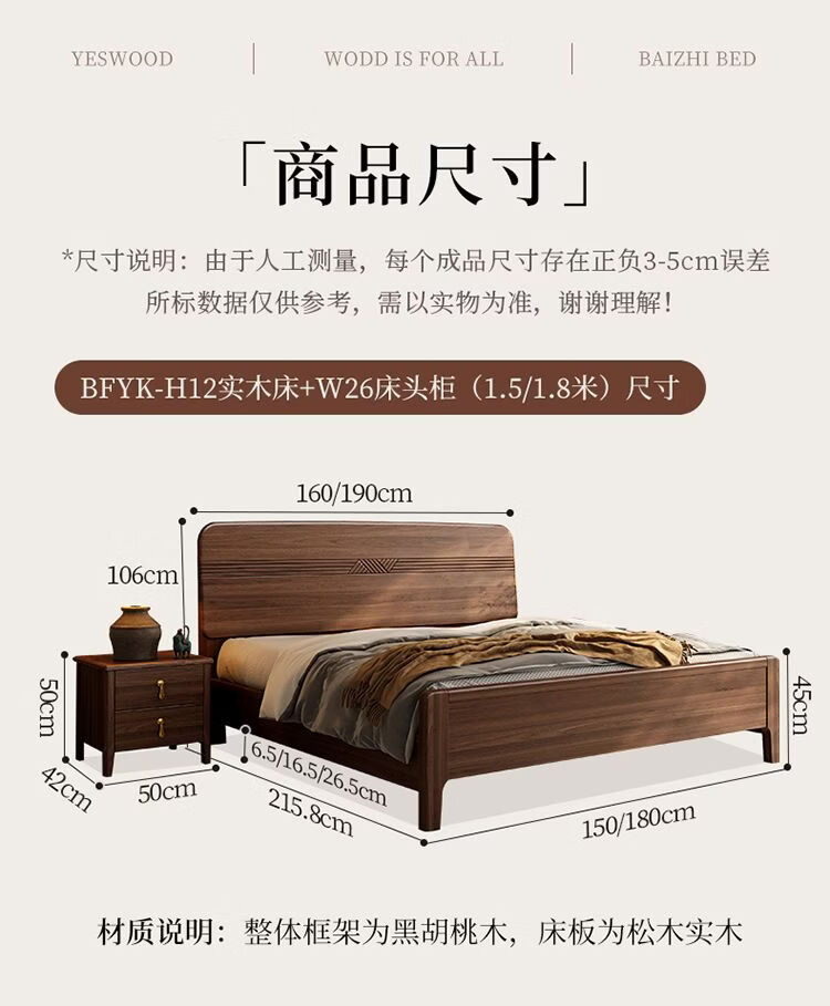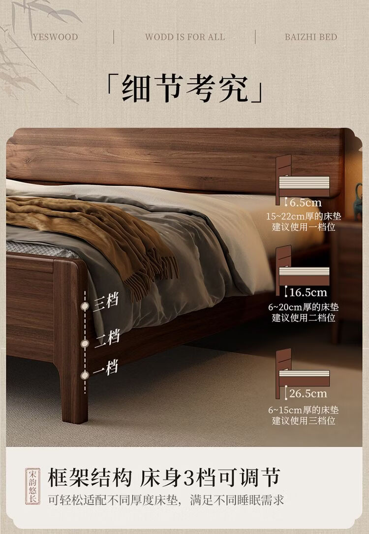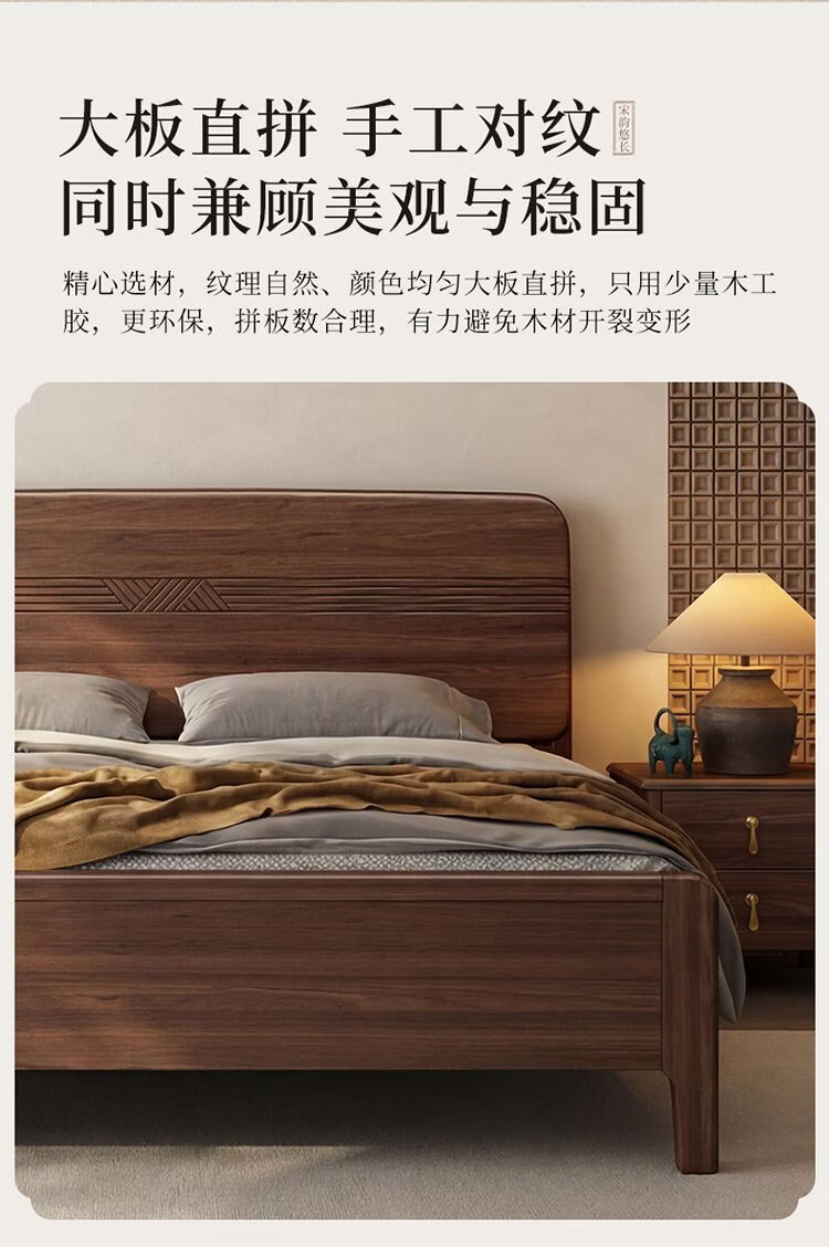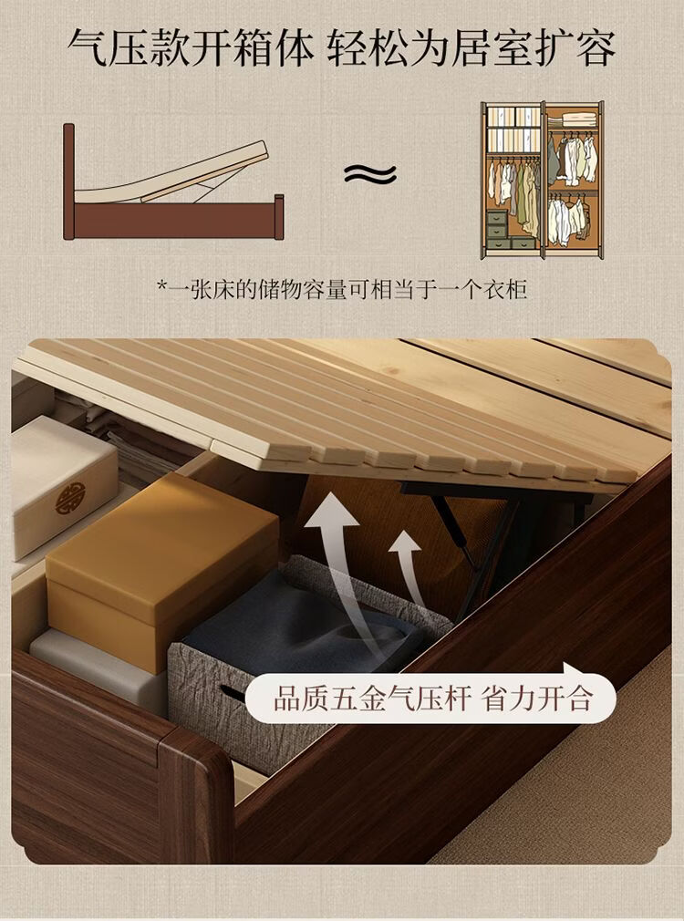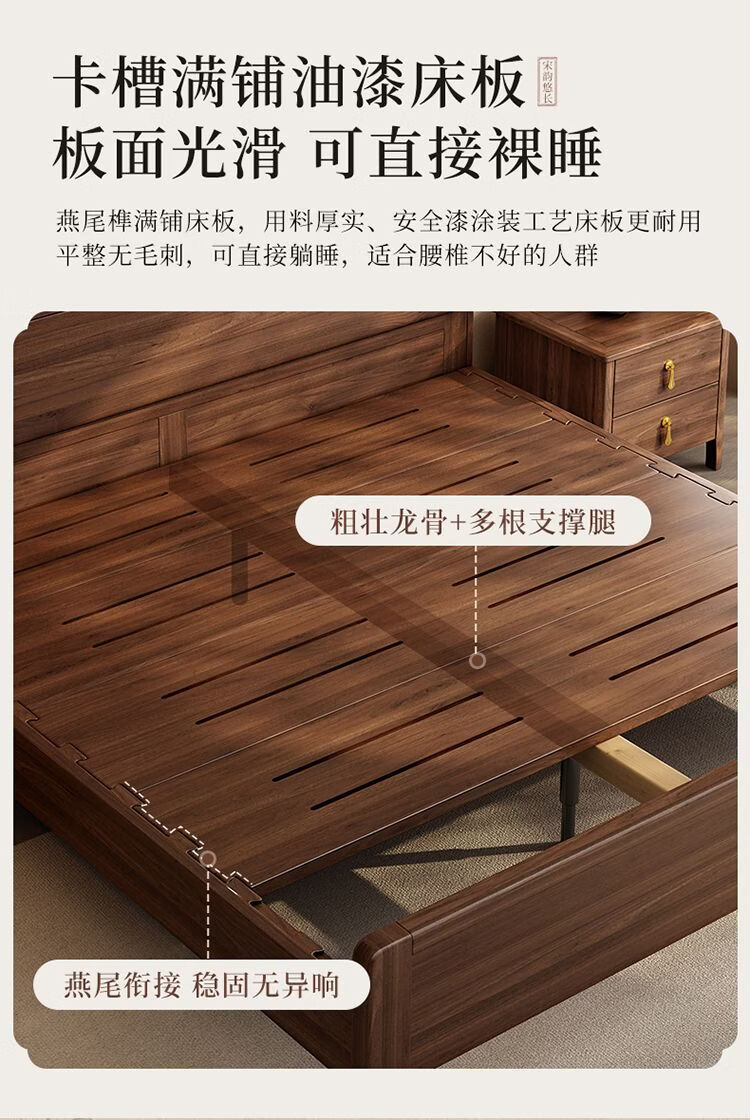 桓伊筝北美黑胡桃木实木床现代简约床1.8米双人床主卧家用储物婚床 实木床+2个床头柜+椰棕床垫20cm 1.5*2米 家具结构 满铺油漆实木高箱储物