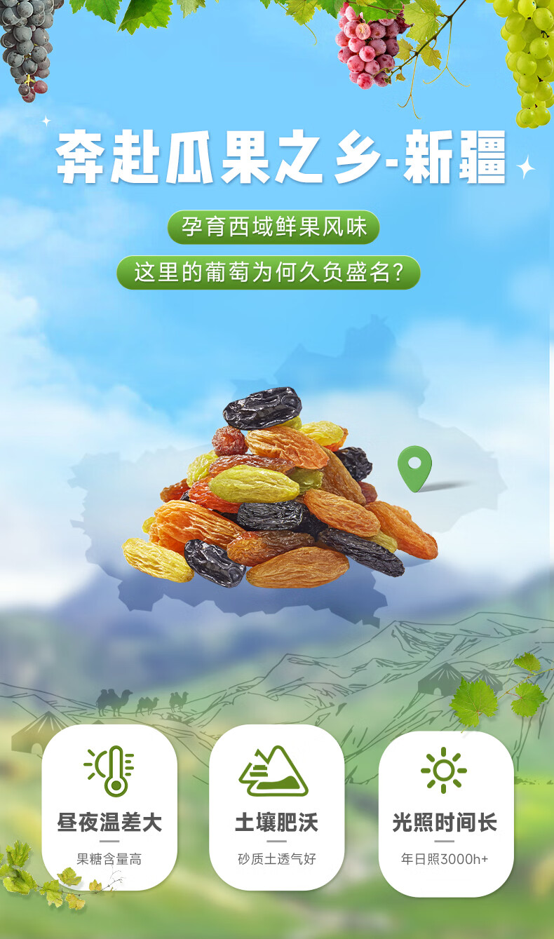 华味亨多色葡萄干500g/袋无籽三色新疆原产大果干蜜饯休闲零食企业团购