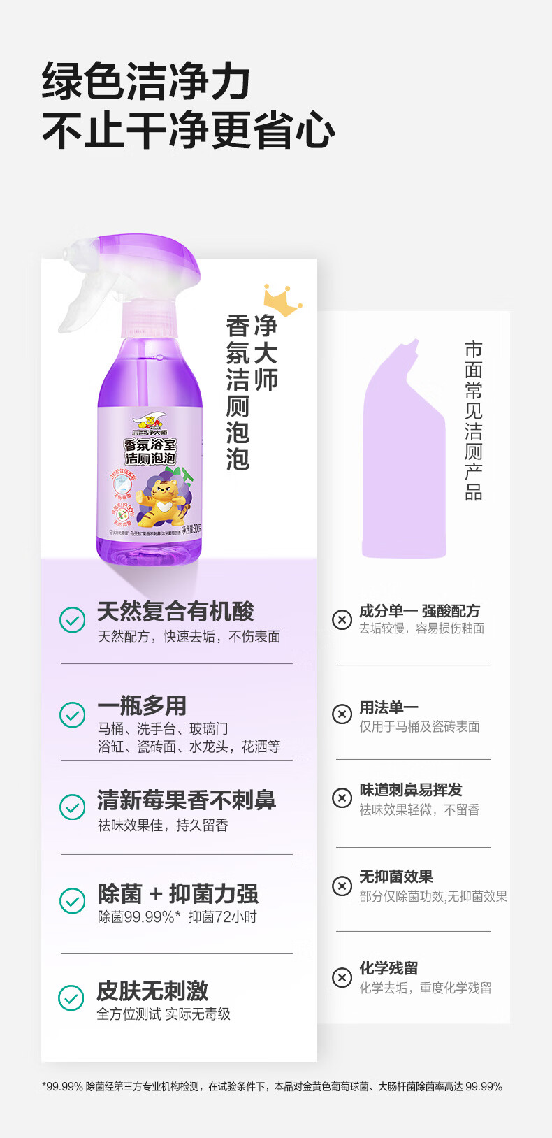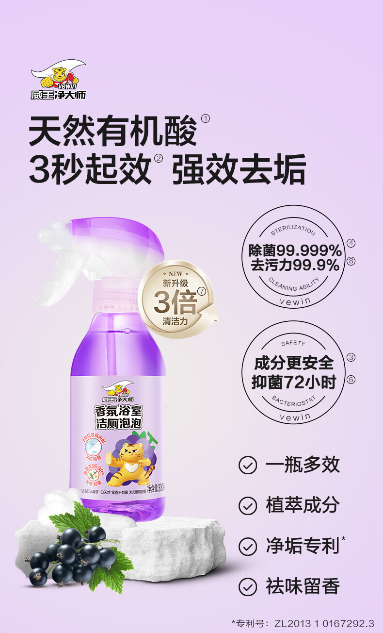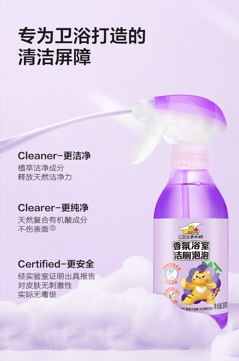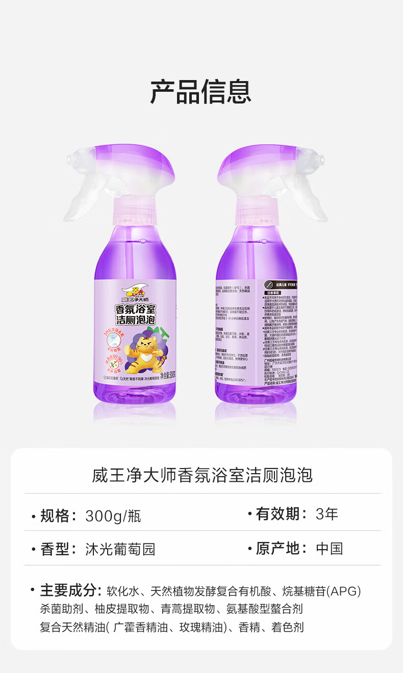 威王净大师洁厕灵香氛泡泡300g*2 马桶厕所清洁液喷雾除垢除臭除菌去黄异味