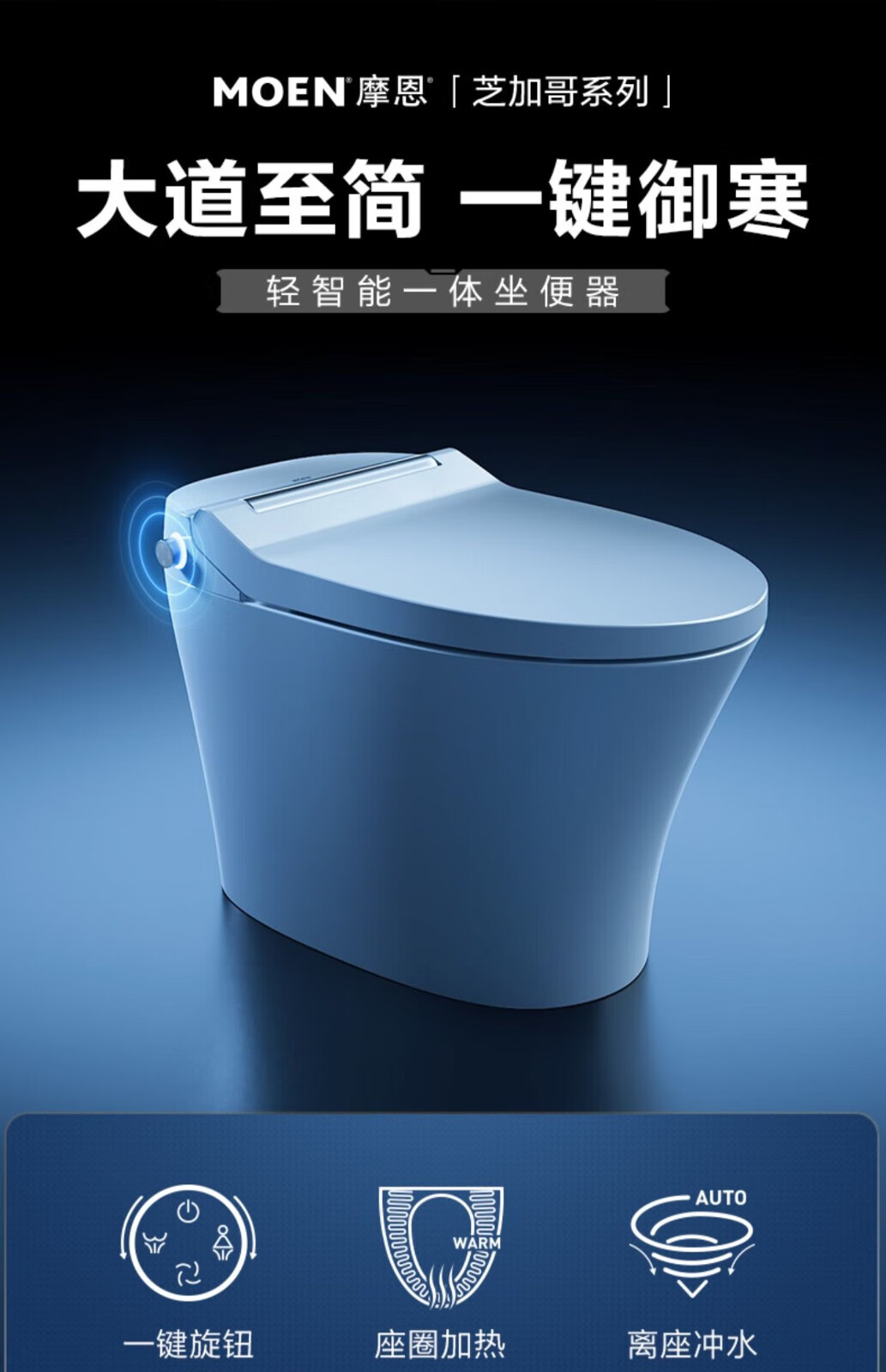 摩恩(MOEN)智能马桶一体机,即热式全自动冲洗暖风烘干卫浴智能坐便器 【双遥控】泡沫盾+无惧低压 305/300mm