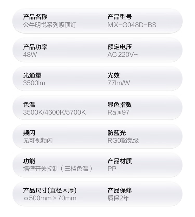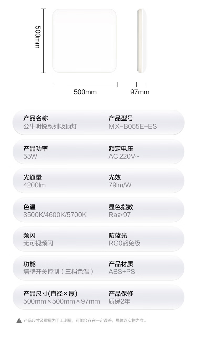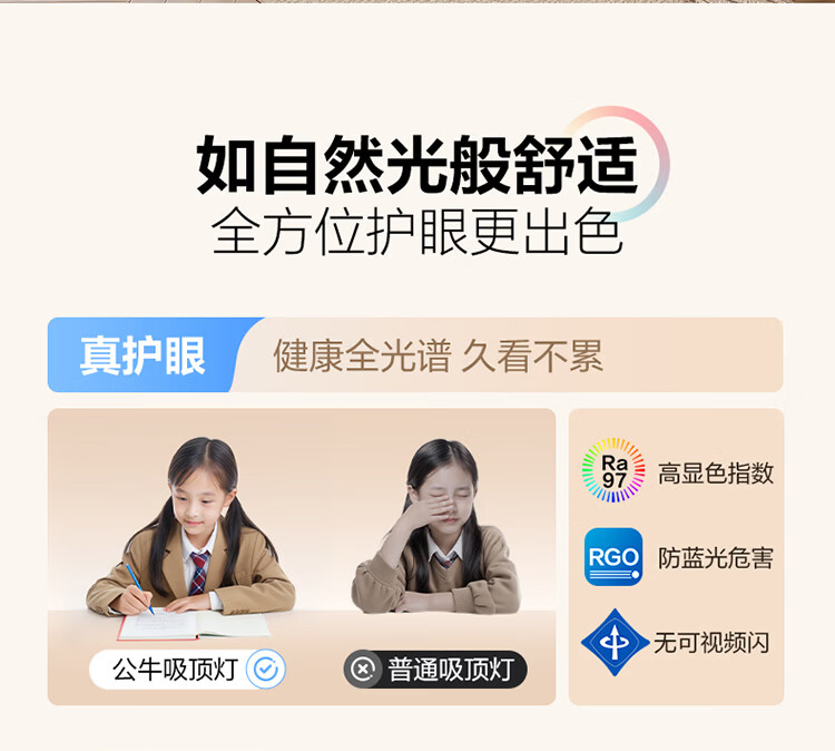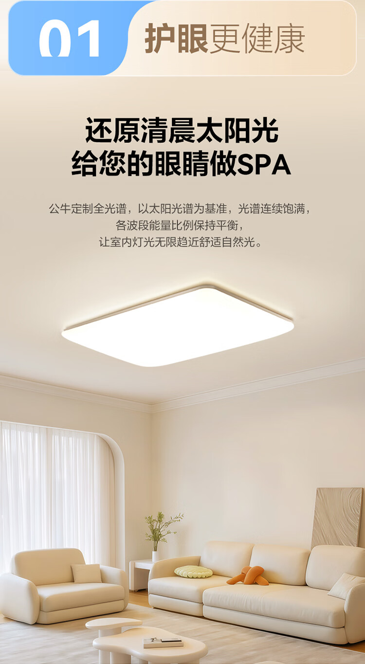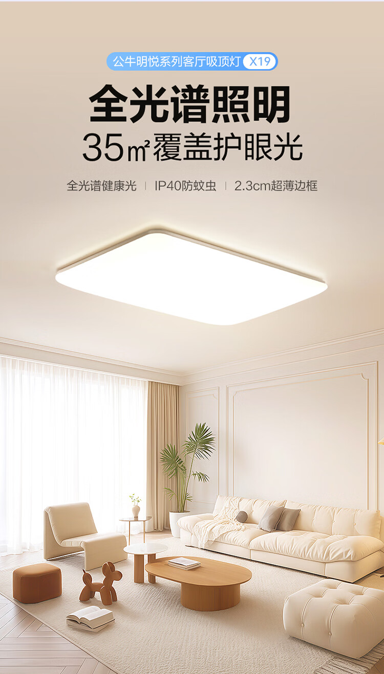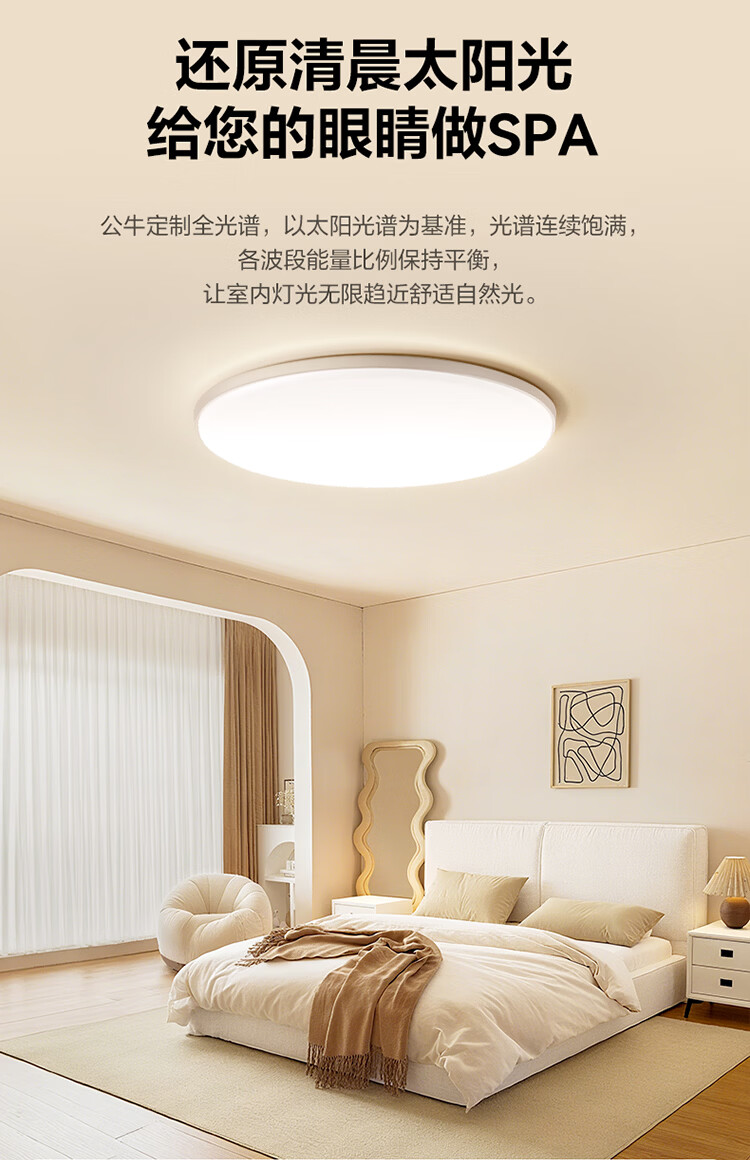 公牛(BULL)X19系列全光谱吸顶灯 已接入米家APP智能 卧室/客厅灯 三色调光 55W 卧室灯【已接入米家】MX-B055F-WS