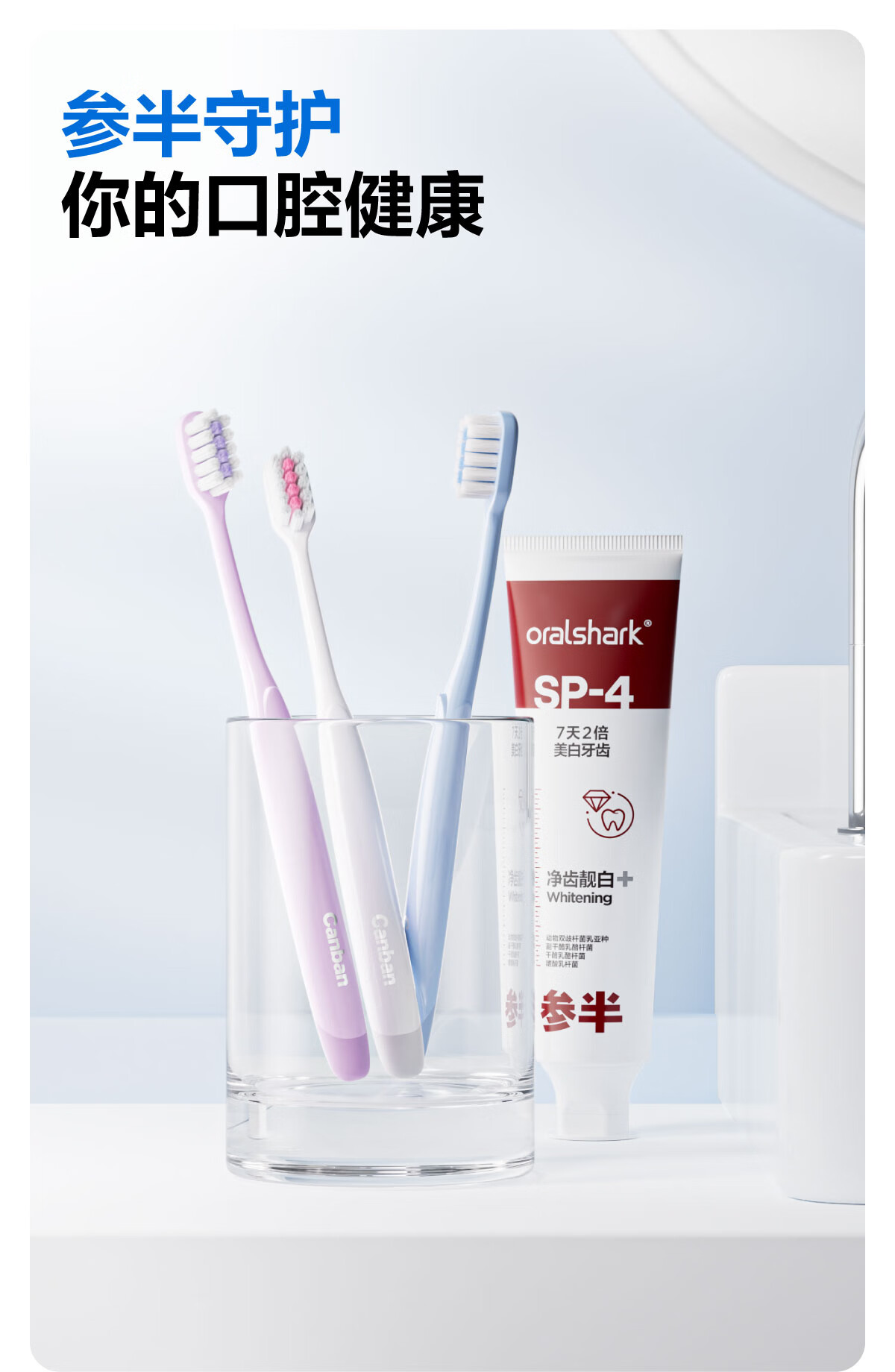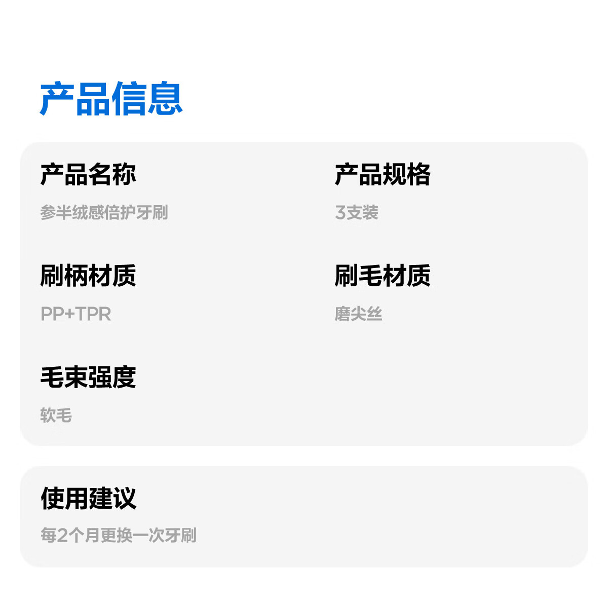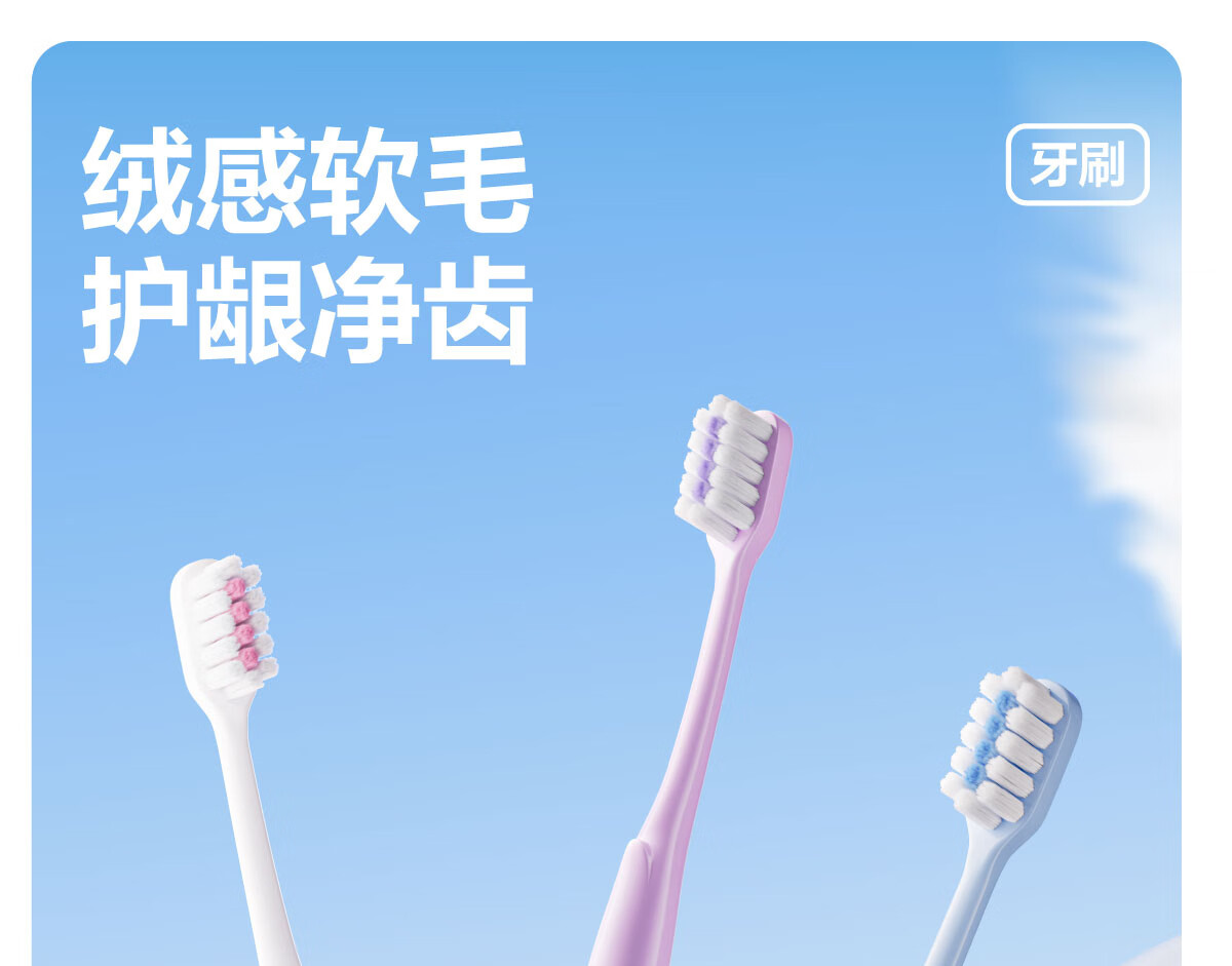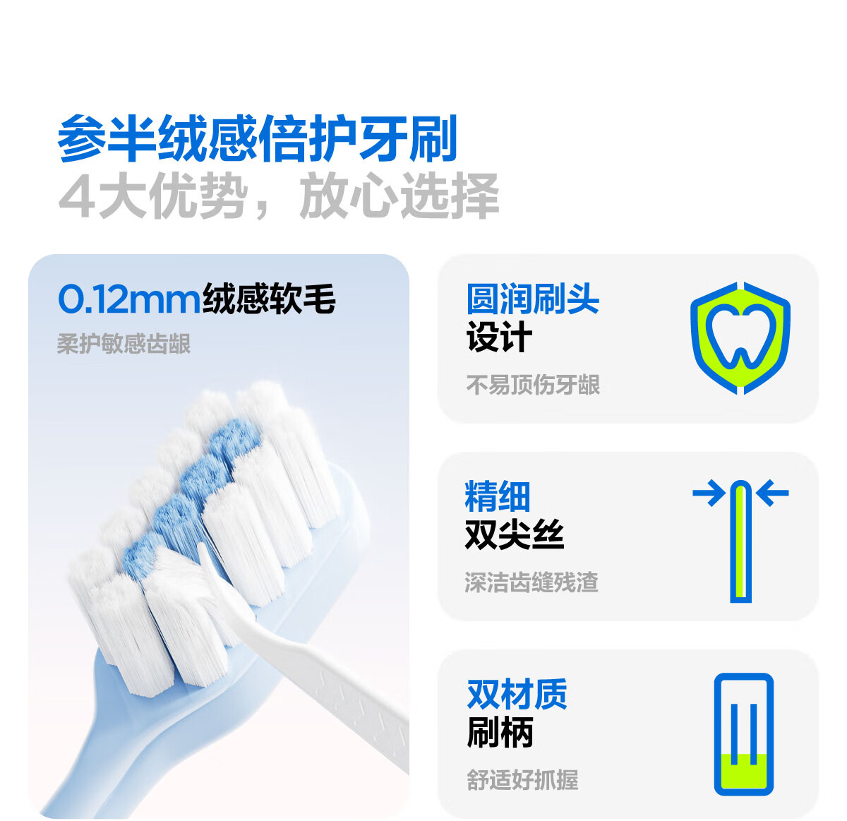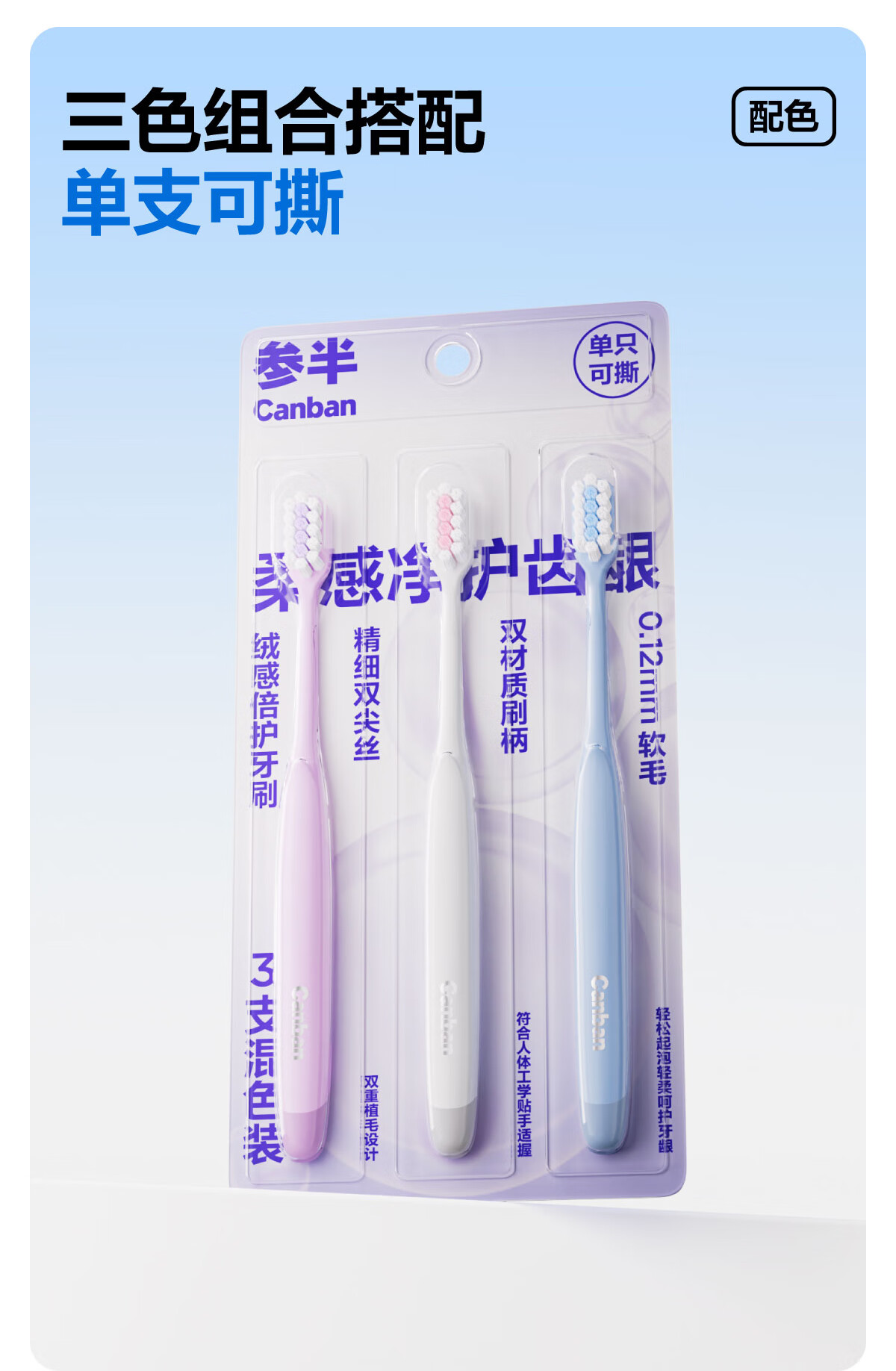 参半绒感倍护牙刷软毛刷圆头护龈轻柔双重植毛 3支装