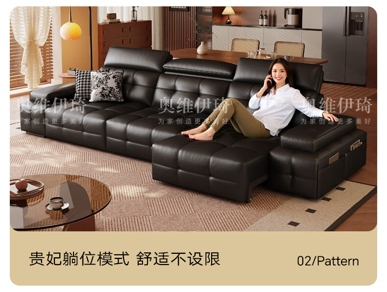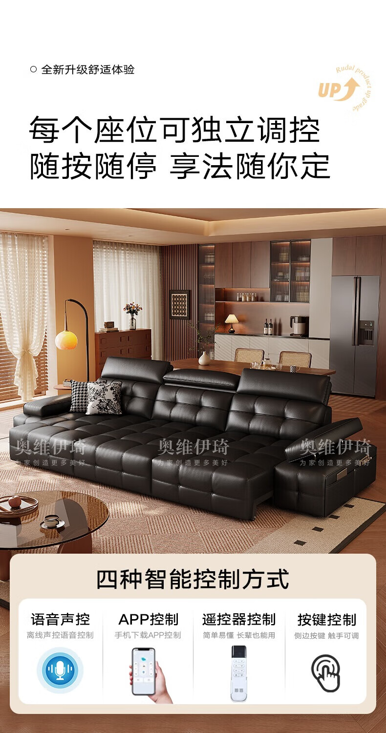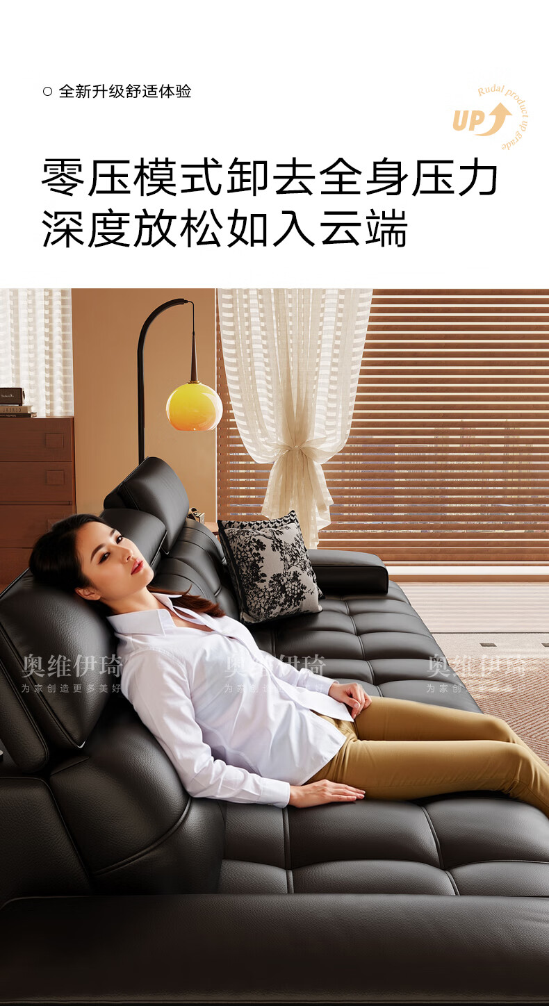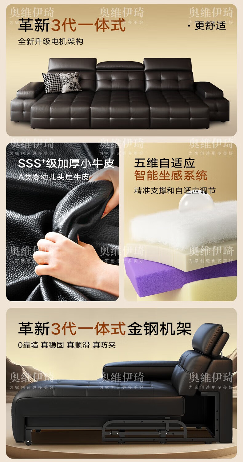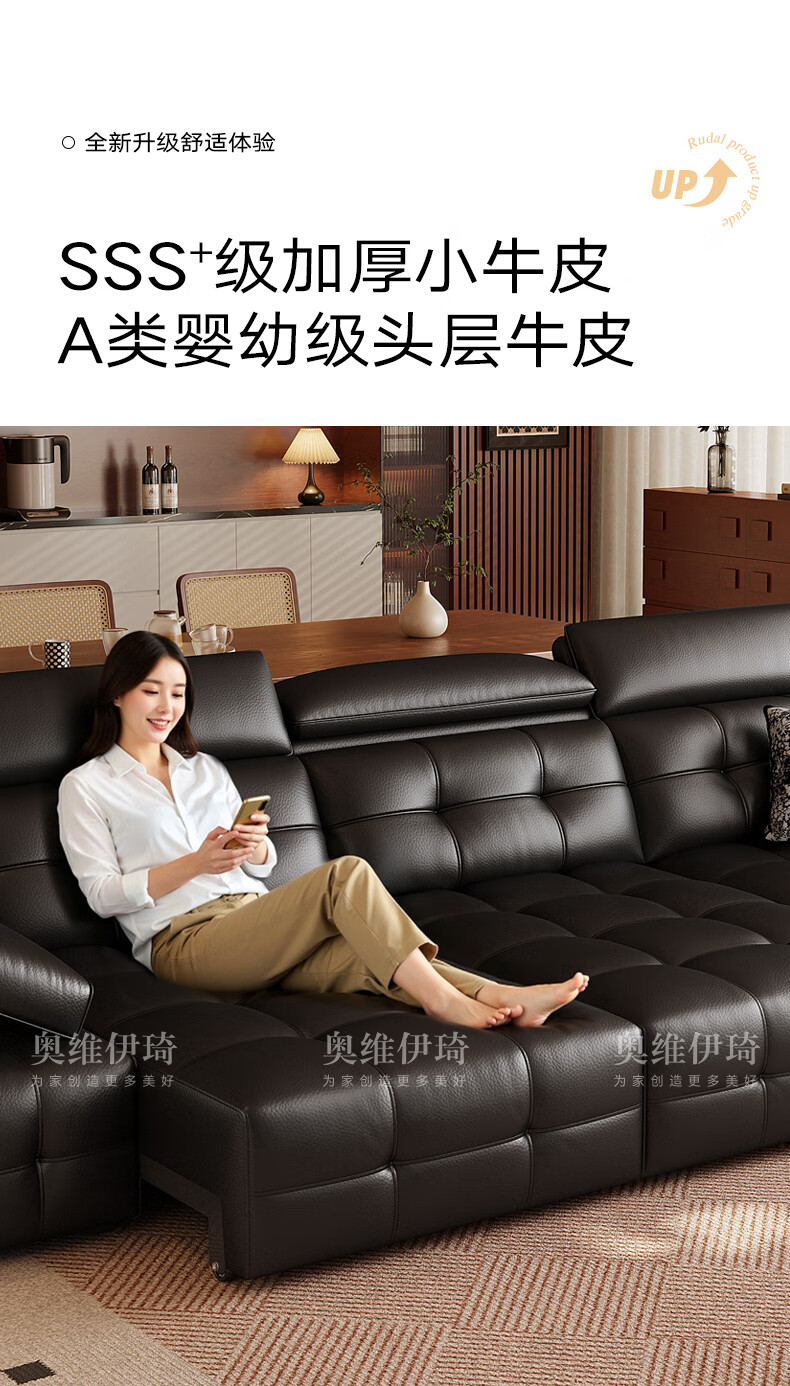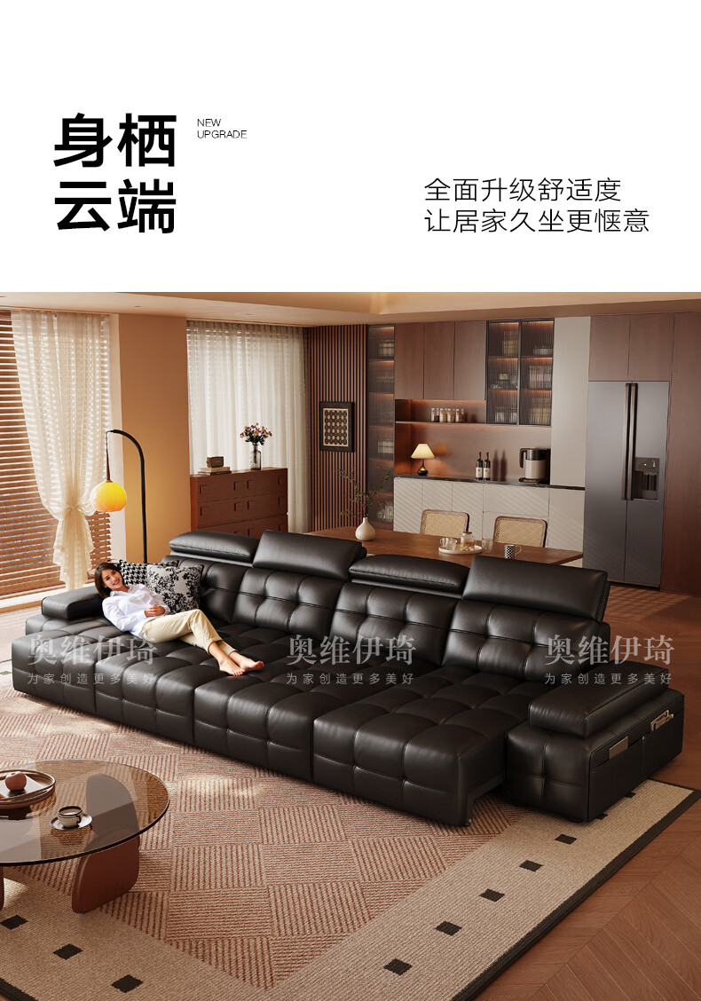 奥维伊琦电动沙发功能真皮沙发智能电动真皮沙发头层牛皮客厅电动沙发床 2.35米【双人位+双电机】【全新升级框架-终身质保】 【豪华版(接触面)】2.4mm进口头层黄牛皮
