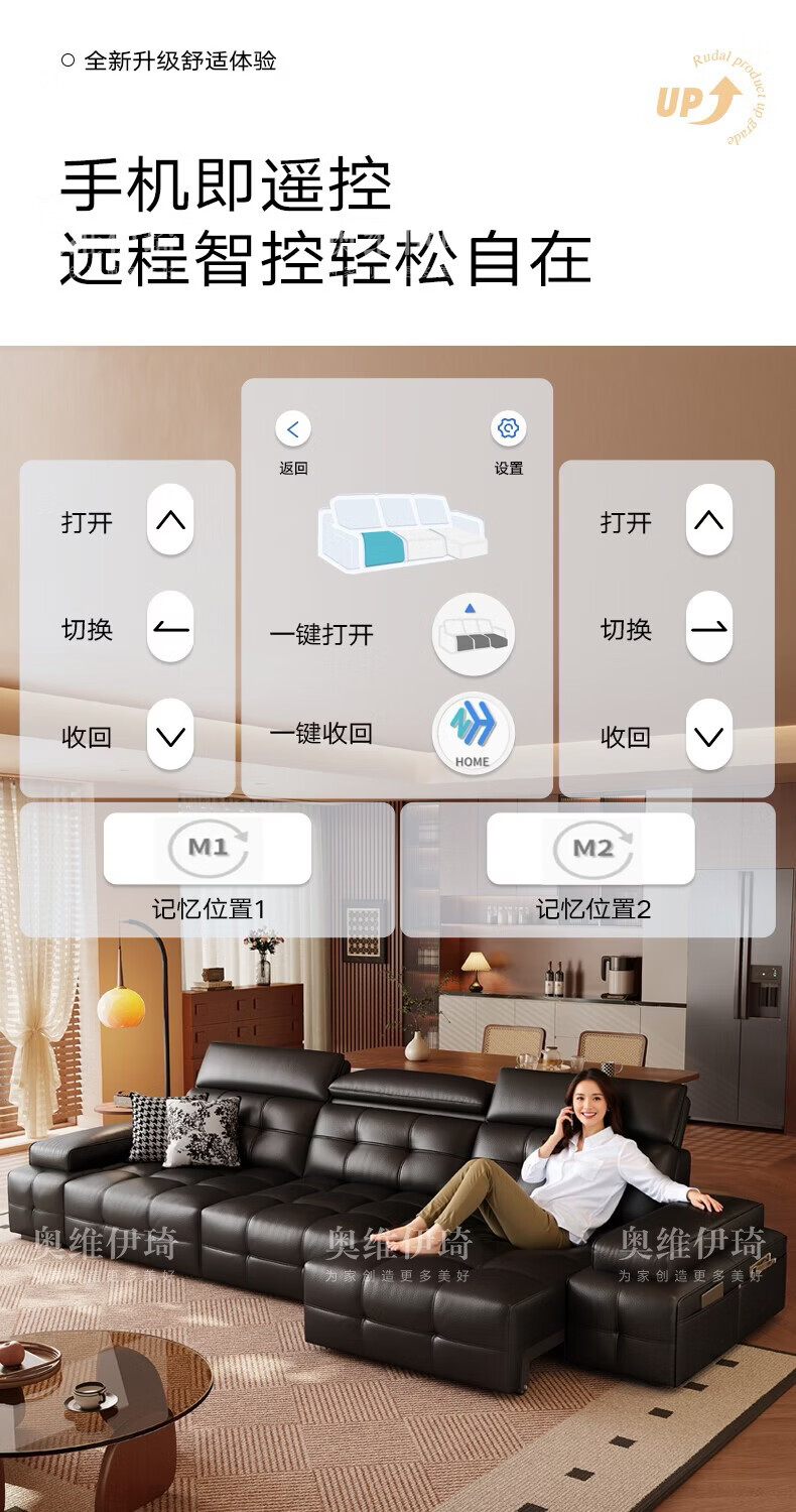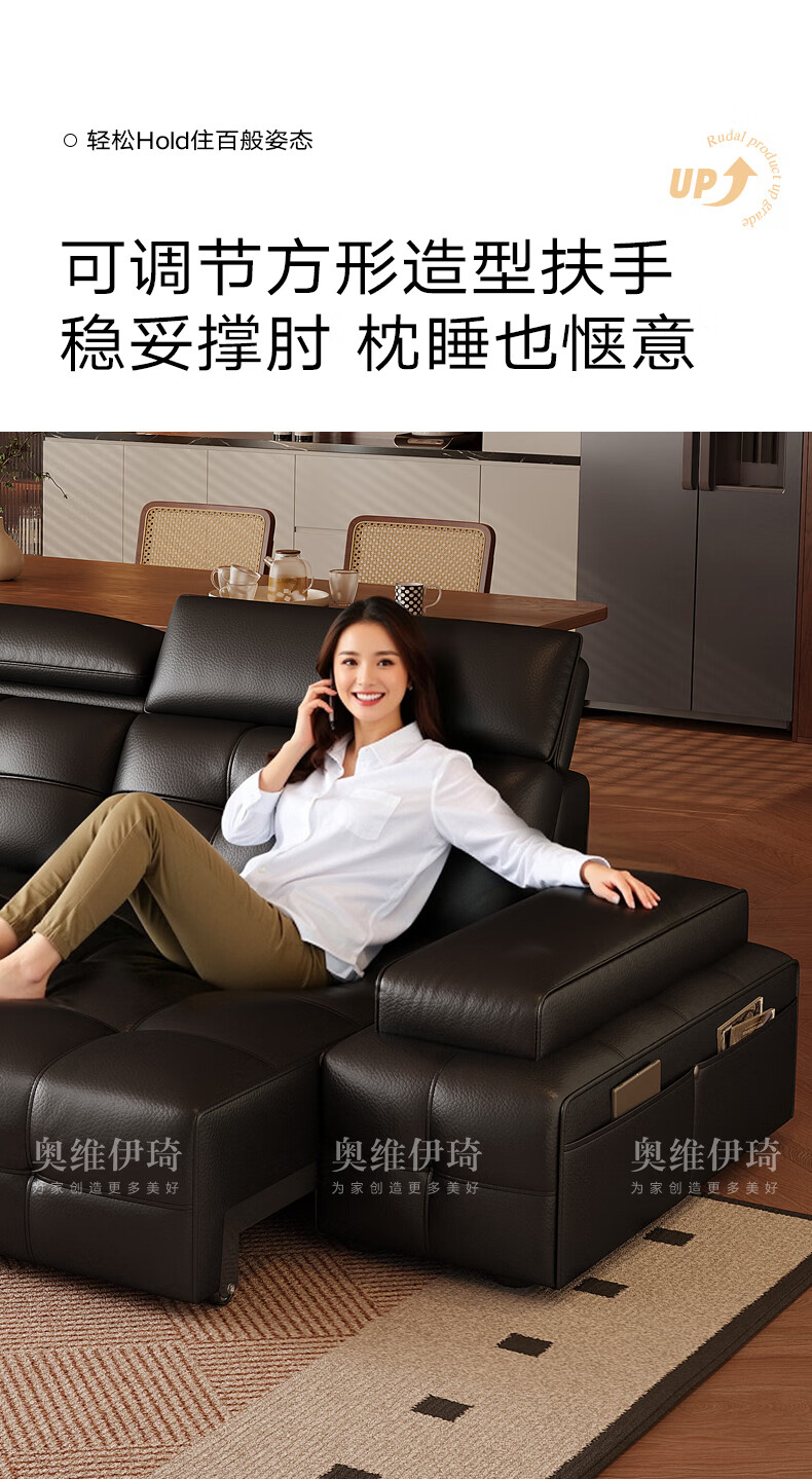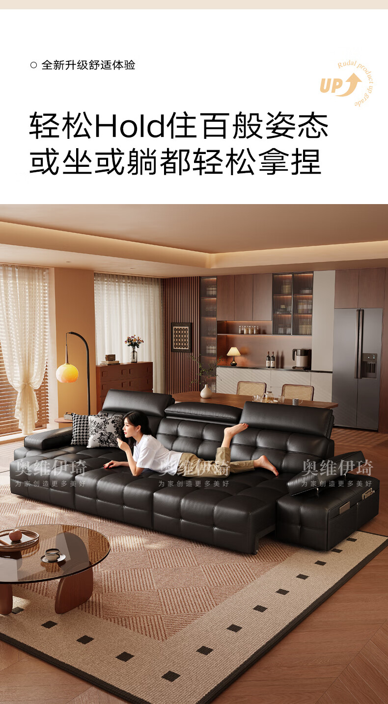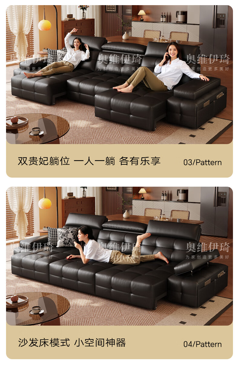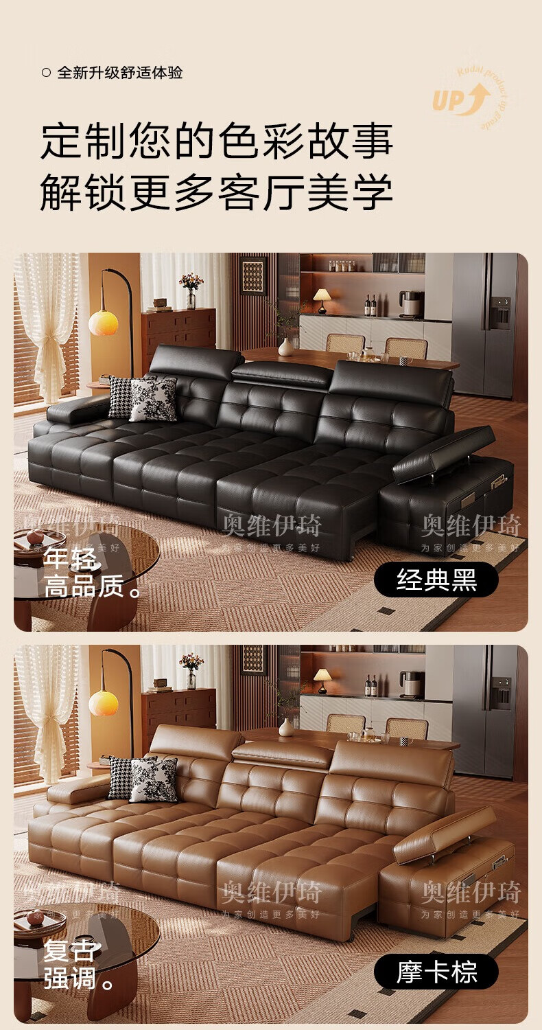 奥维伊琦电动沙发功能真皮沙发智能电动真皮沙发头层牛皮客厅电动沙发床 2.35米【双人位+双电机】【全新升级框架-终身质保】 【豪华版(接触面)】2.4mm进口头层黄牛皮