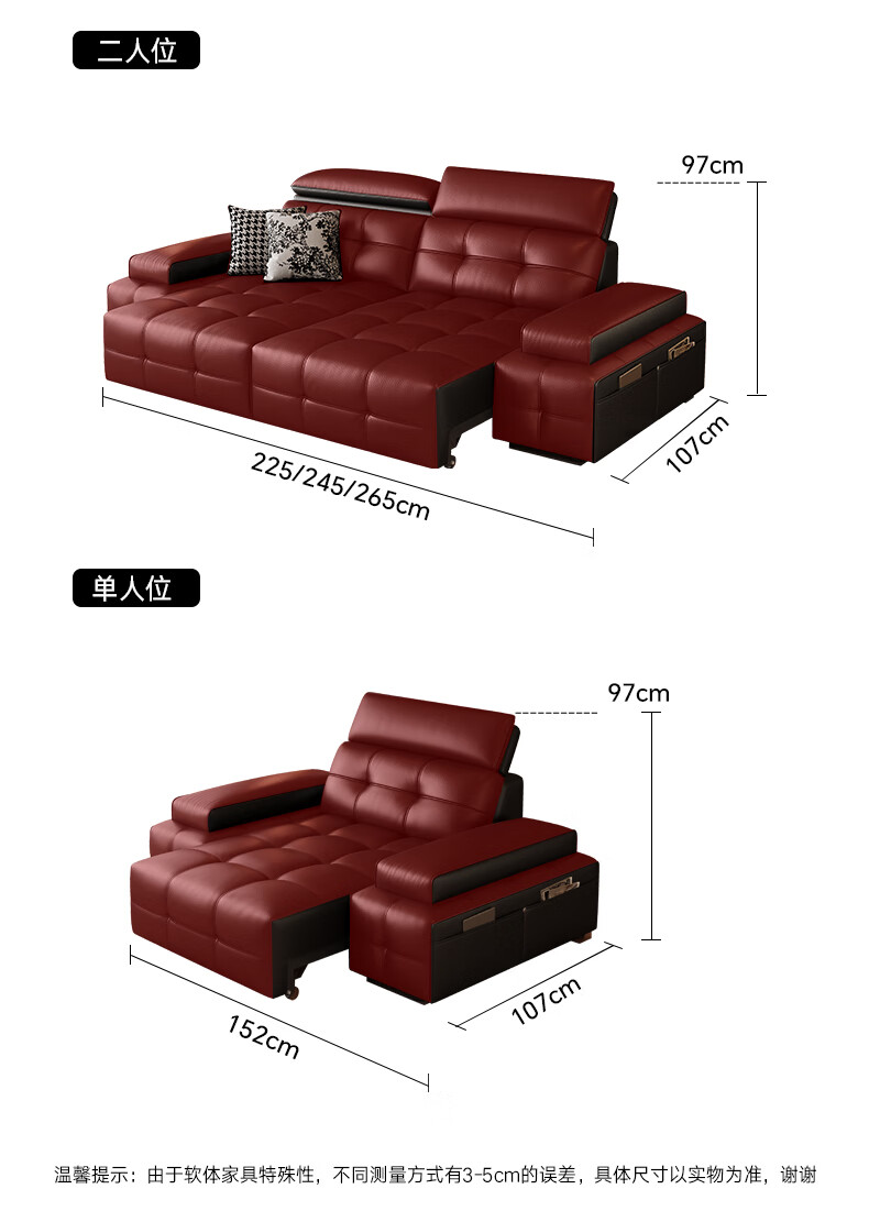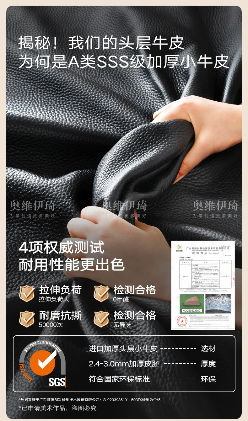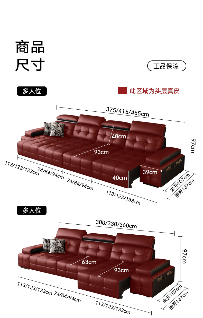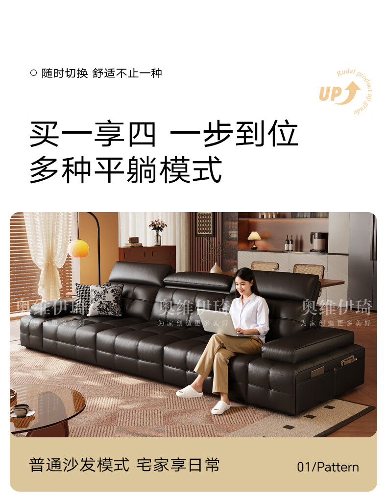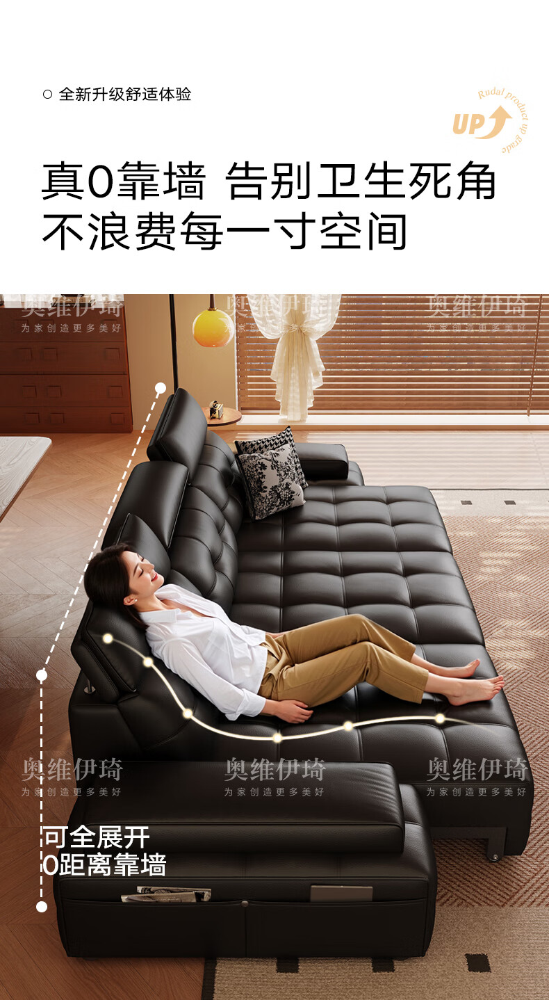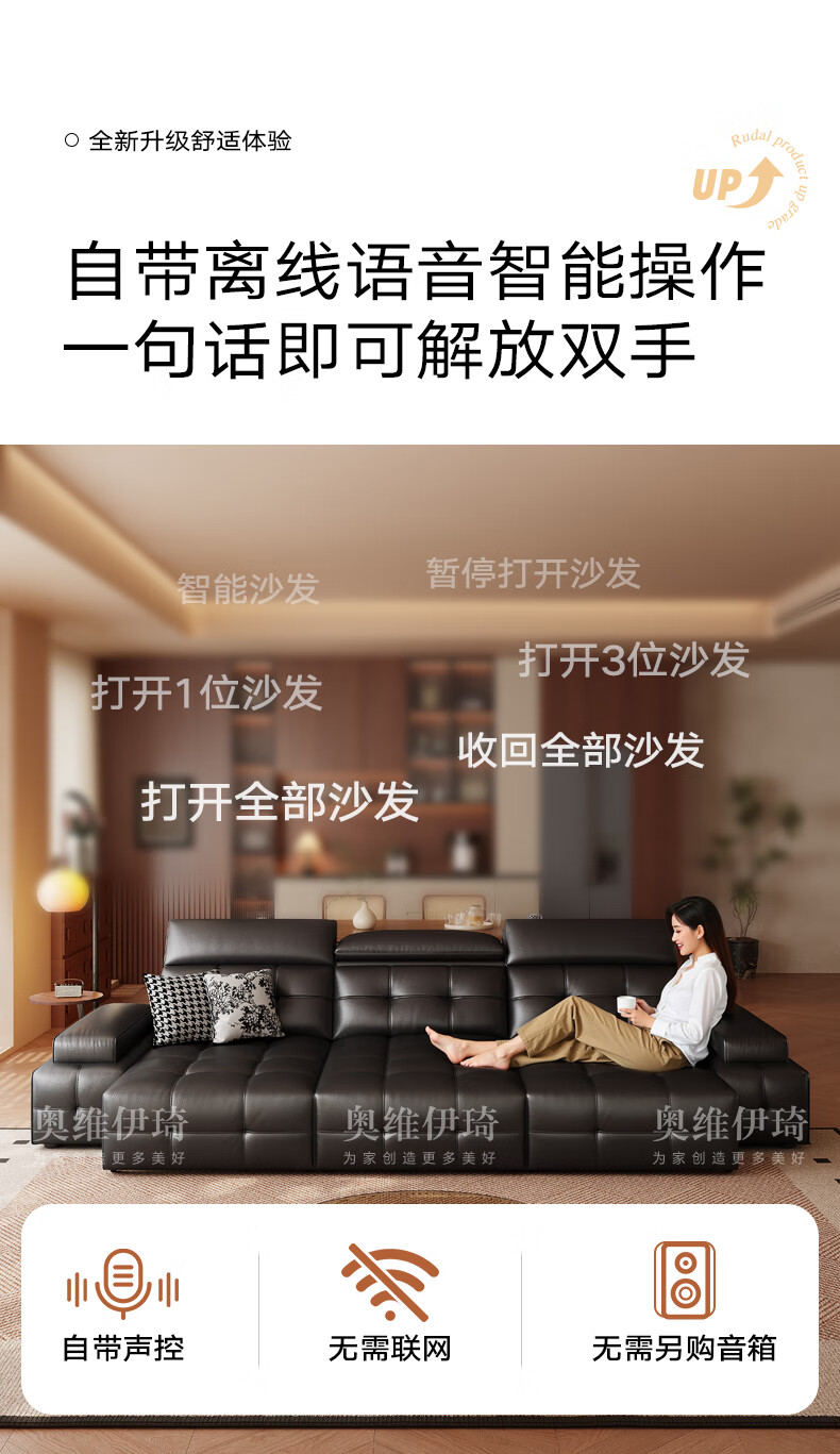 奥维伊琦电动沙发功能真皮沙发智能电动真皮沙发头层牛皮客厅电动沙发床 2.35米【双人位+双电机】【全新升级框架-终身质保】 【豪华版(接触面)】2.4mm进口头层黄牛皮