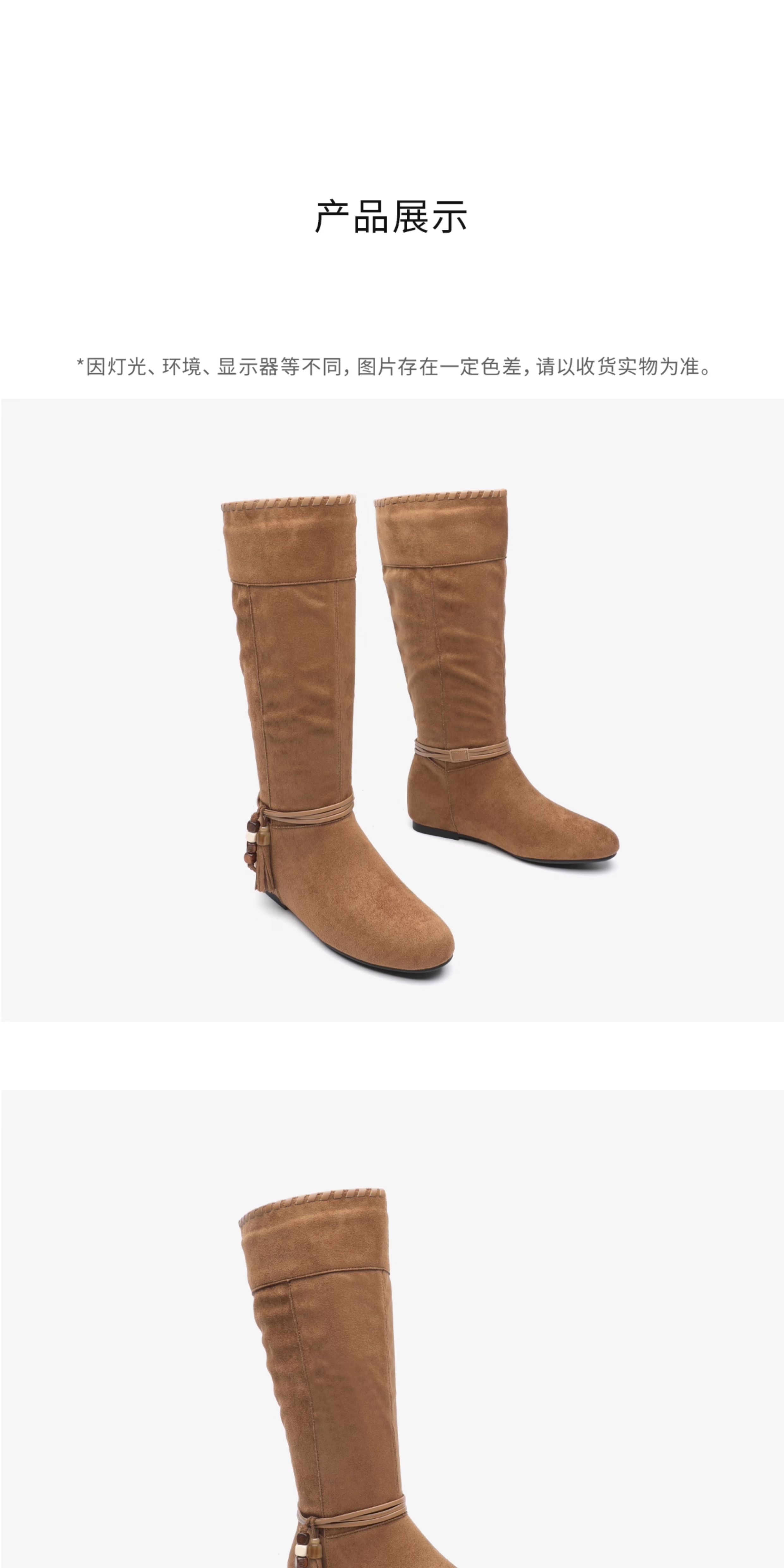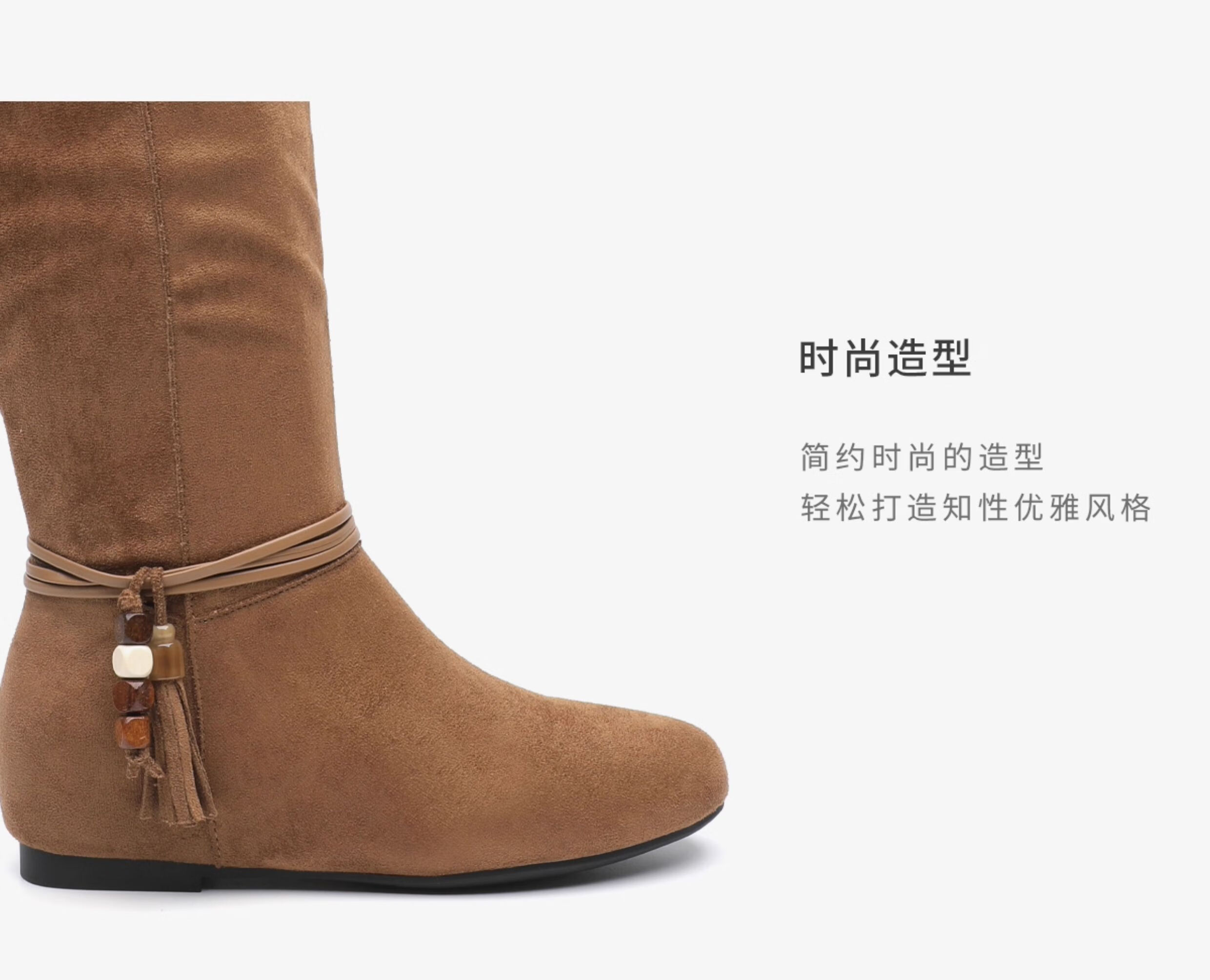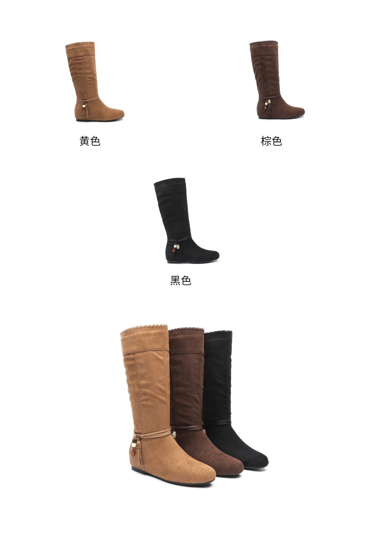 月芽儿长筒靴女2025新款秋冬季绒面长靴高筒靴靴子复古瘦瘦靴 绒里黑色01T 34