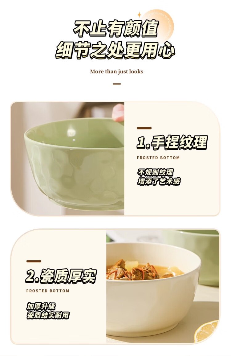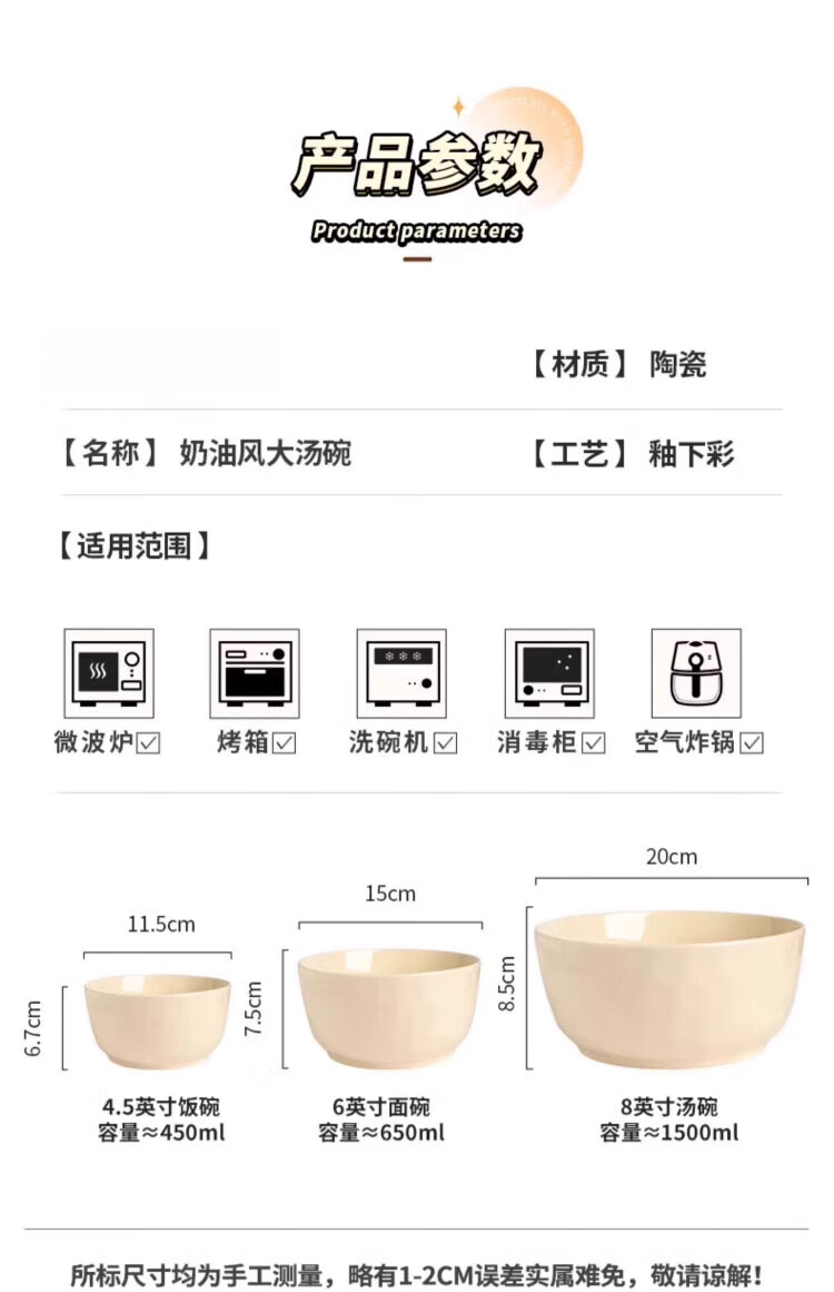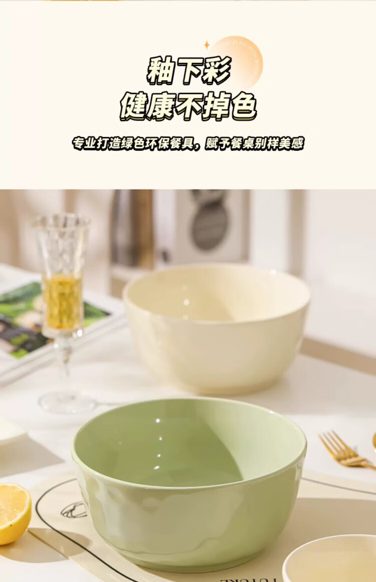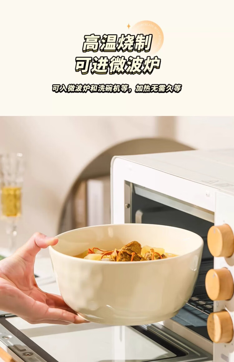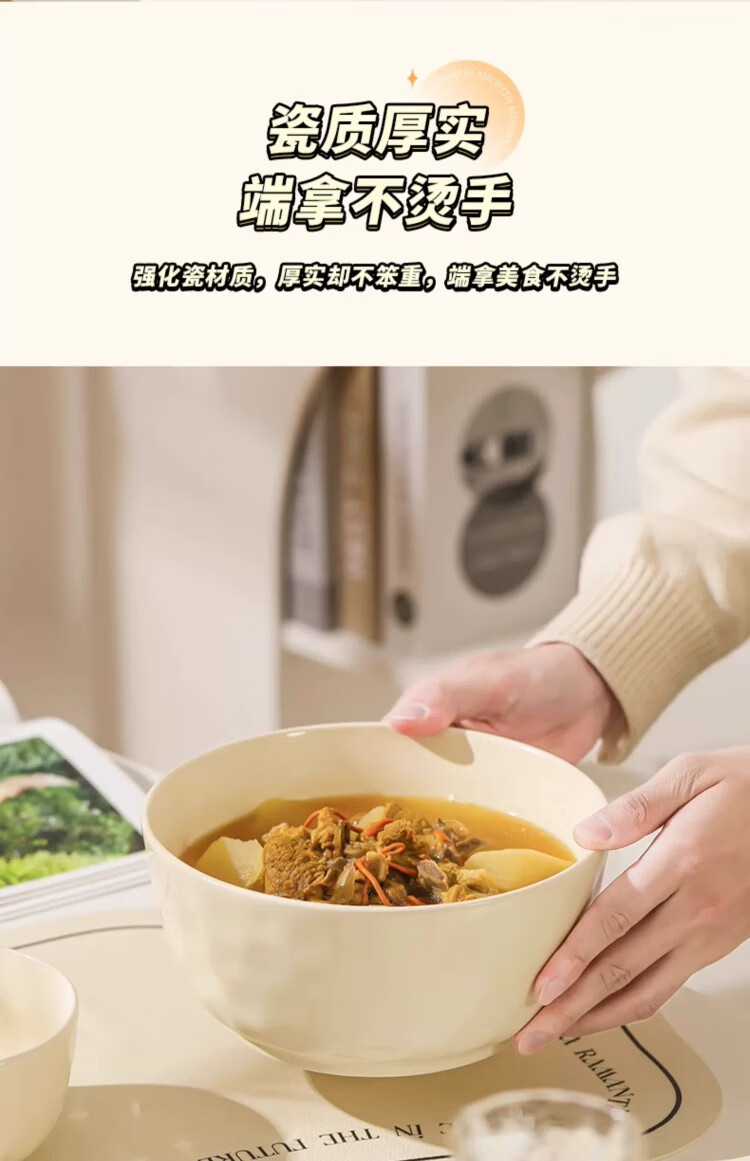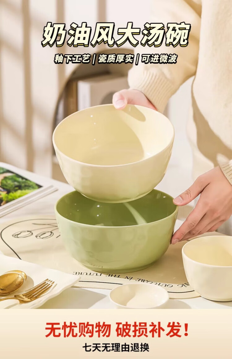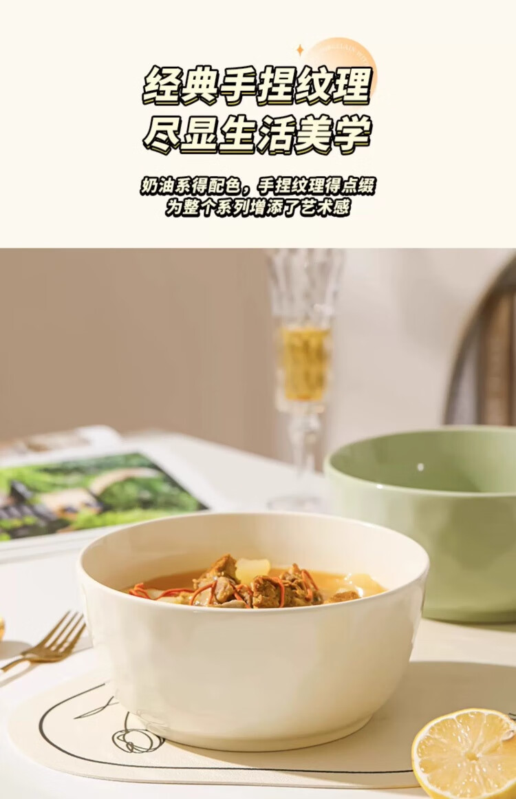 物萃2025新款感陶瓷汤碗奶油风泡面碗釉下彩好看家用汤面碗餐具 8英寸大汤碗1个(奶黄)+纯白汤勺1个
