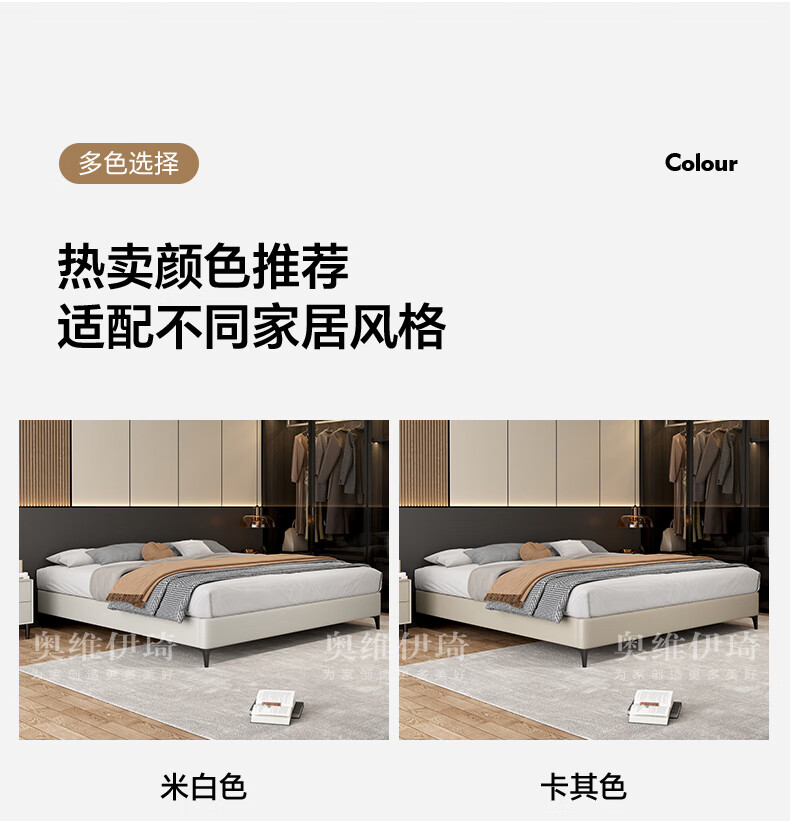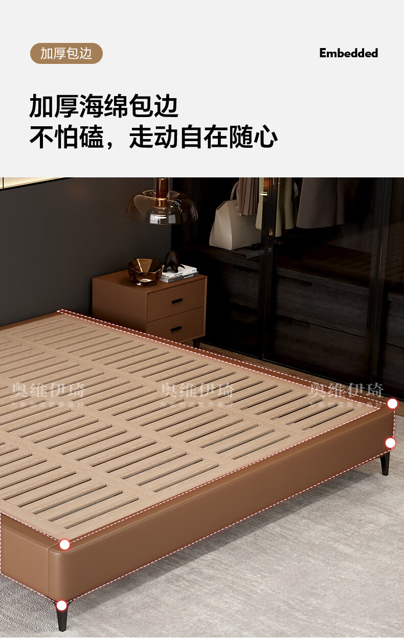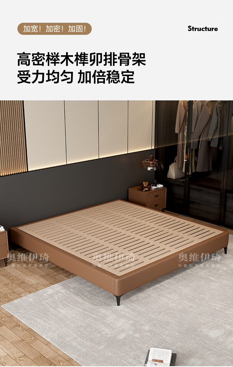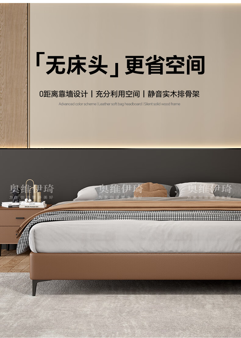 奥维伊琦2025年新款全实木储物皮艺床真皮床主卧大床双人床婚床无床头 (豪华版)头层牛皮单床 1.5米*2.0米【框架款】