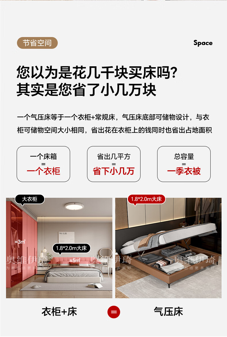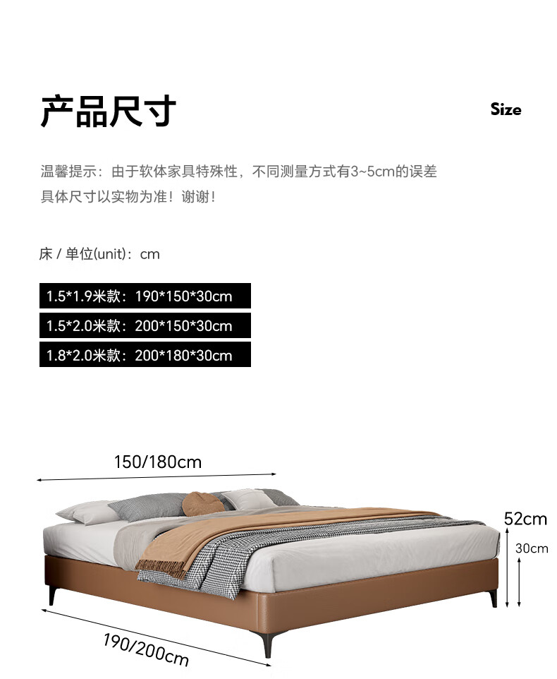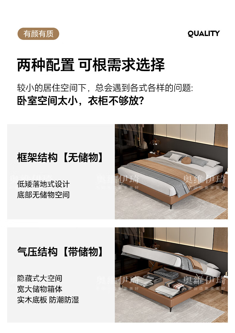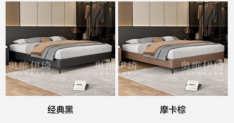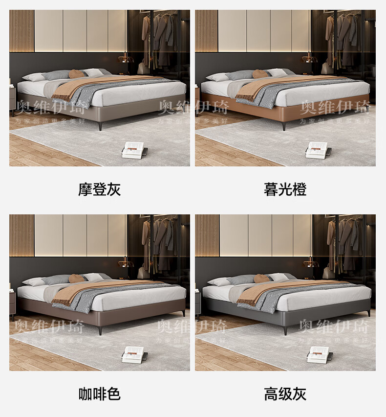 奥维伊琦2025年新款全实木储物皮艺床真皮床主卧大床双人床婚床无床头 (豪华版)头层牛皮单床 1.5米*2.0米【框架款】