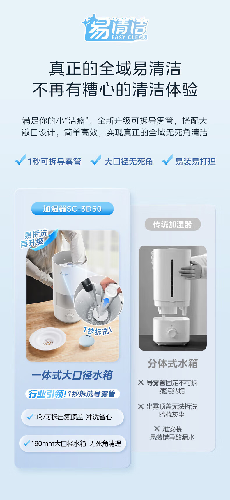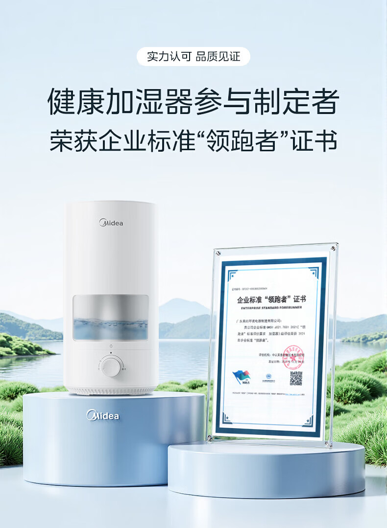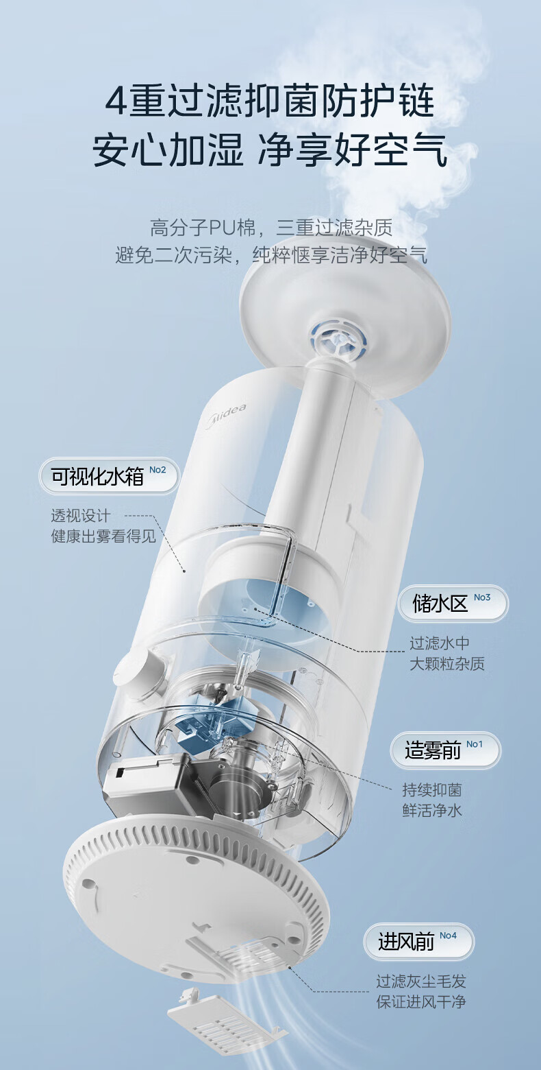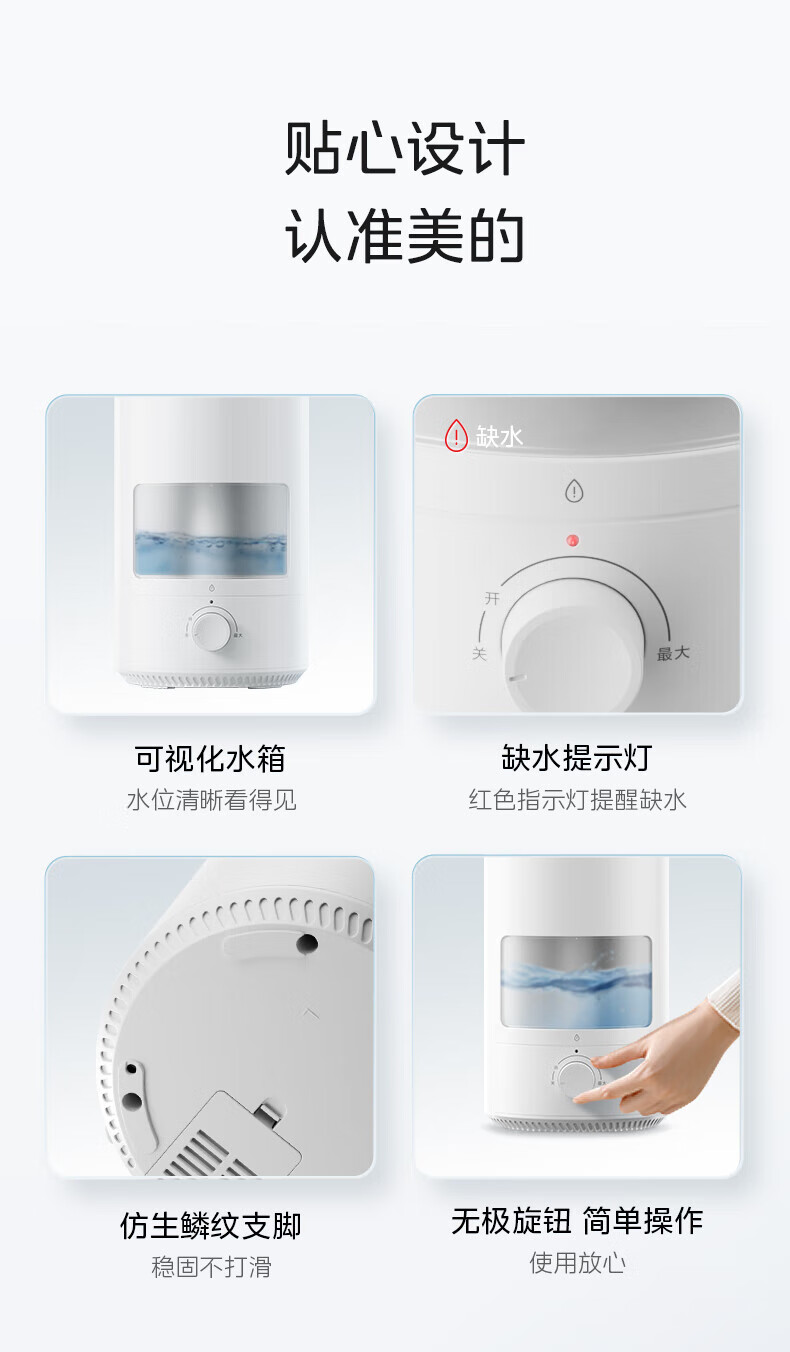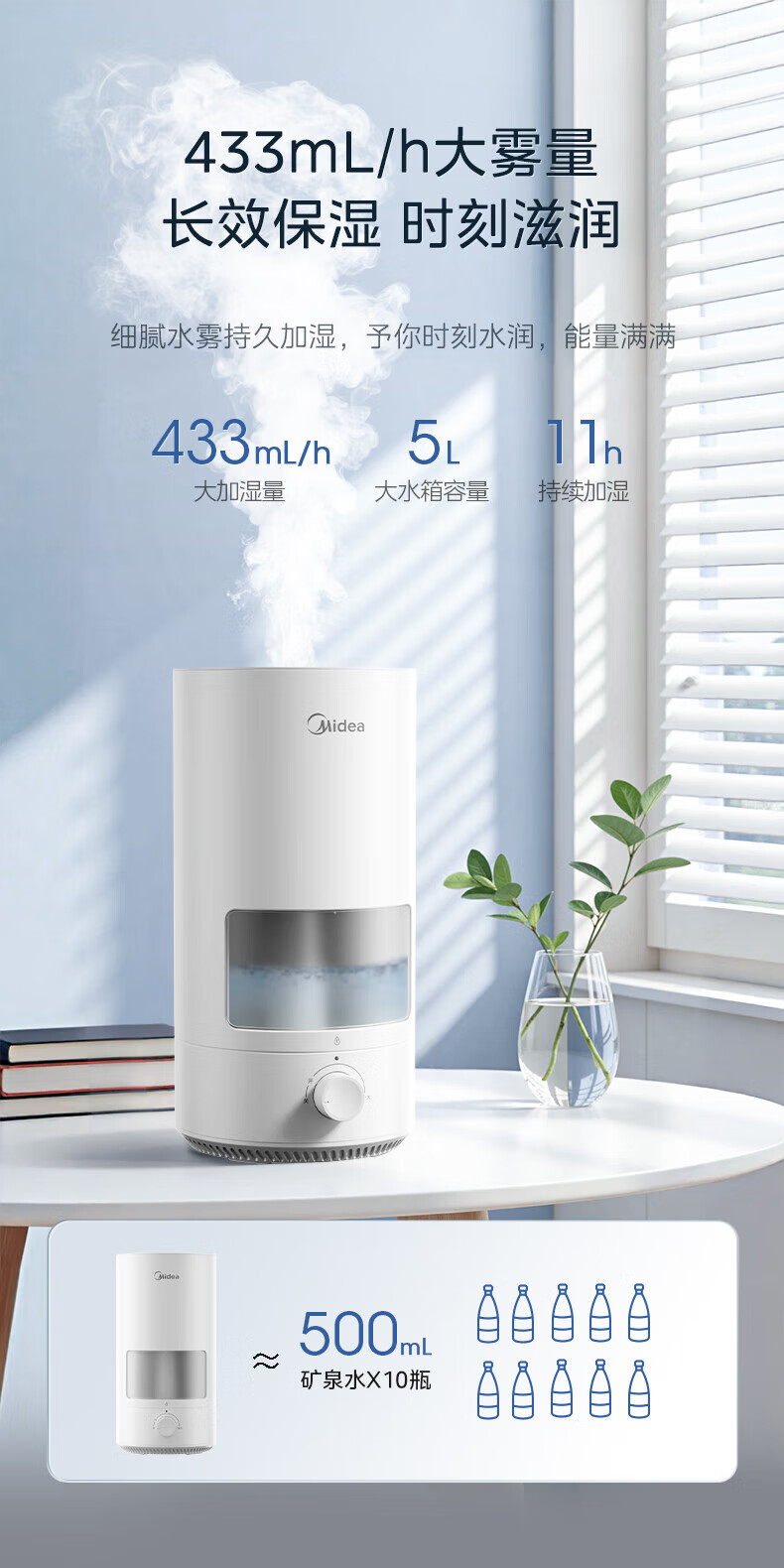 美的(Midea)空气加湿器大雾量家用空调伴侣卧室补水仪小型净化除菌喷雾器宿舍实用超声波雾化器 礼物SC-3D50 【锌离子抗菌】