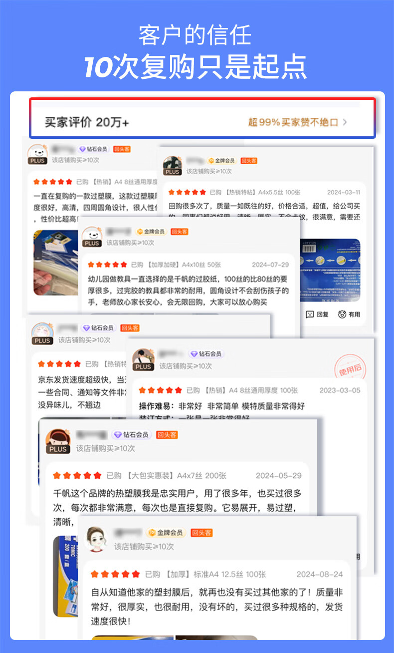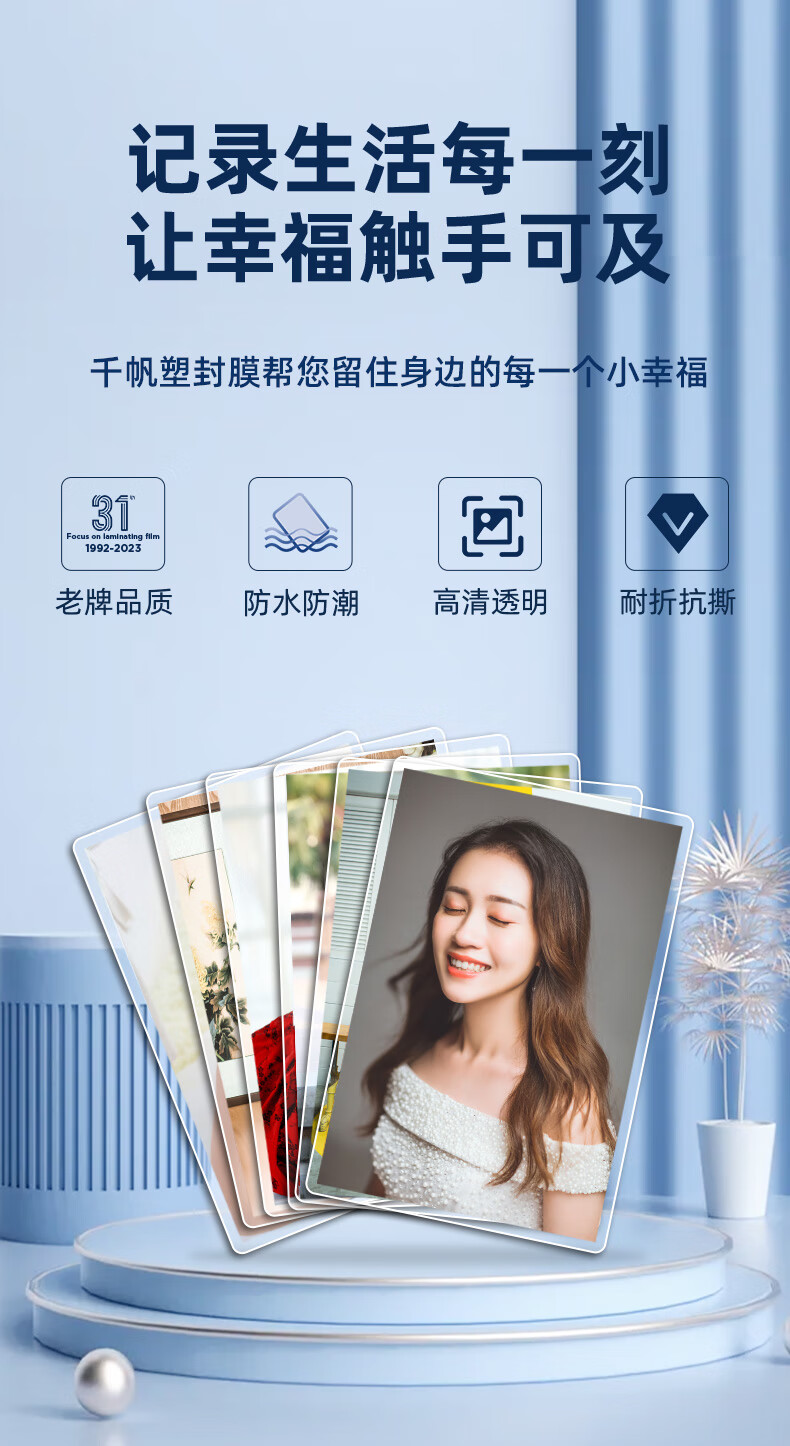 千帆(SAILS)塑封膜A4 7丝塑封机过塑膜高清塑封纸过塑纸过塑机过胶膜 照片文件护卡膜a4 220x305mm 100张