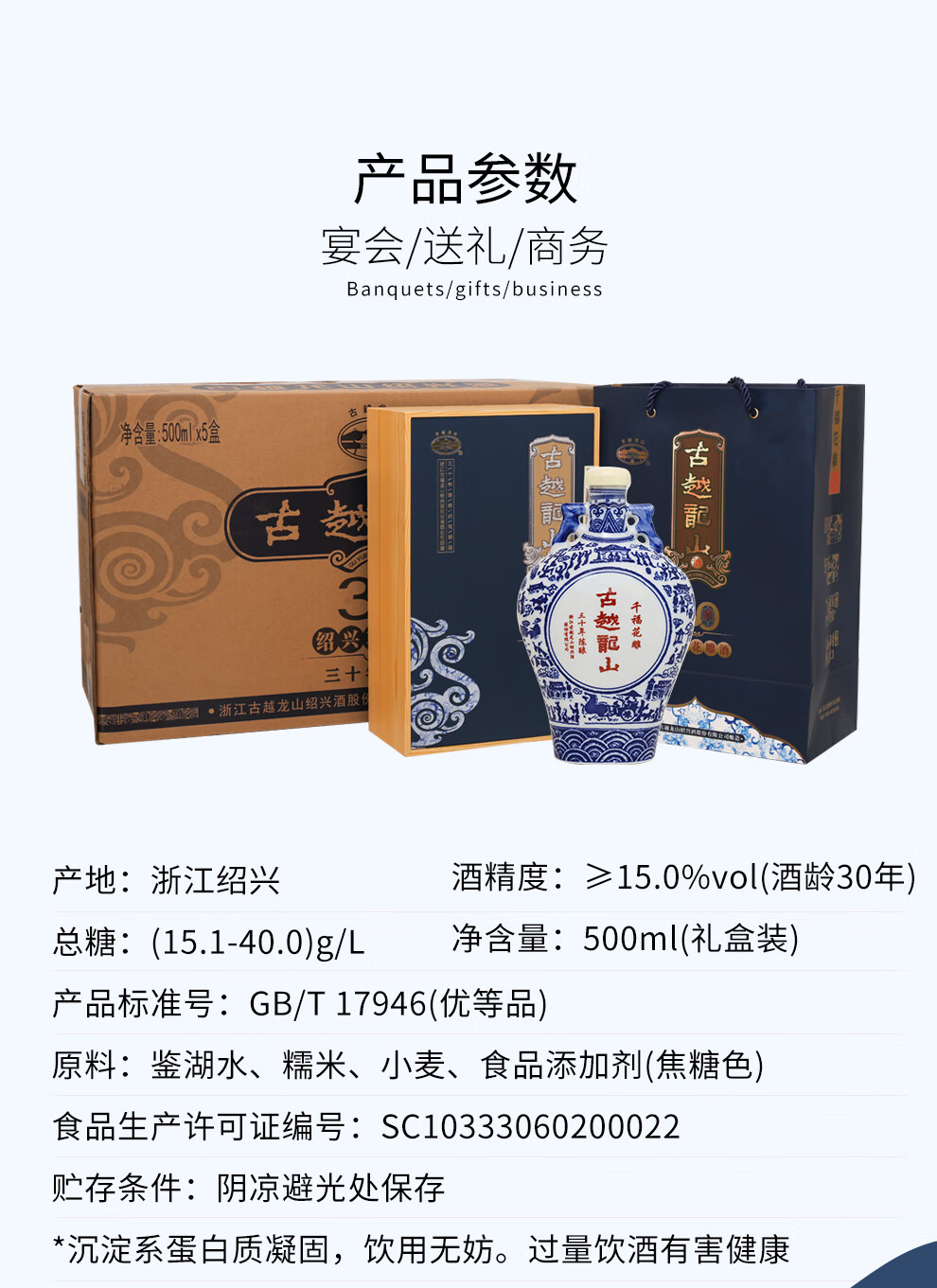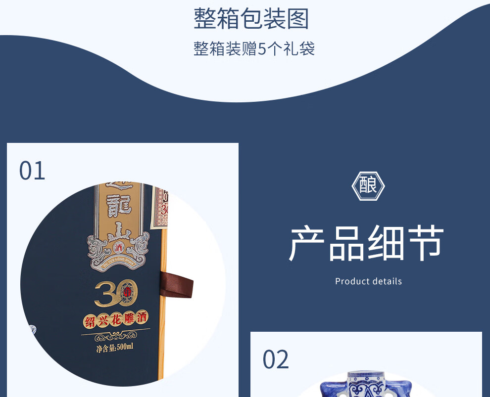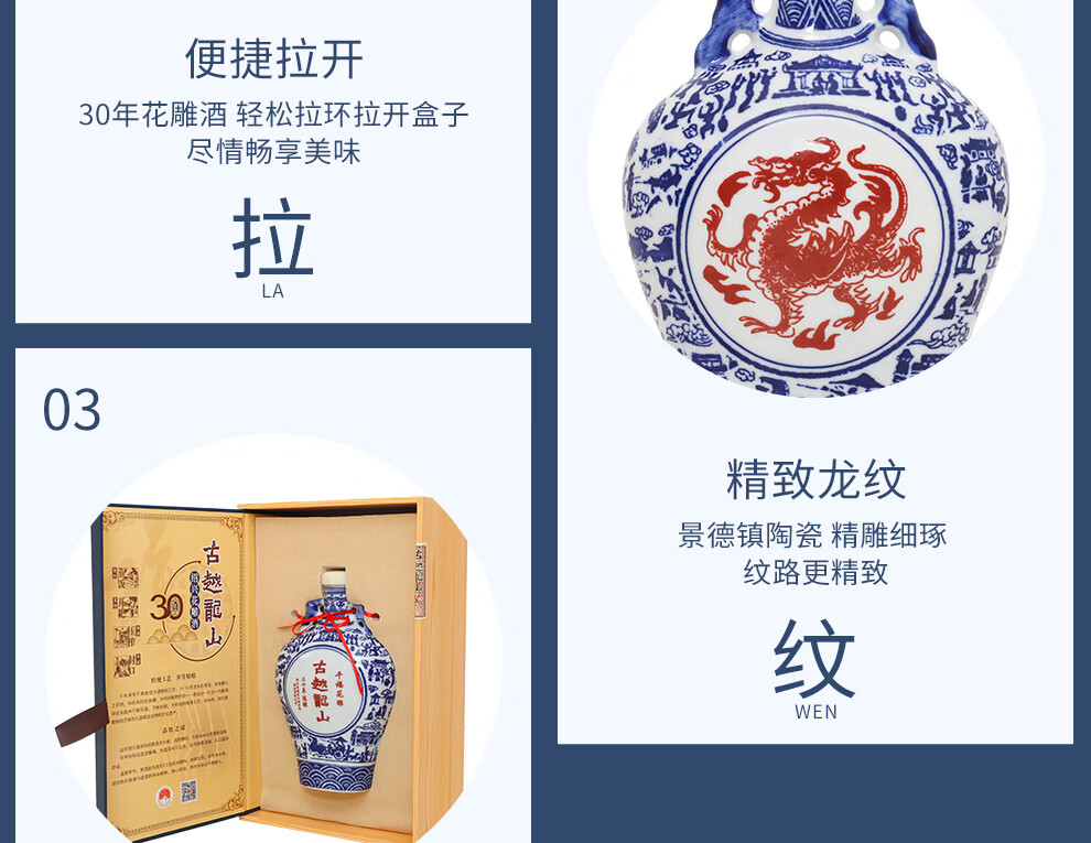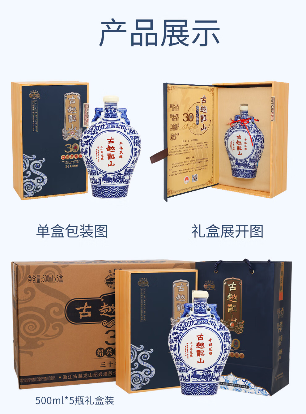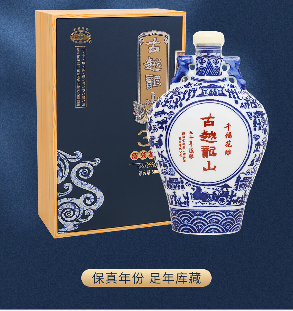古越龙山正宗绍兴黄酒 30年花雕酒半干型 千福三十年陈高档礼盒装 500mL 1瓶 礼盒装