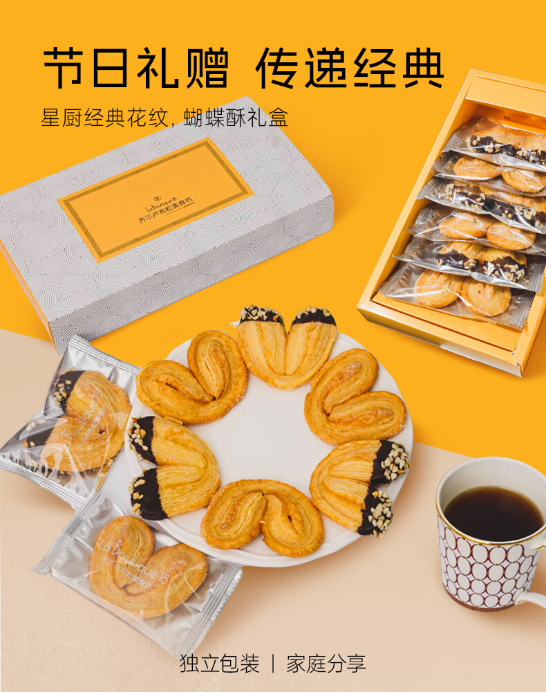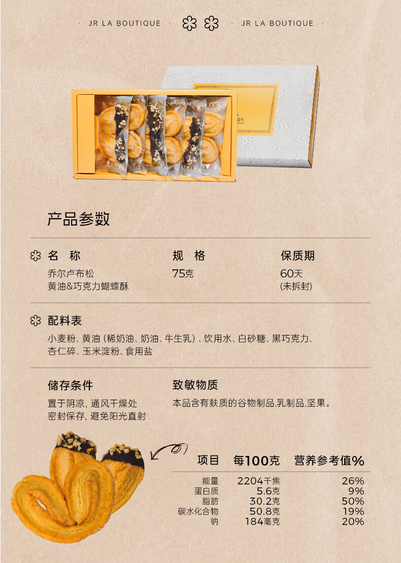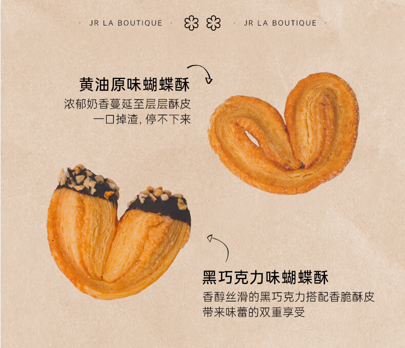 乔尔卢布松美食坊JR乔尔卢布松蝴蝶酥上海外滩18号米其林糕点黄油巧克力千层酥礼盒 黄油巧克力蝴蝶酥【75g*2盒】