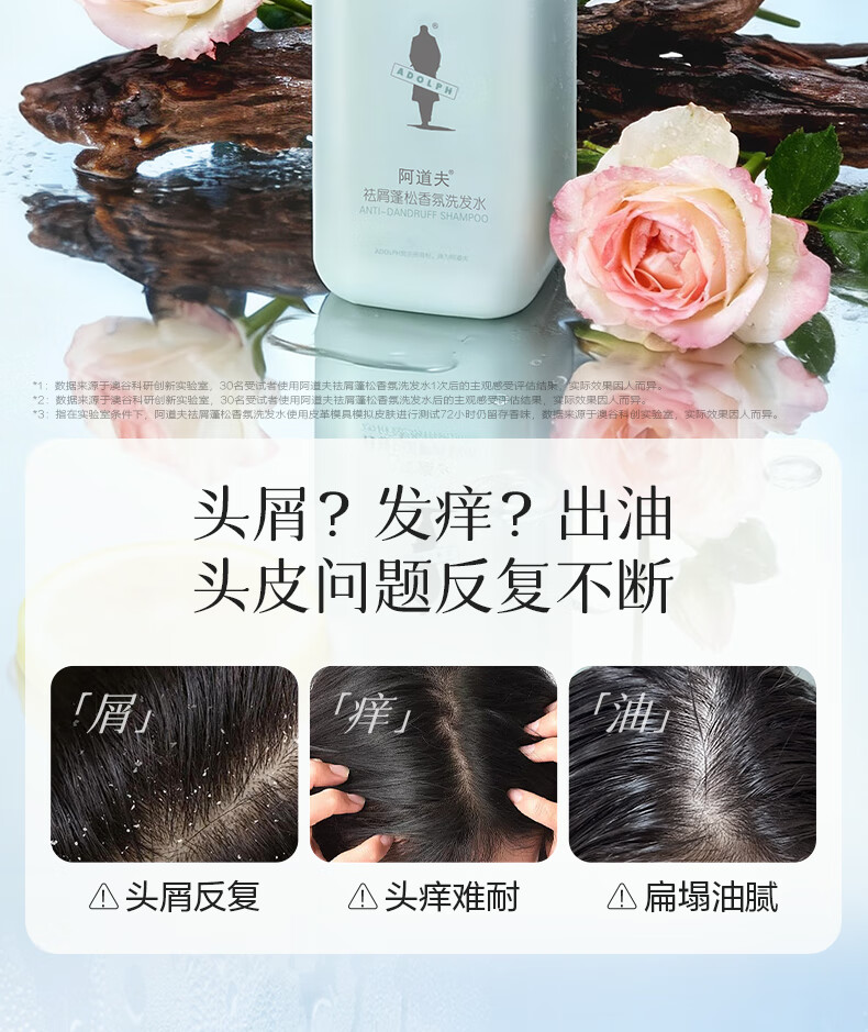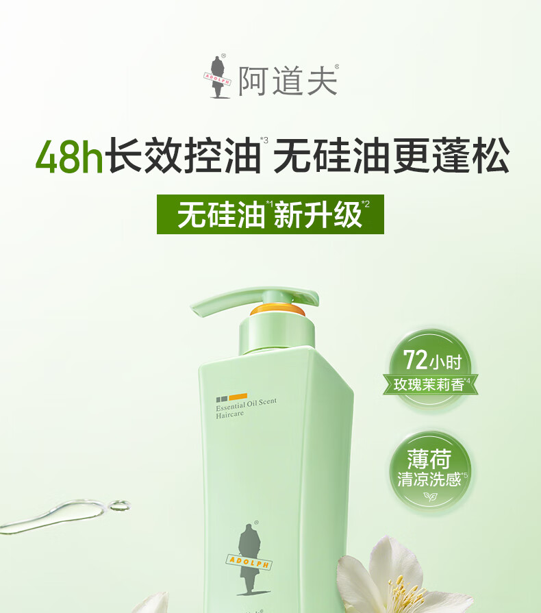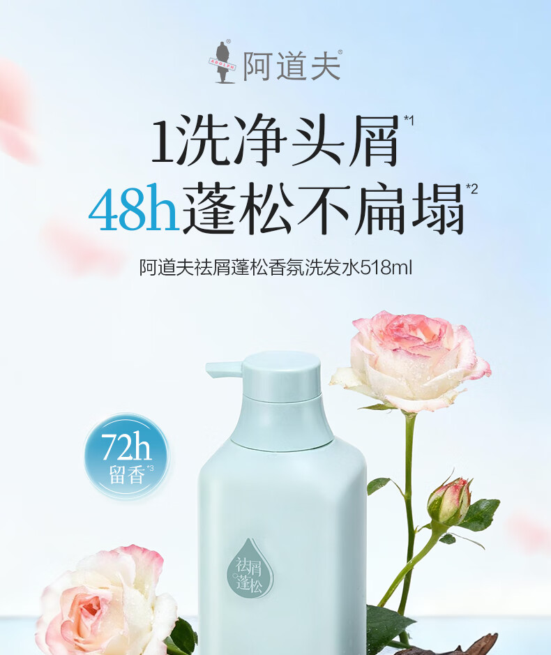 阿道夫香氛洗发水套装 控油去屑洗发露清爽蓬松柔顺留香洗头膏男女士 祛屑蓬松洗发518ml+无硅油洗发500ml
