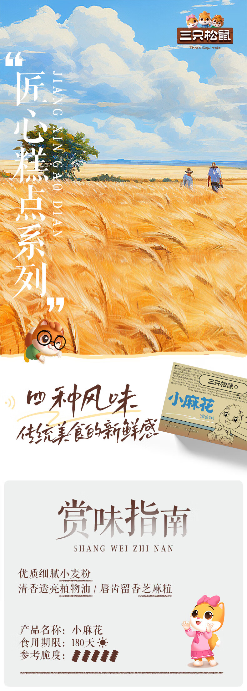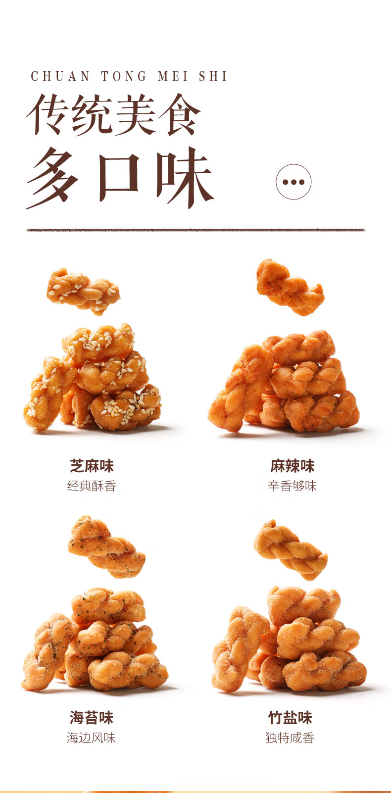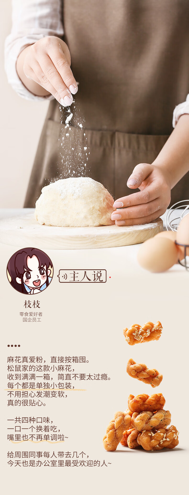 三只松鼠混合口味小麻花500g箱装芝麻麻辣海苔竹盐中式糕点点心下午茶酥脆