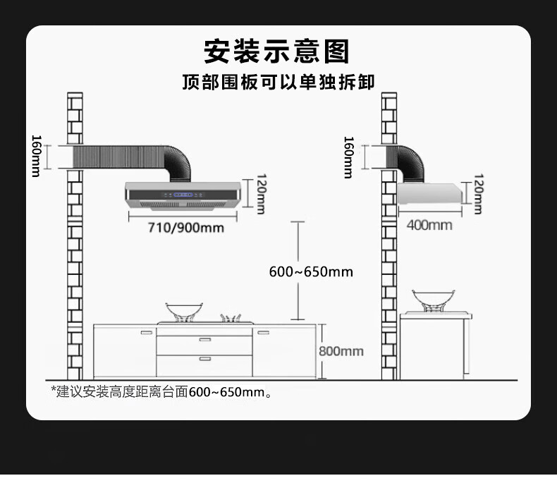 TOYODENKI日本東洋有限公司家用超薄油烟机顶吸式710/900mm双电机不锈钢小尺寸油烟机 【基础低配标准款】710-四位按键款 上门安装