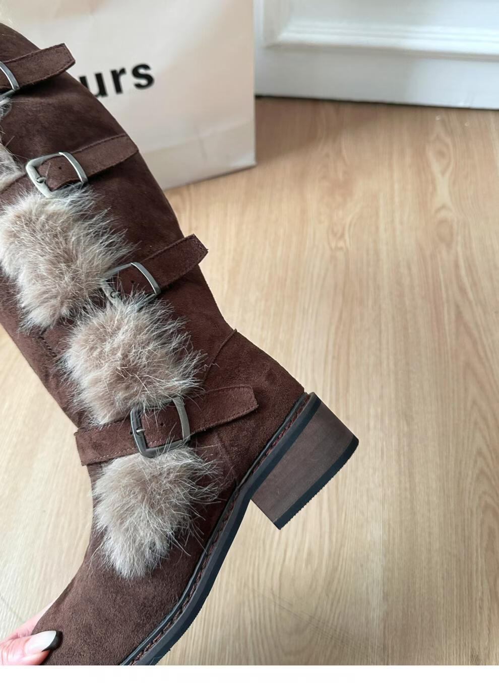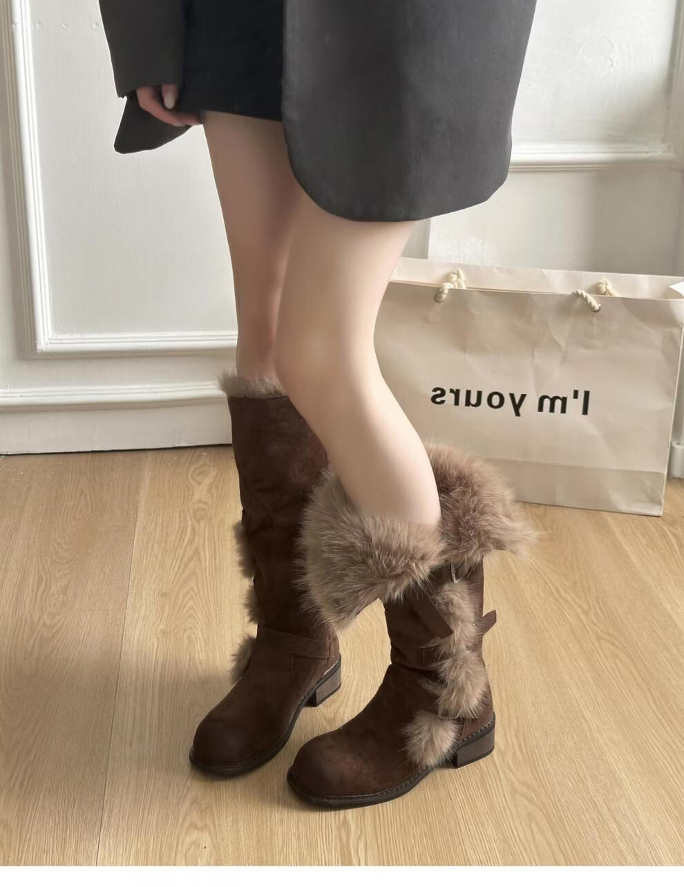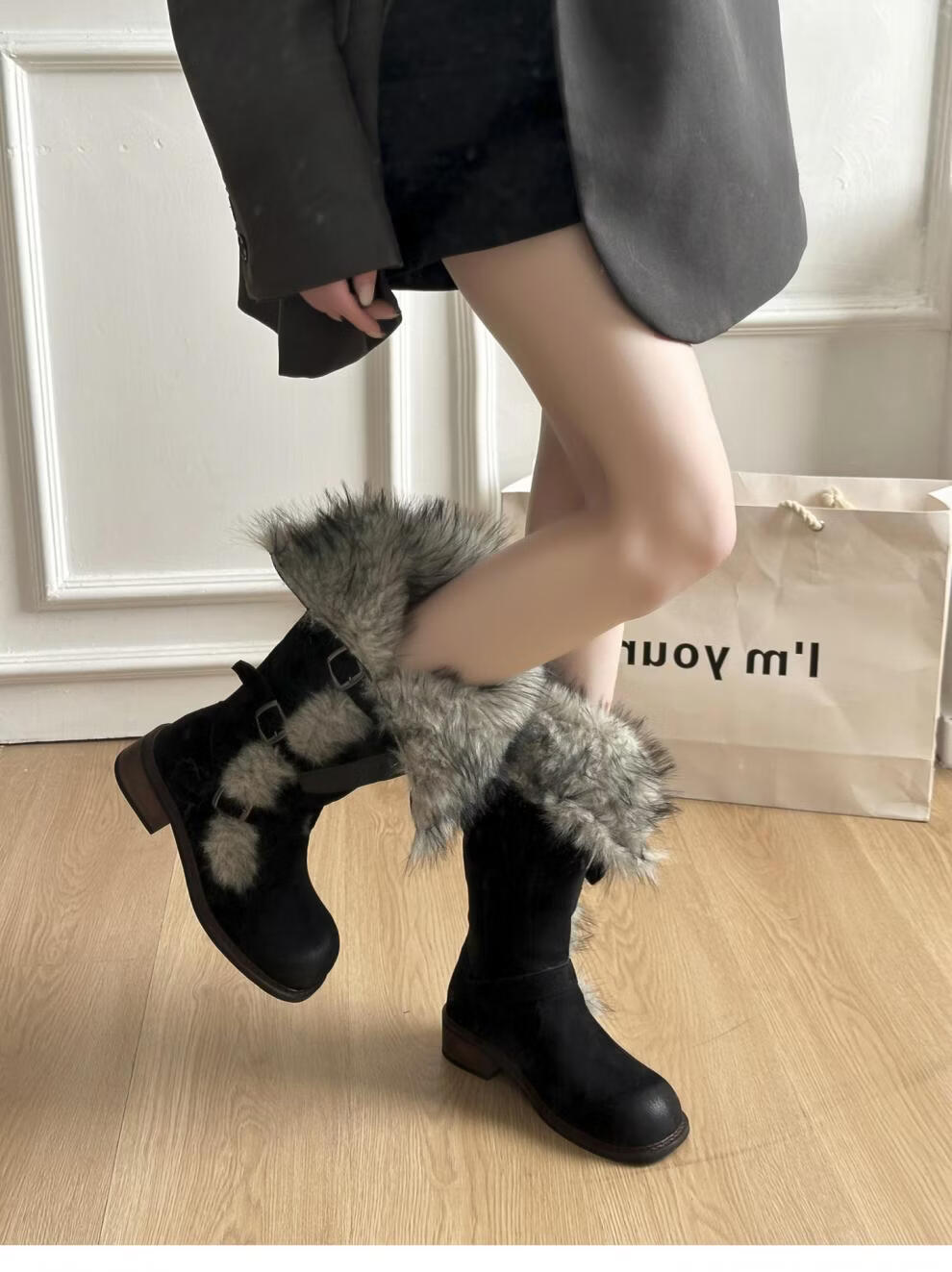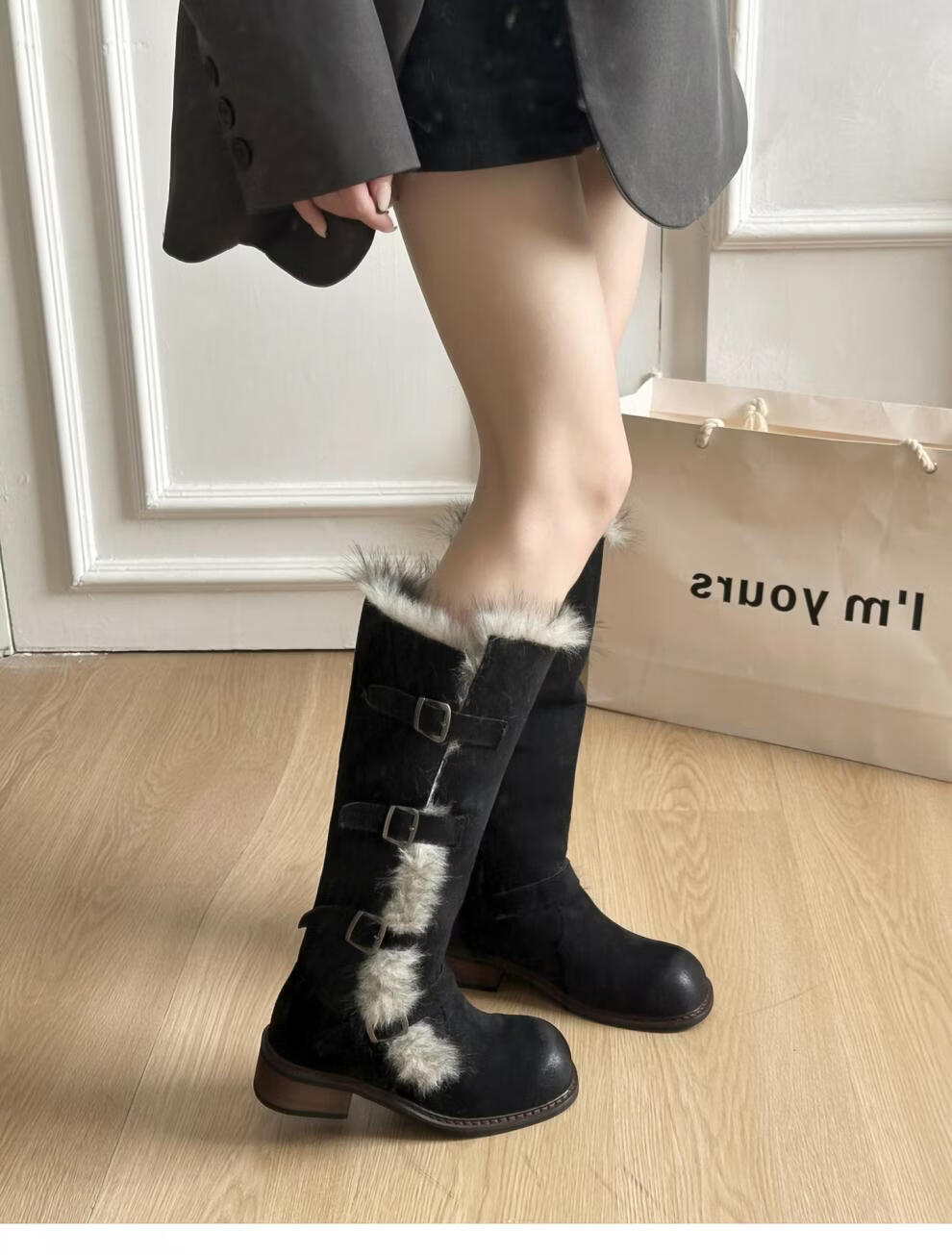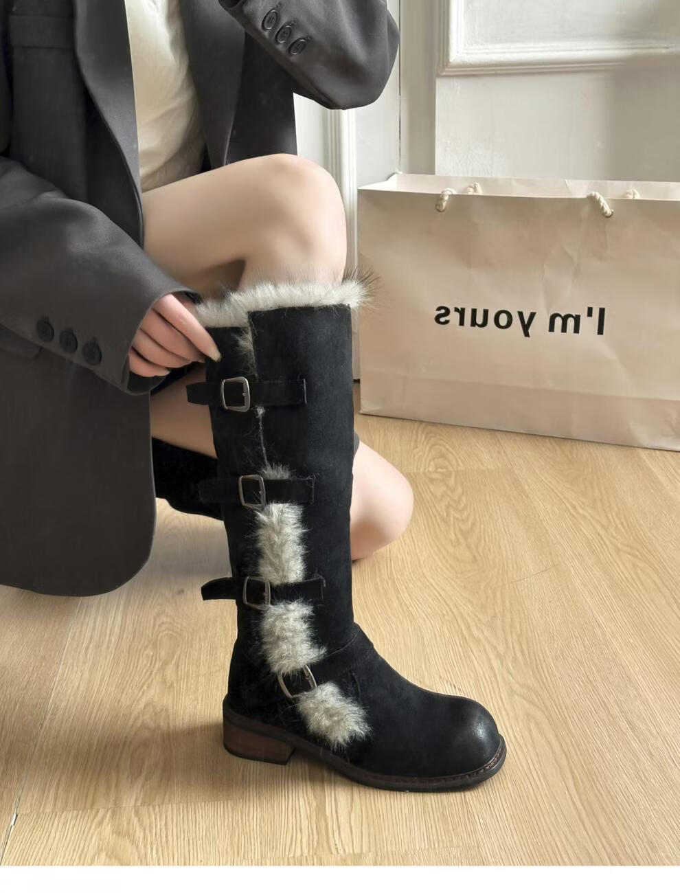 稻草人(MEXICAN)翻毛口雪地靴女长靴2026冬季新款俄式高筒皮带扣加厚绒保暖棉鞋子 焦糖色 【普通版】 35