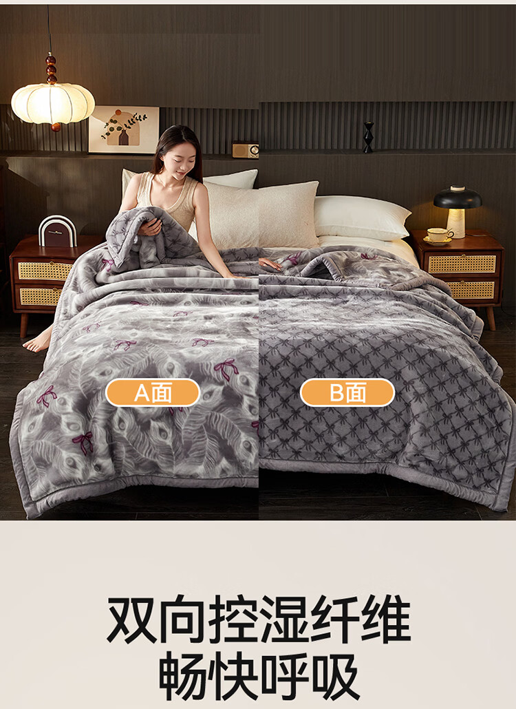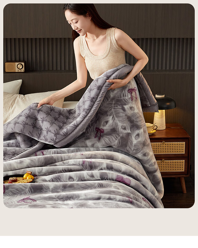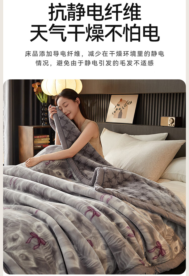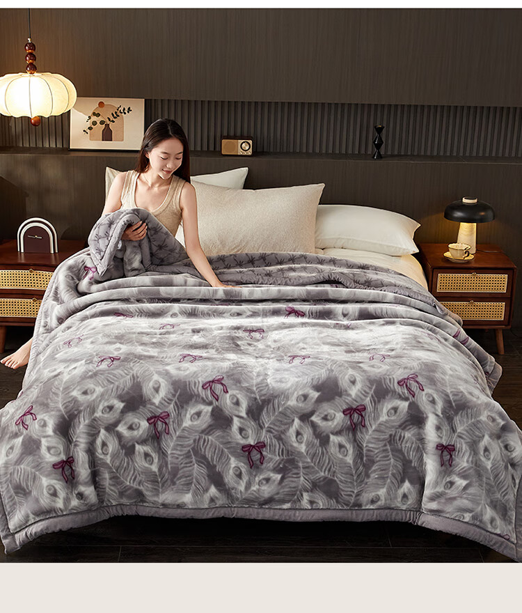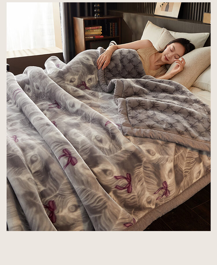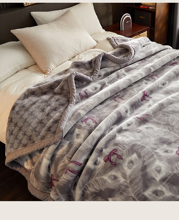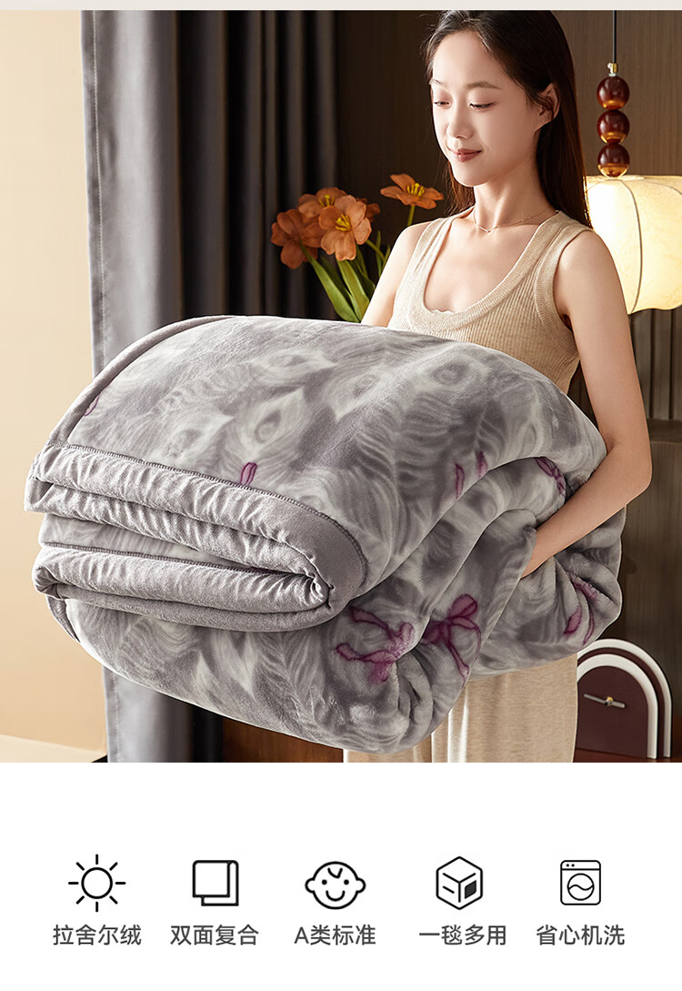 红蜻蜓(RED DRAGONFLY)拉舍尔毛毯冬季加厚加绒毛毯被子冬天180x200cm家用单双人盖毯 拉舍尔-花影恋灰【三层加厚 更暖】 180x220cm-约6斤【支持机洗 更柔更软】