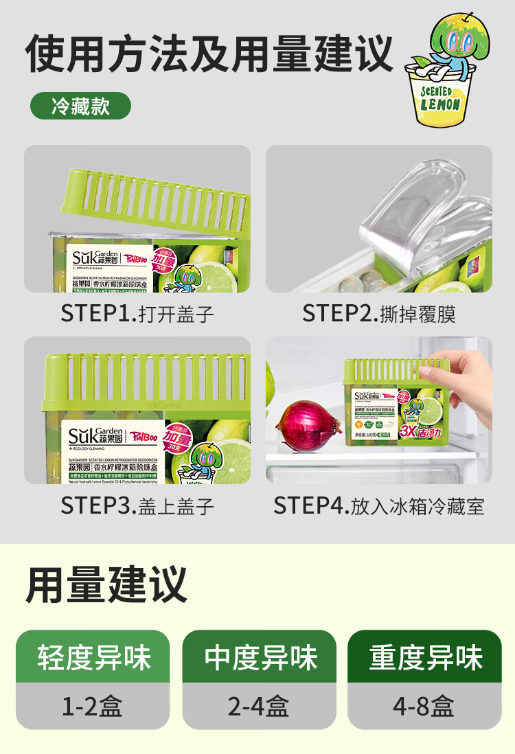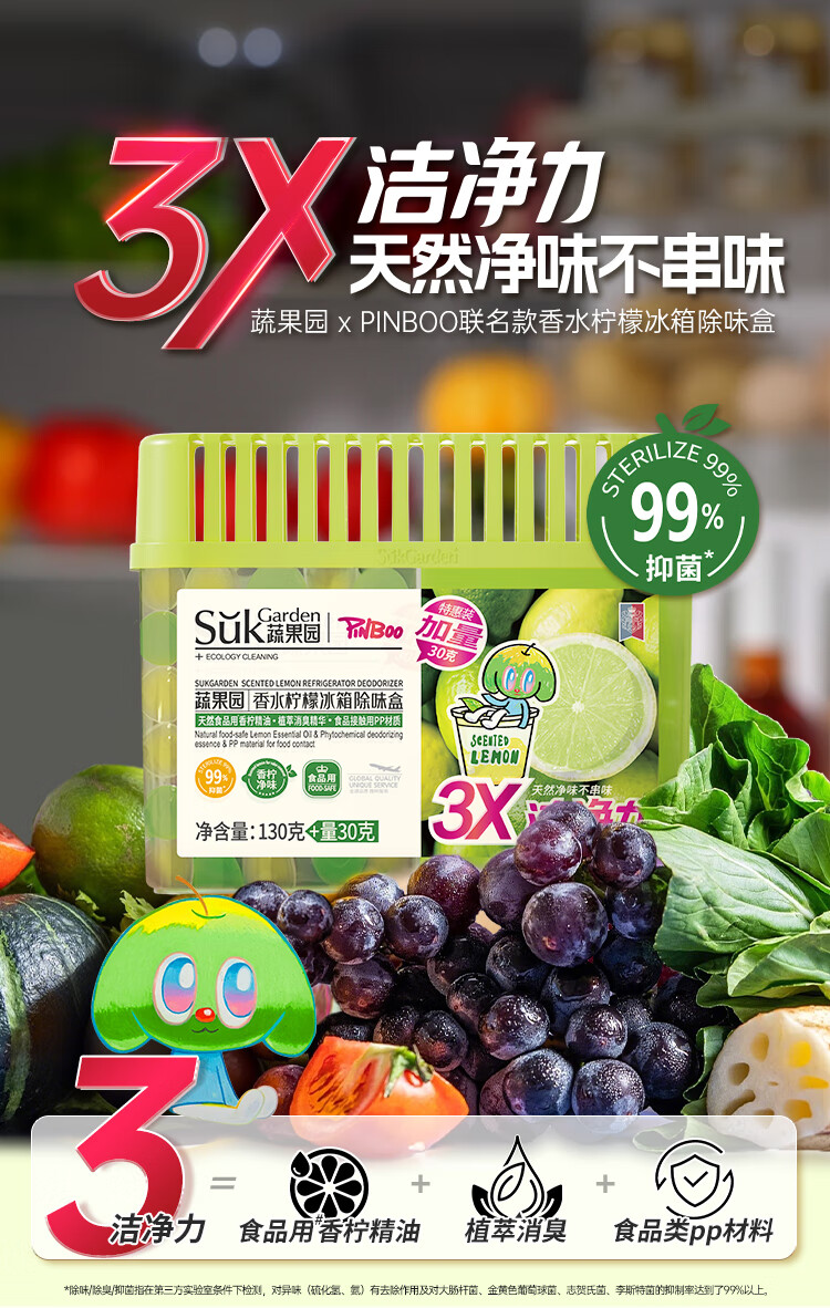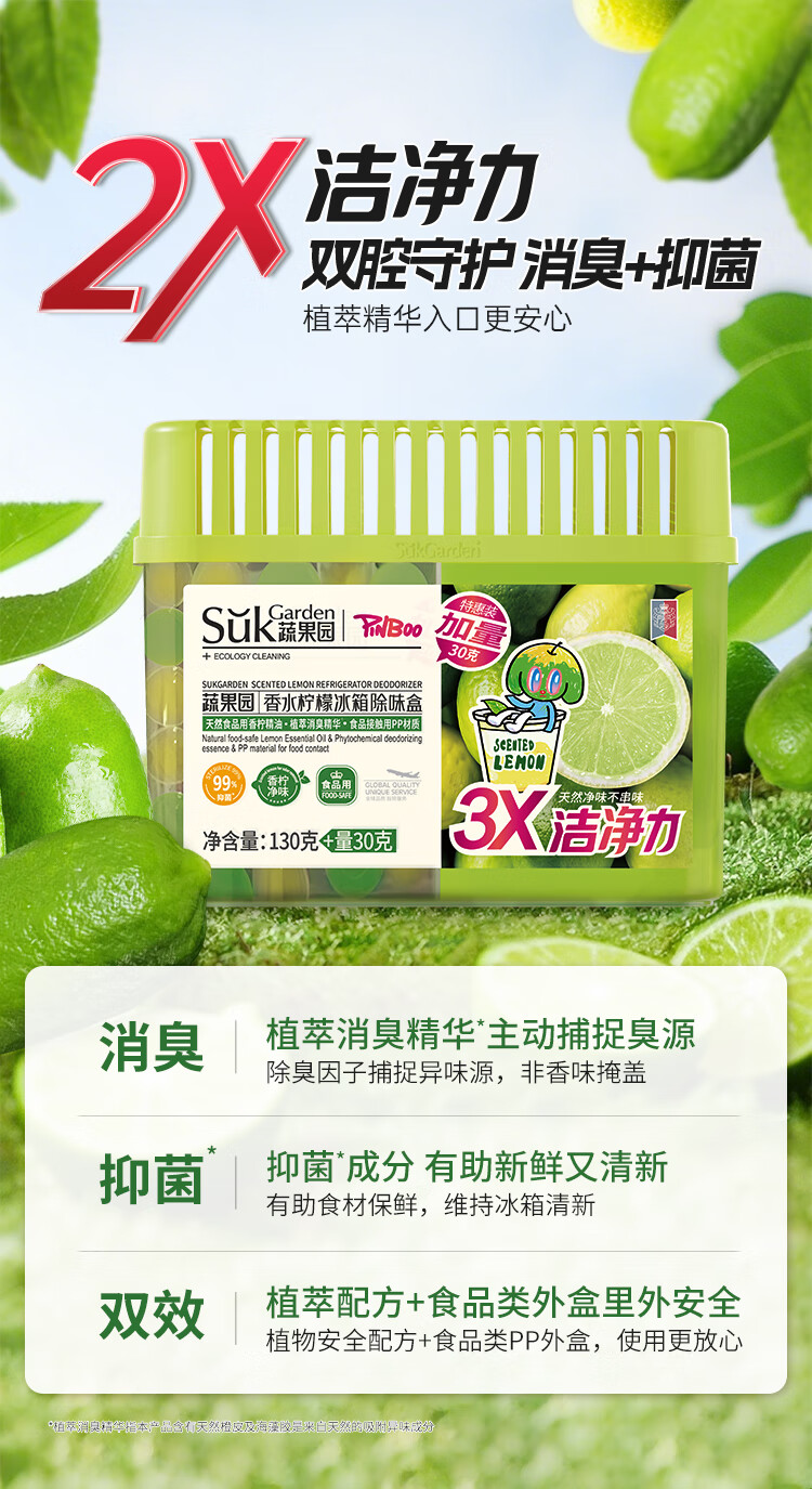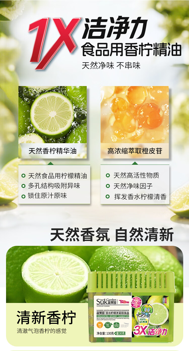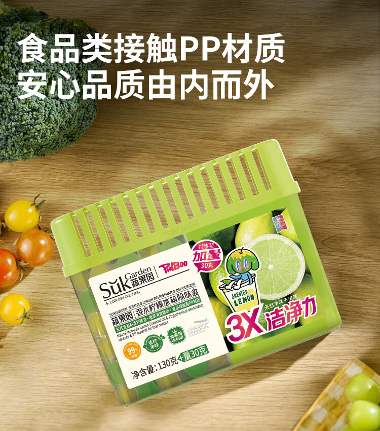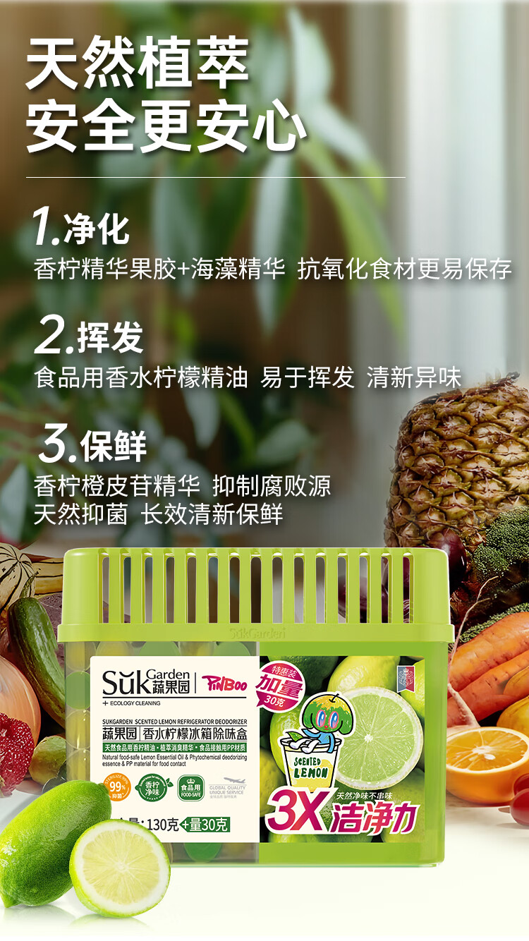 蔬果园香水柠檬冰箱除味盒抑菌清洁除味剂植萃除臭剂160g/盒