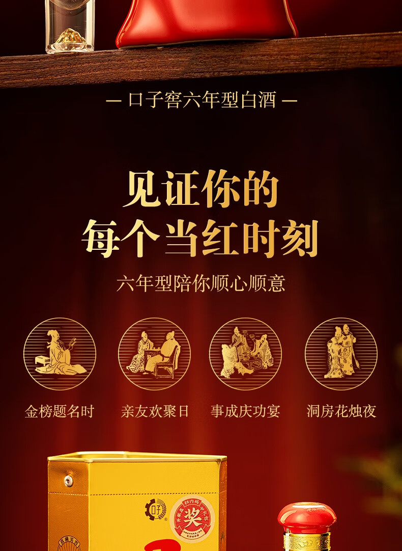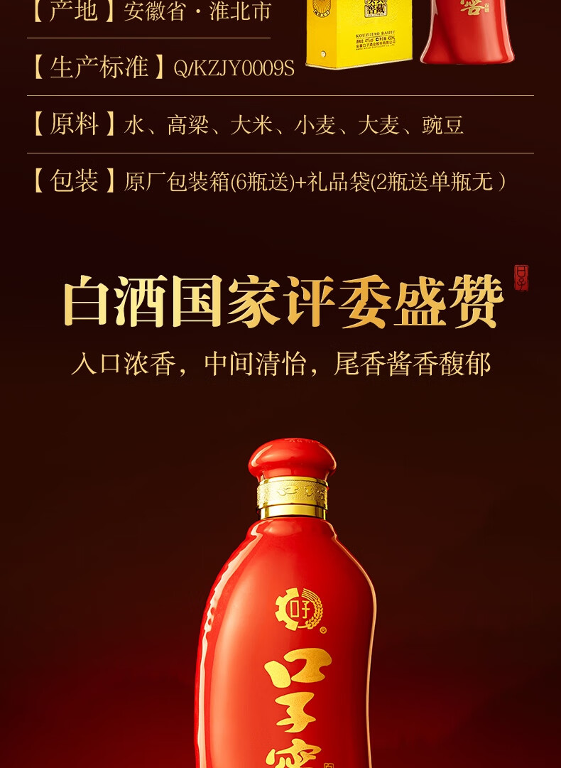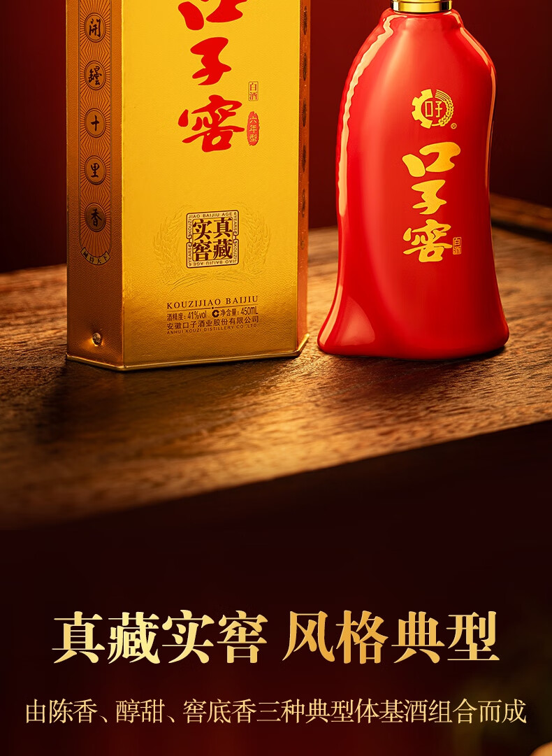 口子窖 六年型 兼香型白酒 41度 450ml*6瓶 整箱装 婚庆喜宴 年货送礼