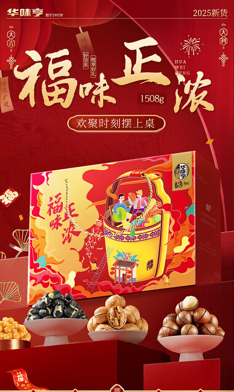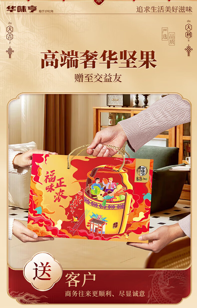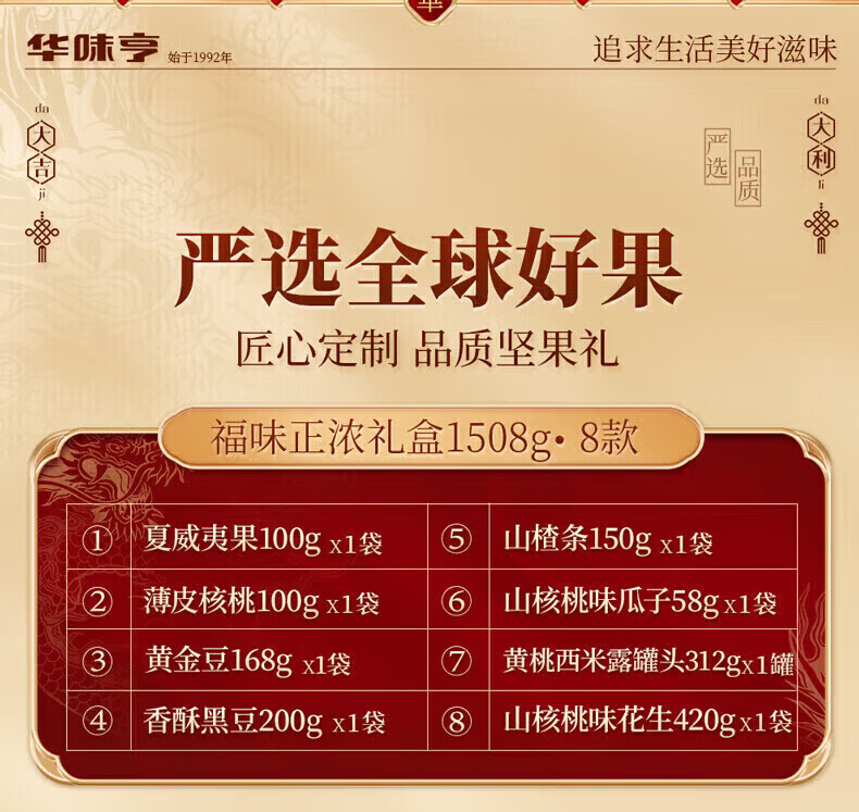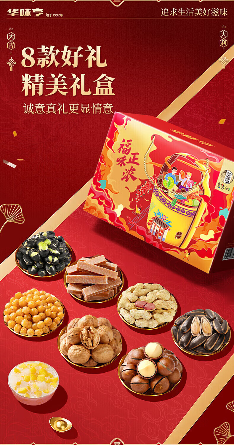 华味亨坚果礼盒1508g/8款 团购送礼坚果炒货夏威夷果核桃仁休闲零食F 【共8款】1508g礼盒