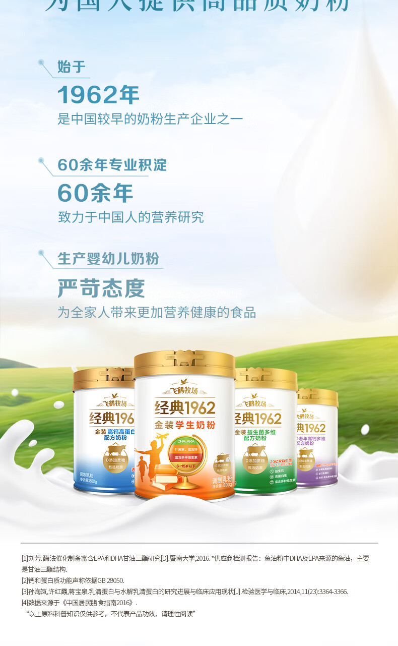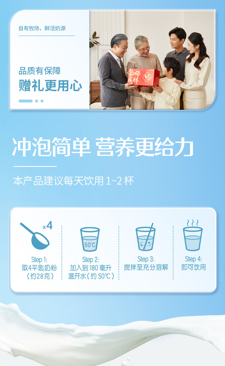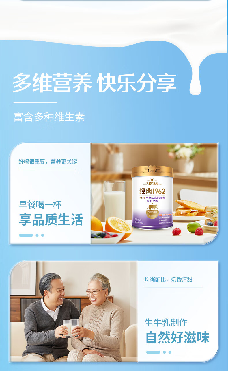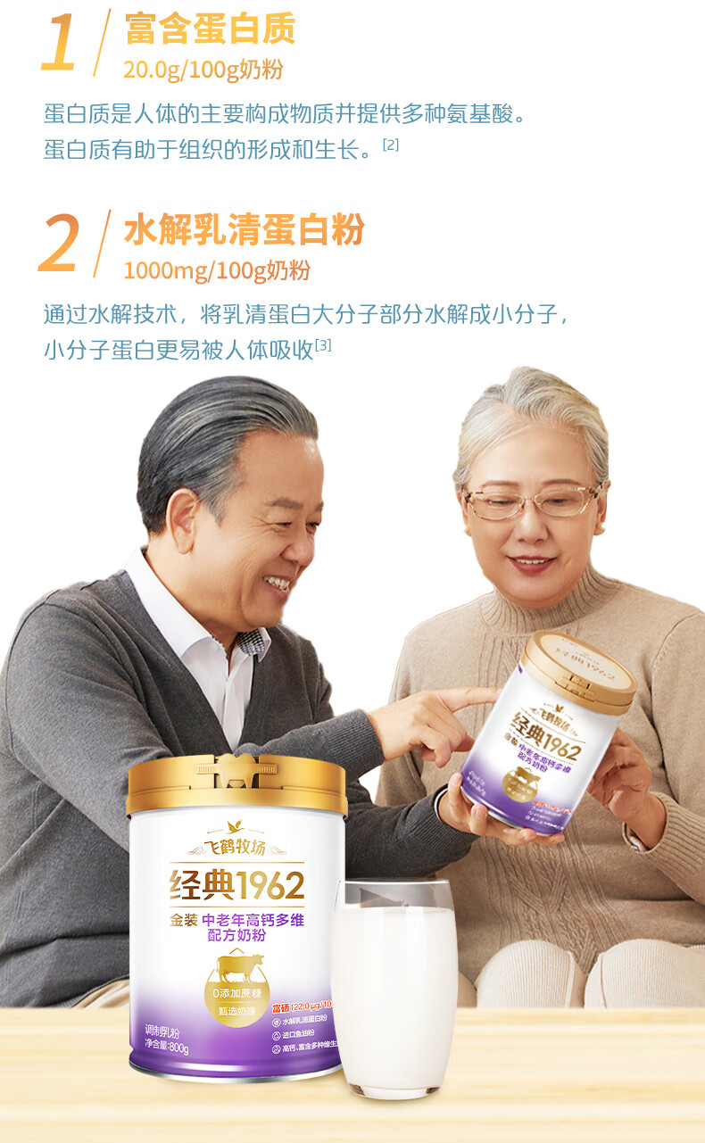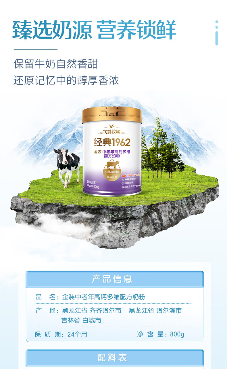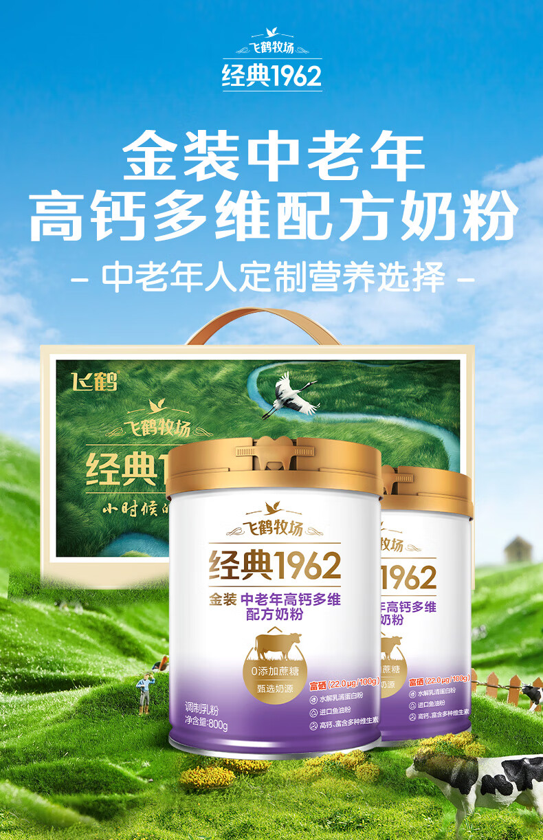 飞鹤1962金装中老年高钙牛奶粉礼盒800g*2中老年奶粉富硒新年送礼